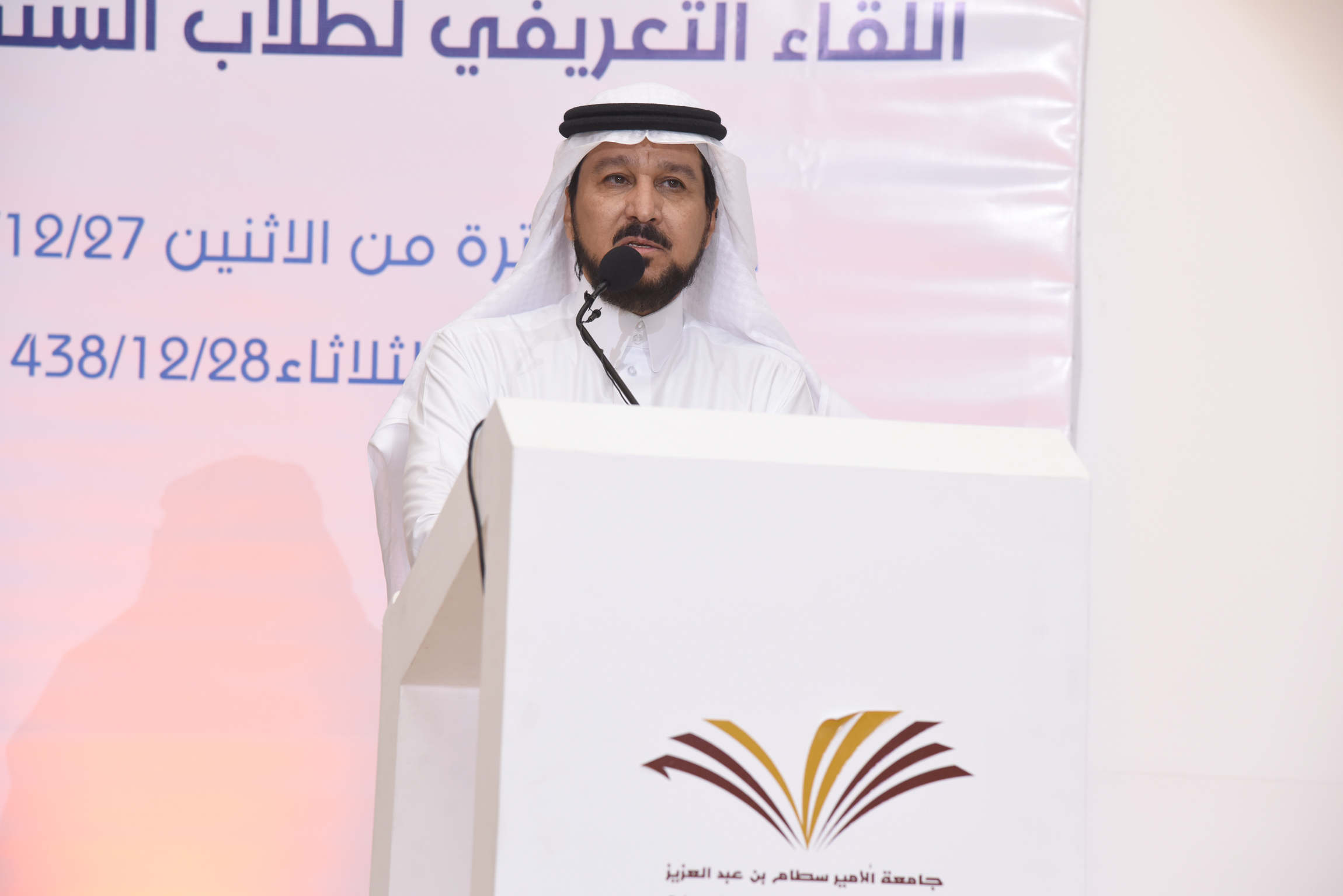كما رحّب بالطلاب المستجدين في رحاب جامعة الأمير سطّام بن عبدالعزيز التي سخرت جميع إمكانياتها المادية والبشرية من أجل استقبال وتعليم وتدريب وبناء جيل قادر على الإسهام في بناء المجتمع في جميع المجالات.