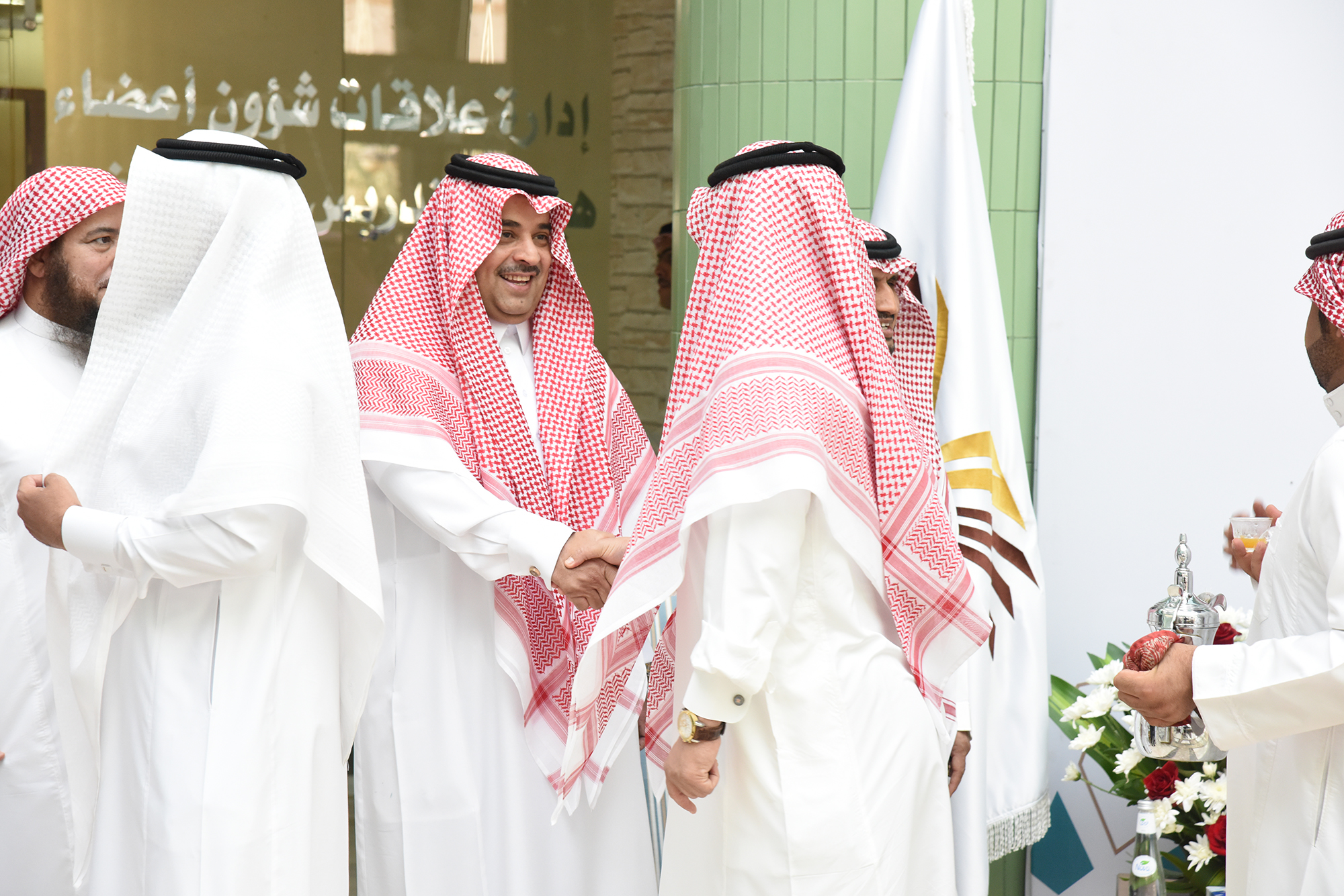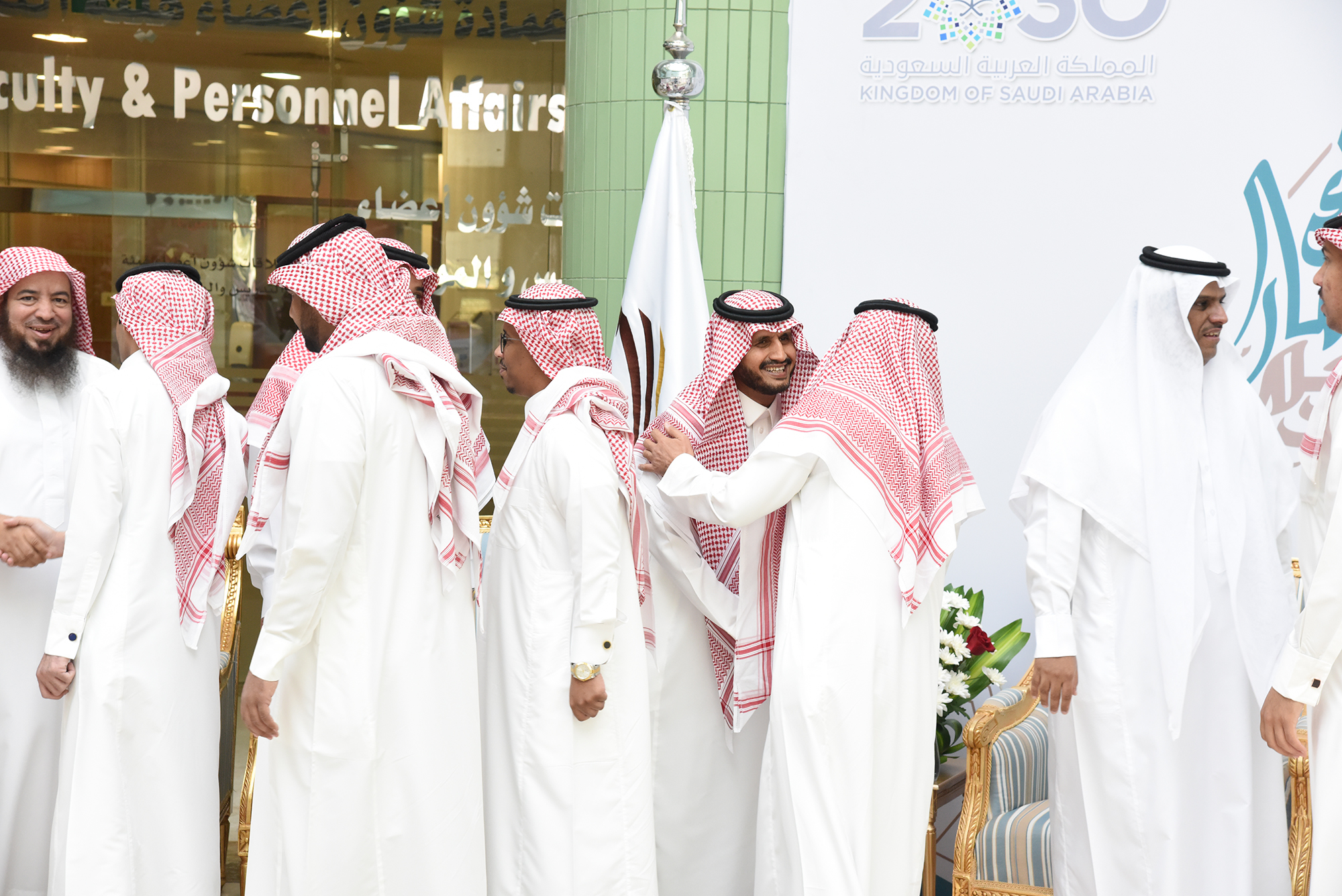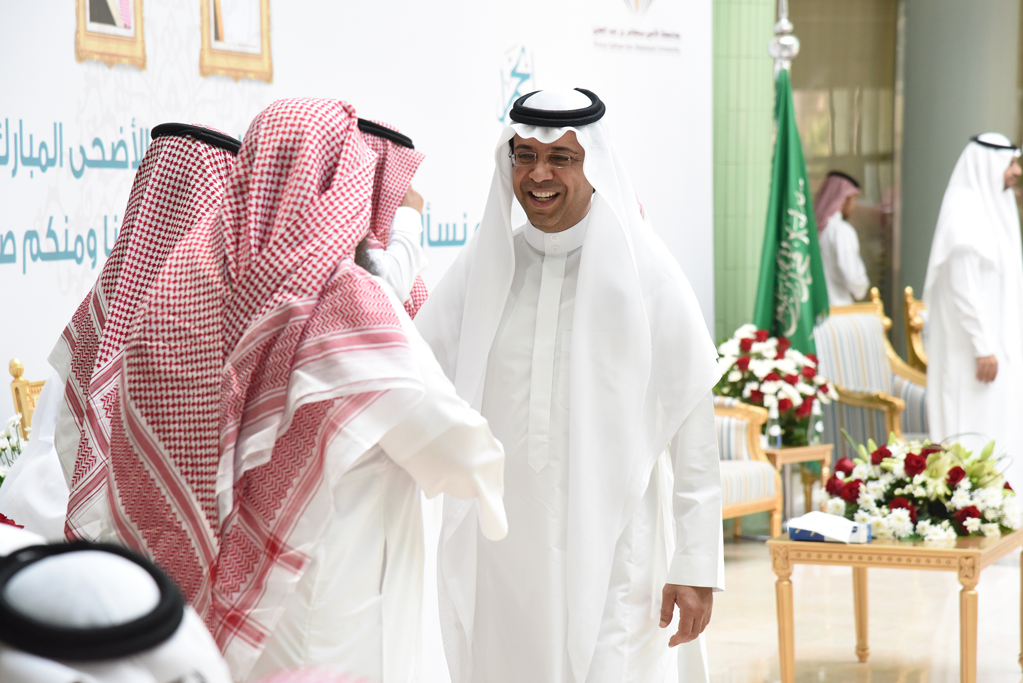 في أجواء تعمها المودة والإخاء نظمت إدارة العلاقات العامة والإعلام بالجامعة احتفالاً بعيد الأضحى المبارك بالمدينة الجامعية صباح اليوم الاثنين السادس عشر من شهر ذي الحجة , وذلك بحضور معالي مدير الجامعة الأستاذ الدكتور عبدالعزيز بن عبد الله الحامد ووكلاء الجامعة وعمداء الكليات والعمادات المساندة وأعضاء هيئة التدريس وموظفي الجامعة وقام الزملاء في الجامعة بتبادل التهاني والتبريكات بهذه المناسبة السعيدة ، يٌذكر أن تنظيم مثل هذه اللقاءات أمراً إيجابياً لتعزيز العلاقات الاجتماعية بين منسوبي الجامعة حيث يتسنى للجميع تبادل التهاني بهذه المناسبة المباركة .