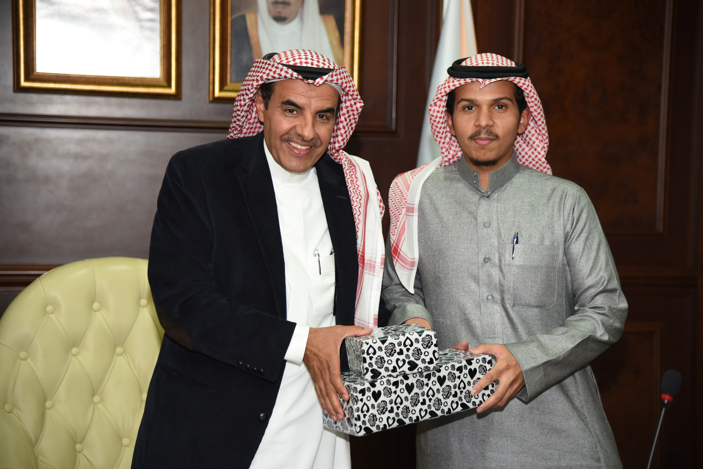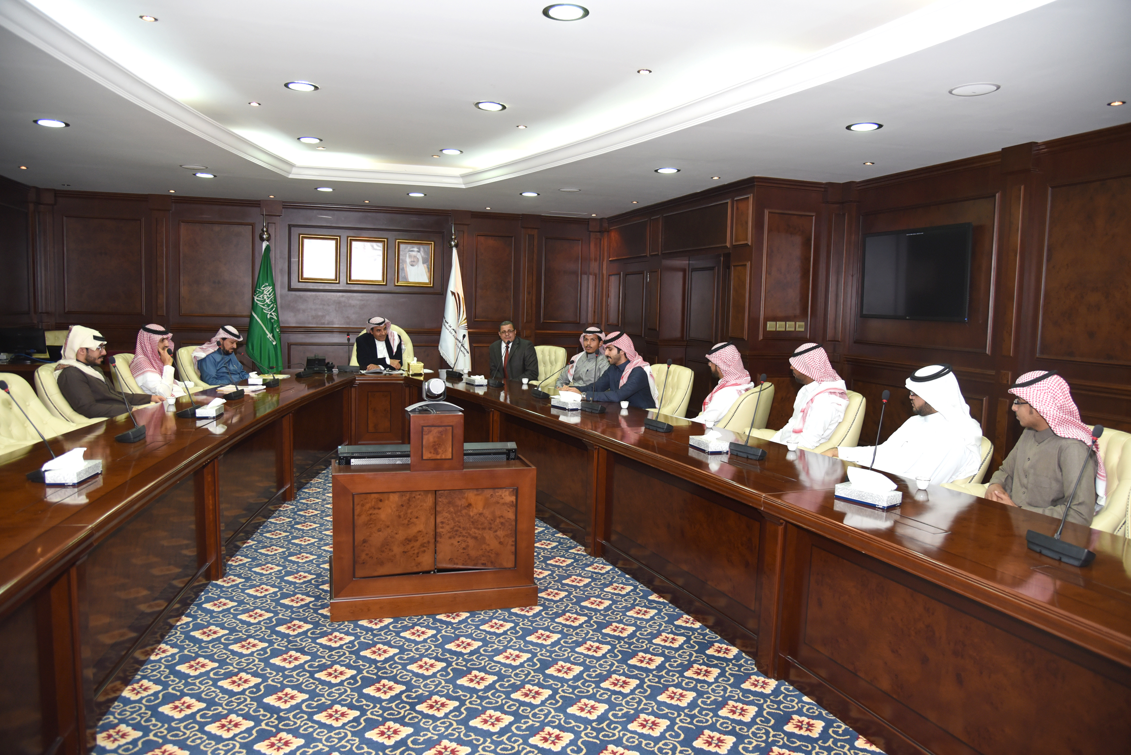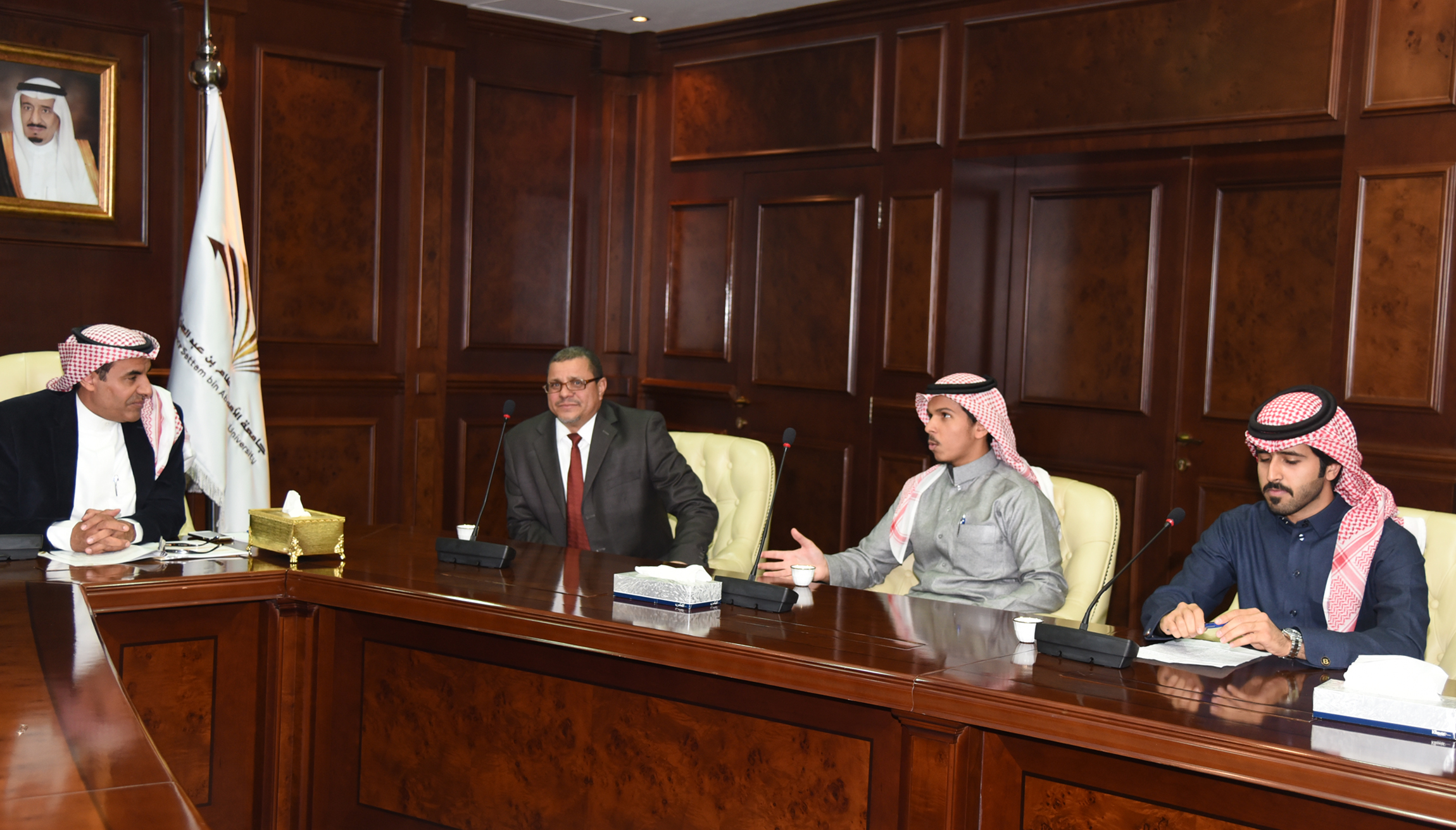 استقبل معالي مدير الجامعة الدكتور عبد الرحمن بن محمد العاصمي في مكتبه بالمدينة الجامعية وفدًا من طلاب كلية العلوم والدراسات الإنسانية بالأفلاج الذين تلقوا تدريبًا عمليًّا خلال فترة الصيف في اليابان بحضور الأستاذ الدكتور عبد العزيز بن عبد الله الحامد وكيل الجامعة للدراسات العليا والبحث العلمي، ورئيس لجنة التعاون الدولي، والدكتور مسفر بن محماس الكبيري المشرف على كليات الجامعة بالأفلاج، والمشرف على الاتفاقية، والأستاذ الدكتور محمود سليم وكيل التطوير والجودة ومنسق الاتفاقية.