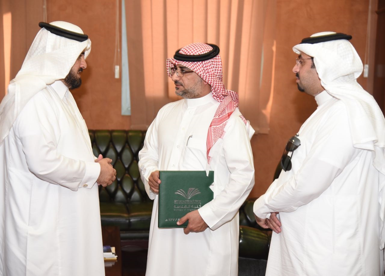 استقبل معالي مدير الجامعة الدكتور عبدالرحمن بن محمد العاصمي وبحضور سعادة وكيل الجامعة للشؤون التعليمية والأكاديمية الدكتور عبدالرحمن بن إبراهيم الخضيري رئيس وأعضاء مجلس كلية الهندسة سعادة عميد الكلية الدكتور محمد بن سعيد القحطاني ووكيل الكلية سعادة الدكتور بندر بن عبدالرحمن الزهراني ومساعد العميد للدراسات العليا والبحث العلمي الأستاذ الدكتور عصام سليمان ومساعد العميد للشؤون التعليمية والأكاديمية الدكتور أحمد مصطفى ومساعد العميد للتطوير والجودة الدكتور إبراهيم المرابط ومستشار العميد الدكتور فريح العنزي ومشرف قسم الهندسة الكهربائية الأستاذ الدكتور فايز السوسي ومشرف قسم الهندسة الميكانيكية الدكتور الحبيب بن باشا ومشرف قسم الهندسة المدنية الدكتور محمد خديم الله وذلك بقاعة اجتماعات مكتب مدير الجامعة لتسليم التقرير السنوي للكلية عن العام المنصرم 1436/1437هـ.