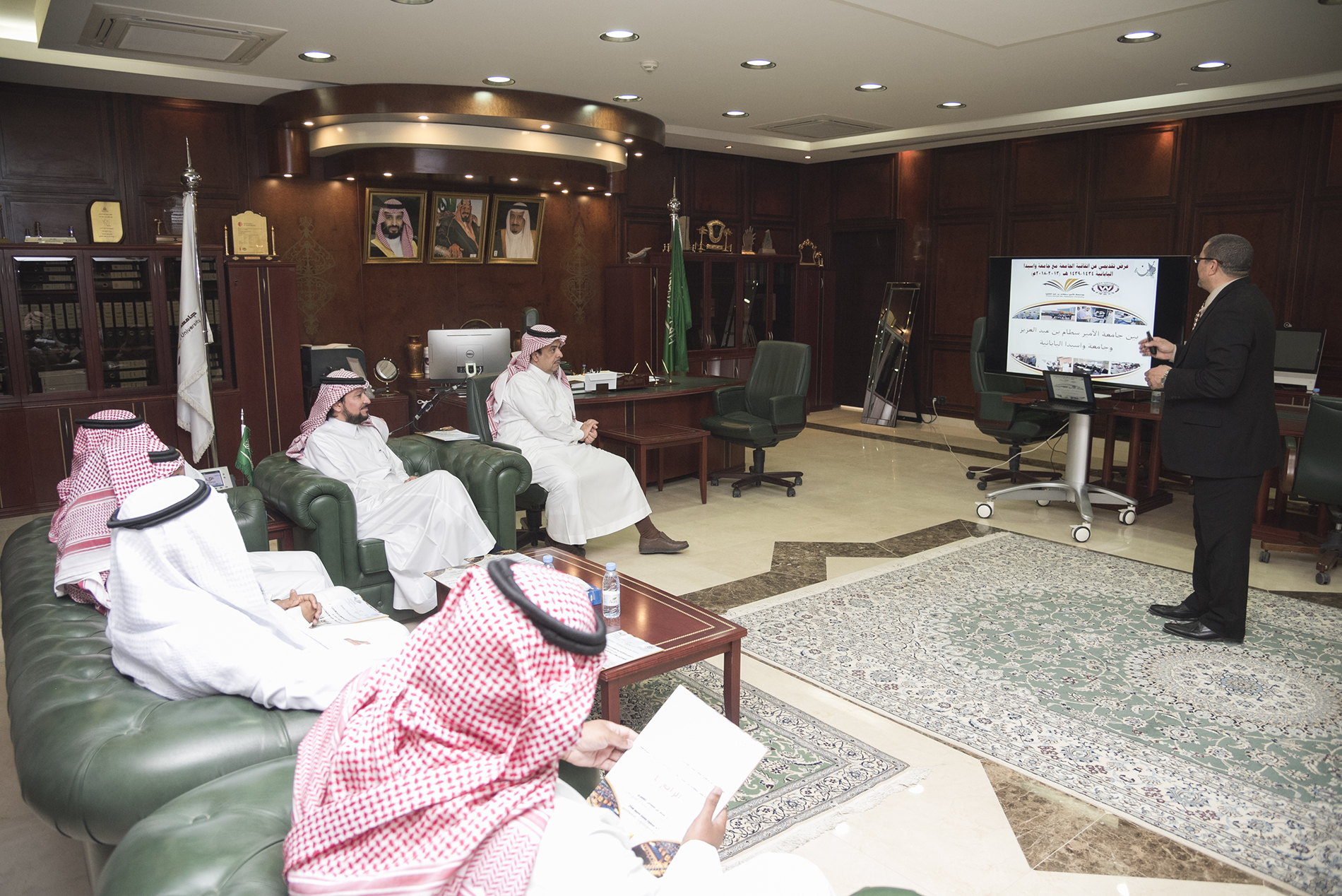 من جانبه قدم الدكتور الكبيري شكره لمعالي مدير الجامعة على رعايته لهذه الاتفاقية مشيرًا إلى أن هذا البرنامج يأتي كنتاج لاتفاقية التعاون بين جامعة الأمير سطام بن عبد العزيز (ممثلة في كلية العلوم والدراسات الإنسانية في الأفلاج) وجامعة واسيدا اليابانية والتي تعد واحدة من الاتفاقيات المفيدة والنافعة التي أبرمتها الجامعة مع دولة اليابان.