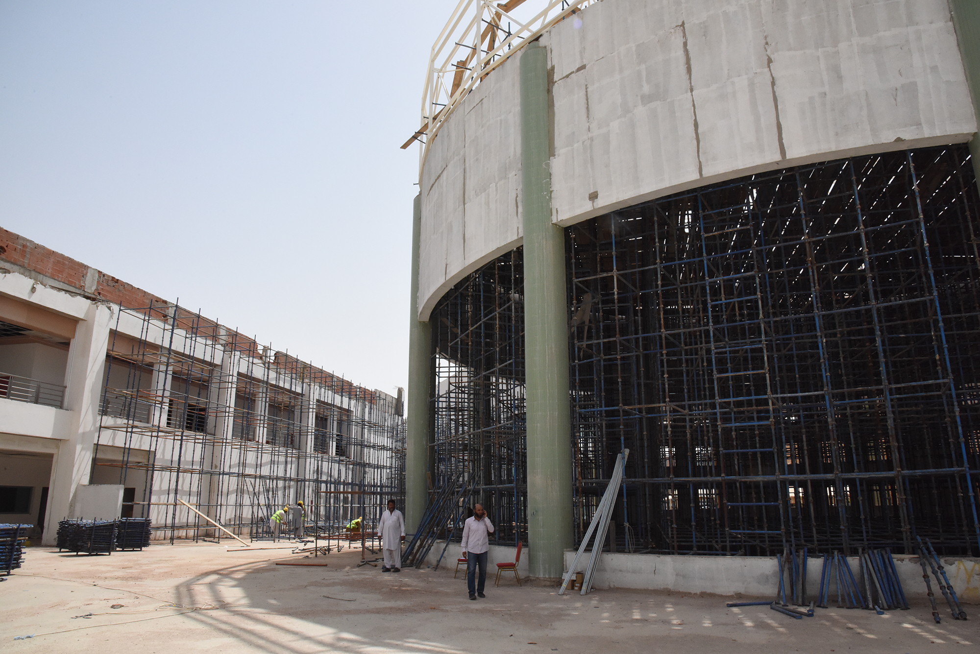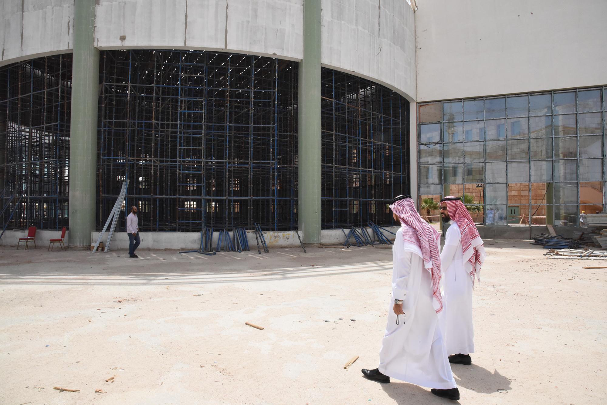 للصالة الرياضية للاطلاع على سير العمل في المشروع .