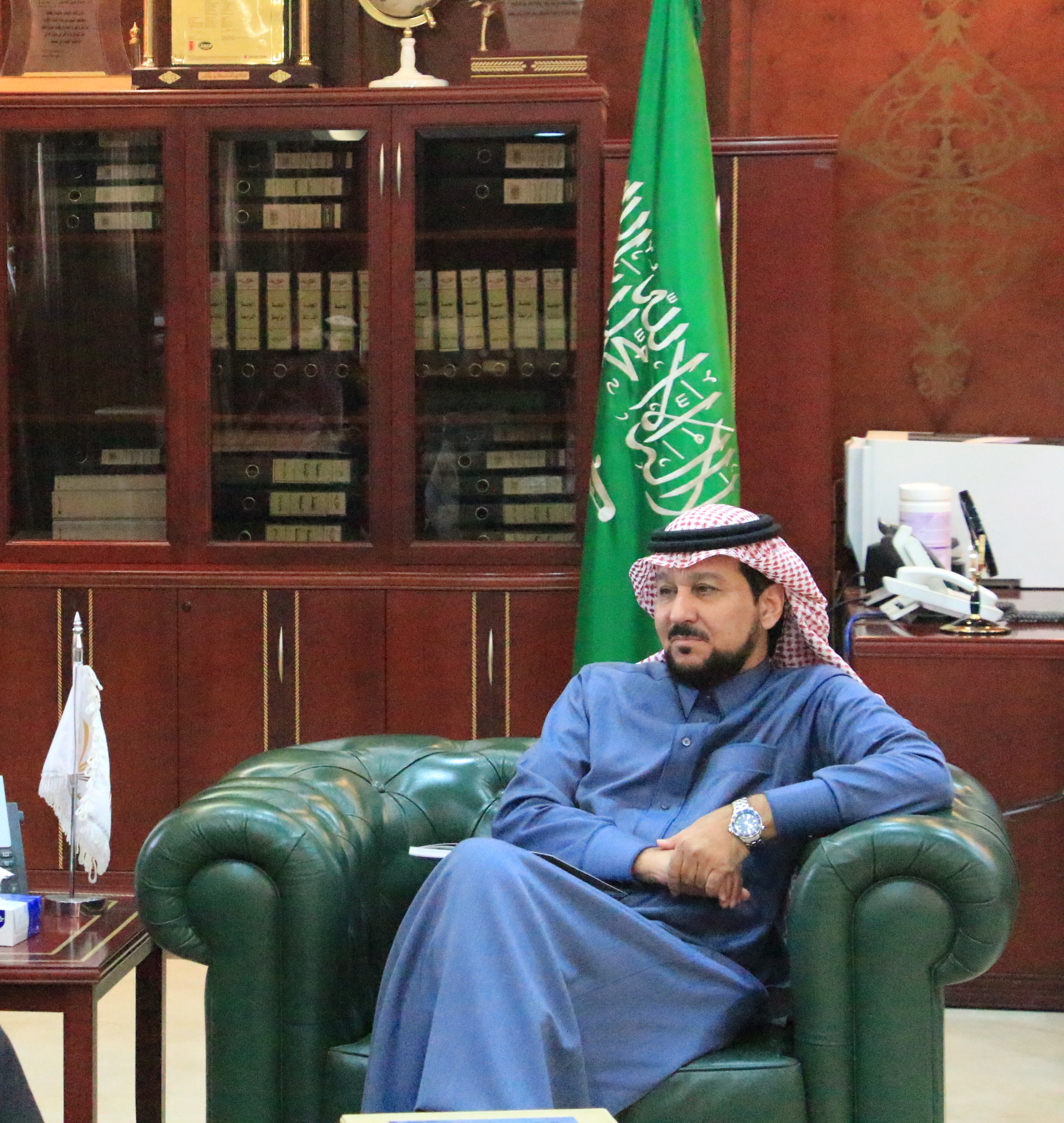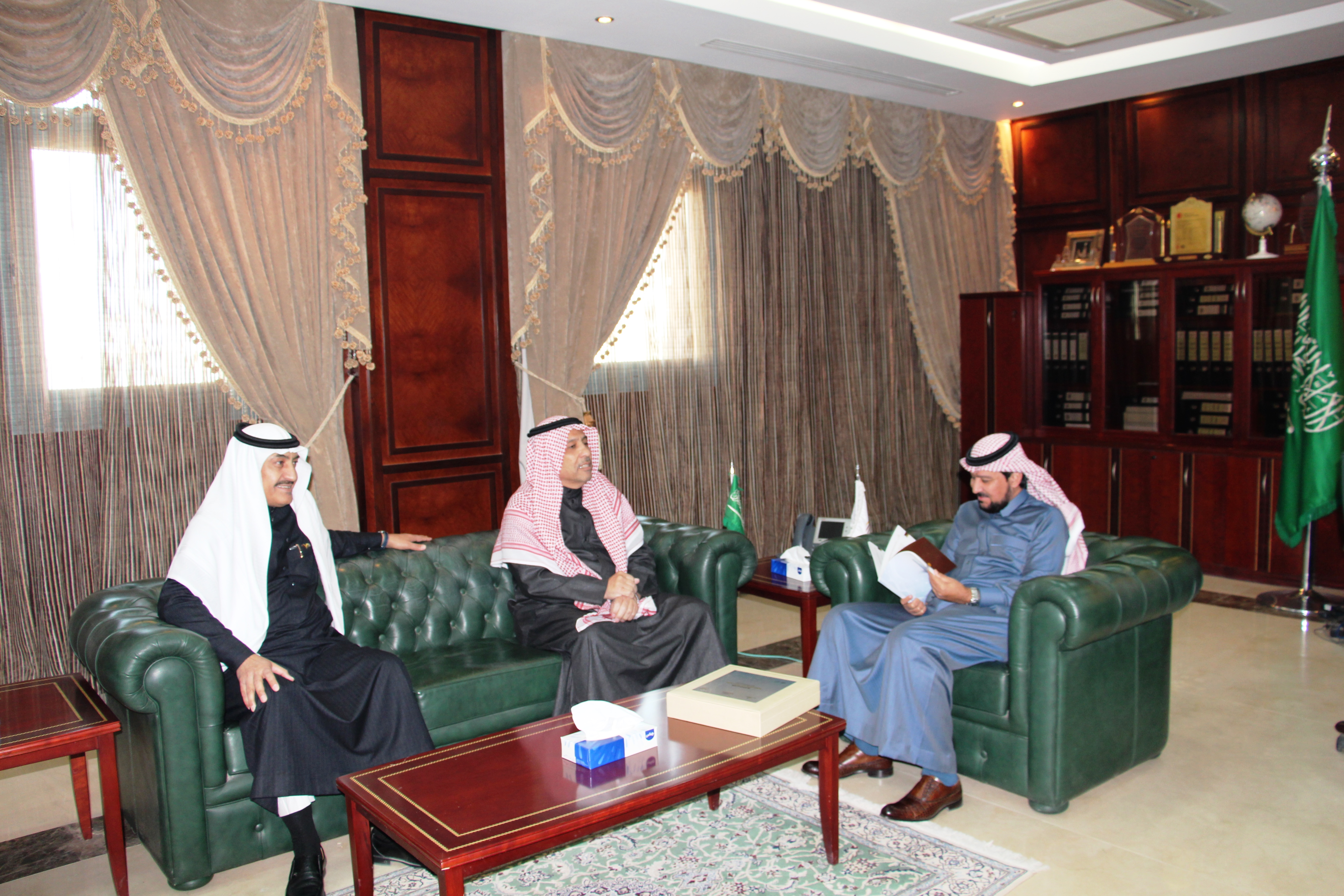 استقبل معالي مدير جامعة الأمير سطام بن عبدالعزيز الأستاذ الدكتور/ عبدالعزيز بن عبدالله الحامد، بمكتبة بإدارة الجامعة سعادة الأستاذ الدكتور/ ماهر بن مفضي العنزي عميد كلية العلوم الطبية التطبيقية يوم الأحد الموافق 1441/6/22هـ ،وسلم سعادة عميد الكلية التقرير السنوي لكلية العلوم الطبية التطبيقية لمعالي مدير الجامعة ، بحضور وكيل الكلية للشؤون التعليمية والأكاديمية الدكتور/ سعود معاشي الرويلي، وقد أوضح سعادة العميد أن هذا التقرير يعد حصيلة للجهود التي بذلتها وحققتها الكلية خلال العام الدراسي المنصرم 1439هـ/1440هـ .