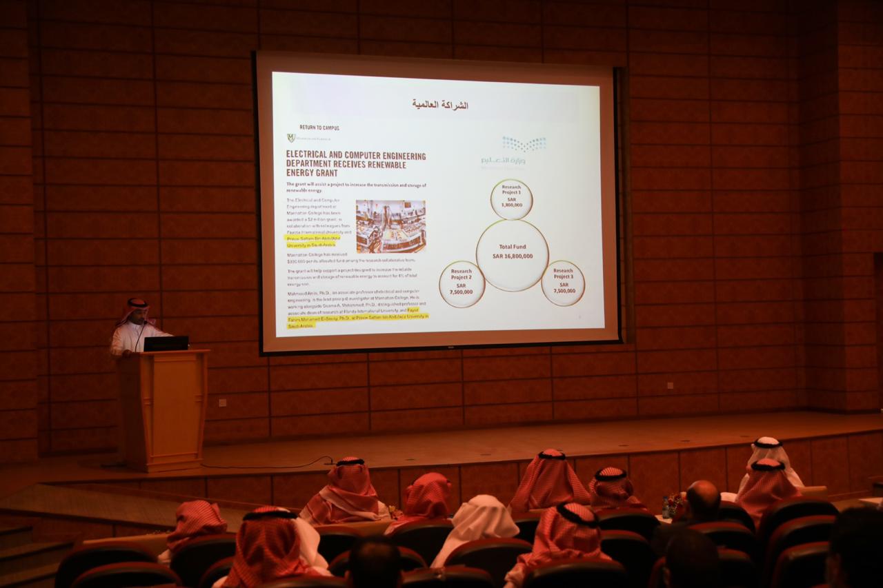 ثم أشار إلى أن الكلية سعت في تطوير وتحديث خططها بما يتماشى مع رؤية الجامعة ٢٠٣٠، حيث اعتمدت في وضع خططها على أحدث المعايير العالمية، كما بين أن توجه الكلية لاعتماد برامجها نابع من حرصها وحرص الجامعة على تقديم تعليم هندسي متميز بالإضافة إلى التميز في البحث العلمي والشراكة المجتمعية، ثم استعرض سعادته أهم المنجزات التي ساهمت في تميز كلية الهندسة وأشار إلى الخطط المستقبلية للكلية.