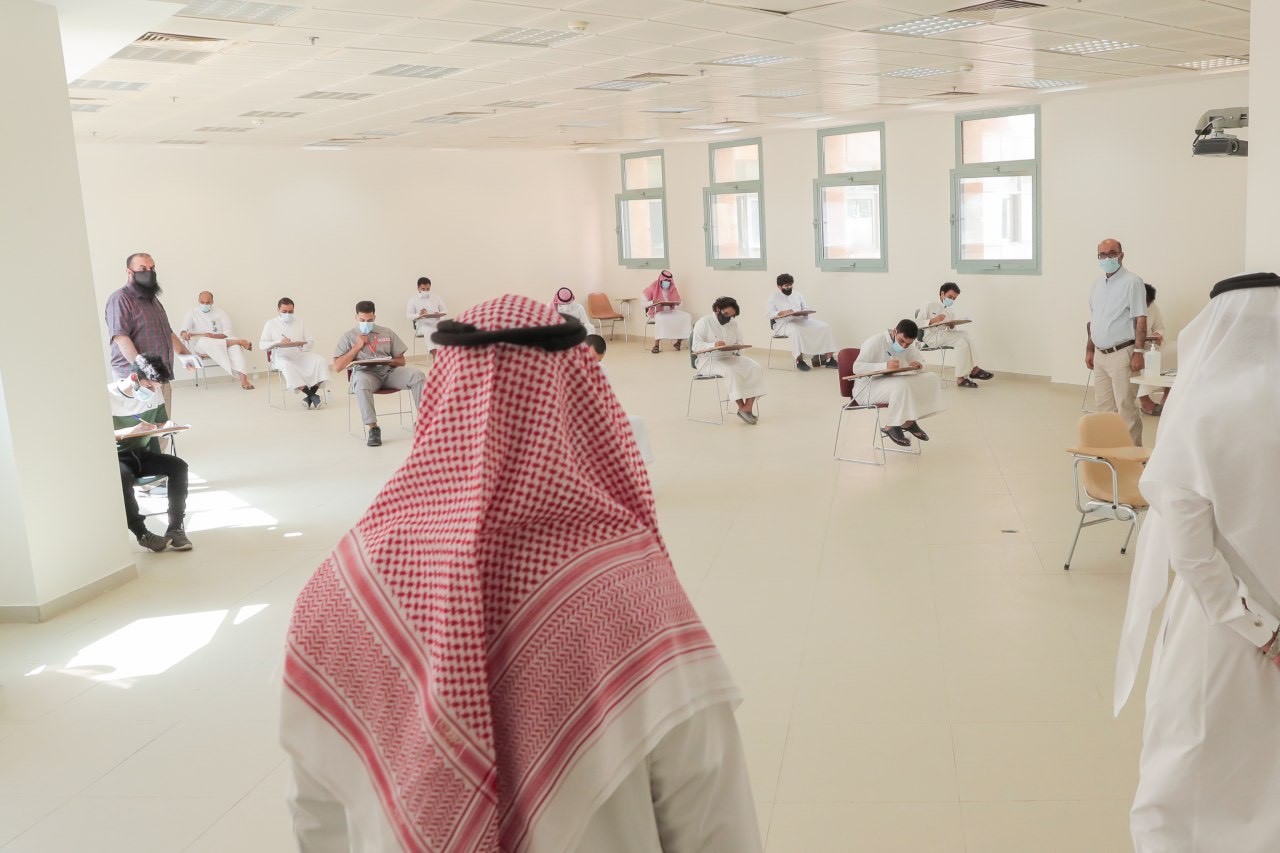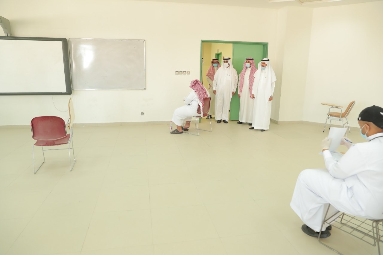 تفقد معالي رئيس الجامعة الأستاذ الدكتور عبدالعزيز بن عبدالله الحامد يرافقه سعادة وكيل الجامعة للشؤون التعليمية والأكاديمية الدكتور مشاري بن عياد العصيمي يوم أمس الأحد الموافق 24 / 2 / 1442هـ سير الاختبارات الفصلية الأولى لكلية العلوم والدراسات الإنسانية بالخرج في ظل الإجراءات الوقائية حيث كان في استقبال معاليه والوفد المرافق له سعادة عميد الكلية الدكتور عبدالرحمن بن إبراهيم الحارثي ووكيل الكلية للشؤون التعليمية والأكاديمية الدكتور هارون ناصر الصقر وقد تجول معاليه في مرافق قاعات الاختبارات الفصلية الأولى بالكلية والوقوف على أداء الطلبة تزامناً مع بدايتها في ظل جائحة كورونا.