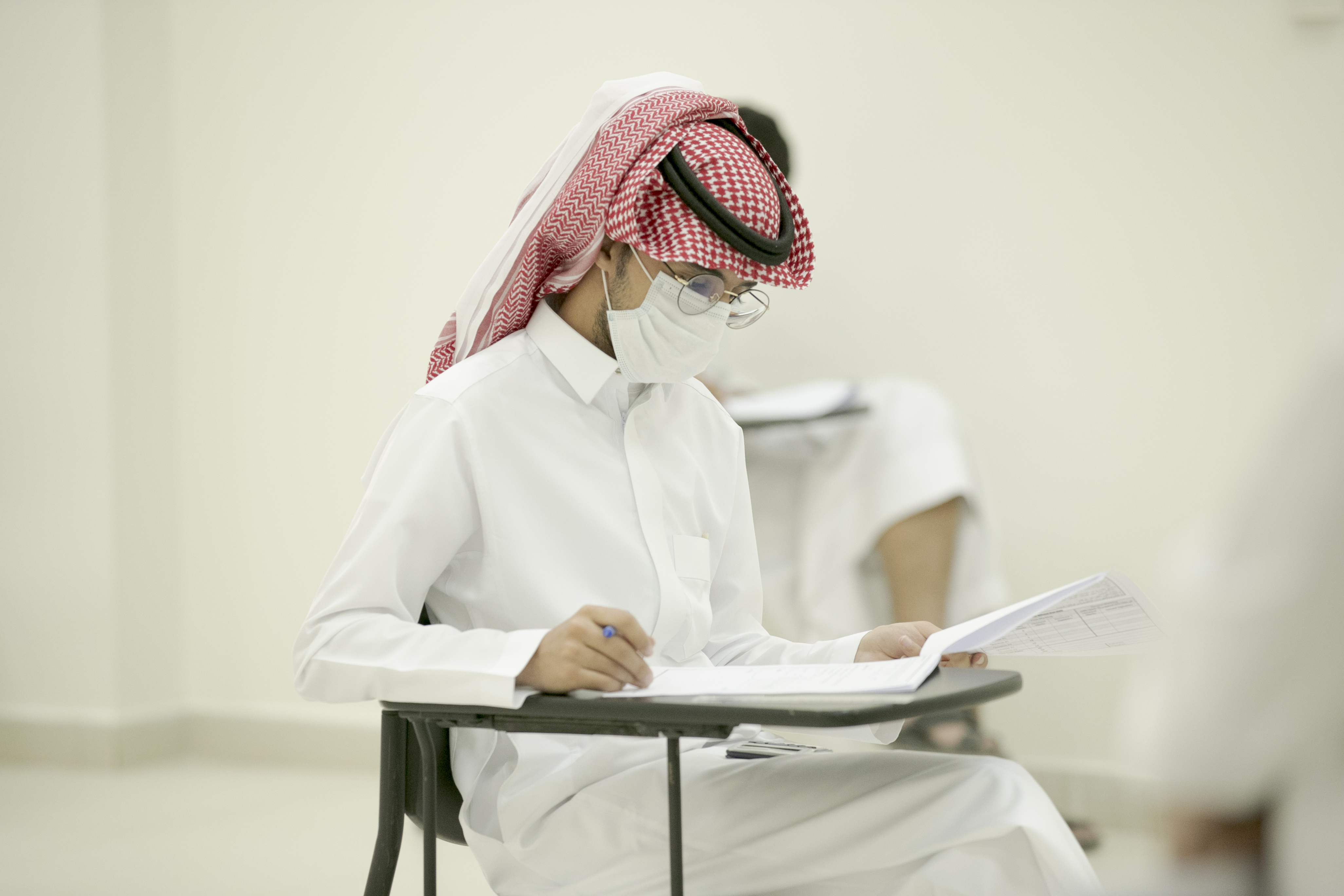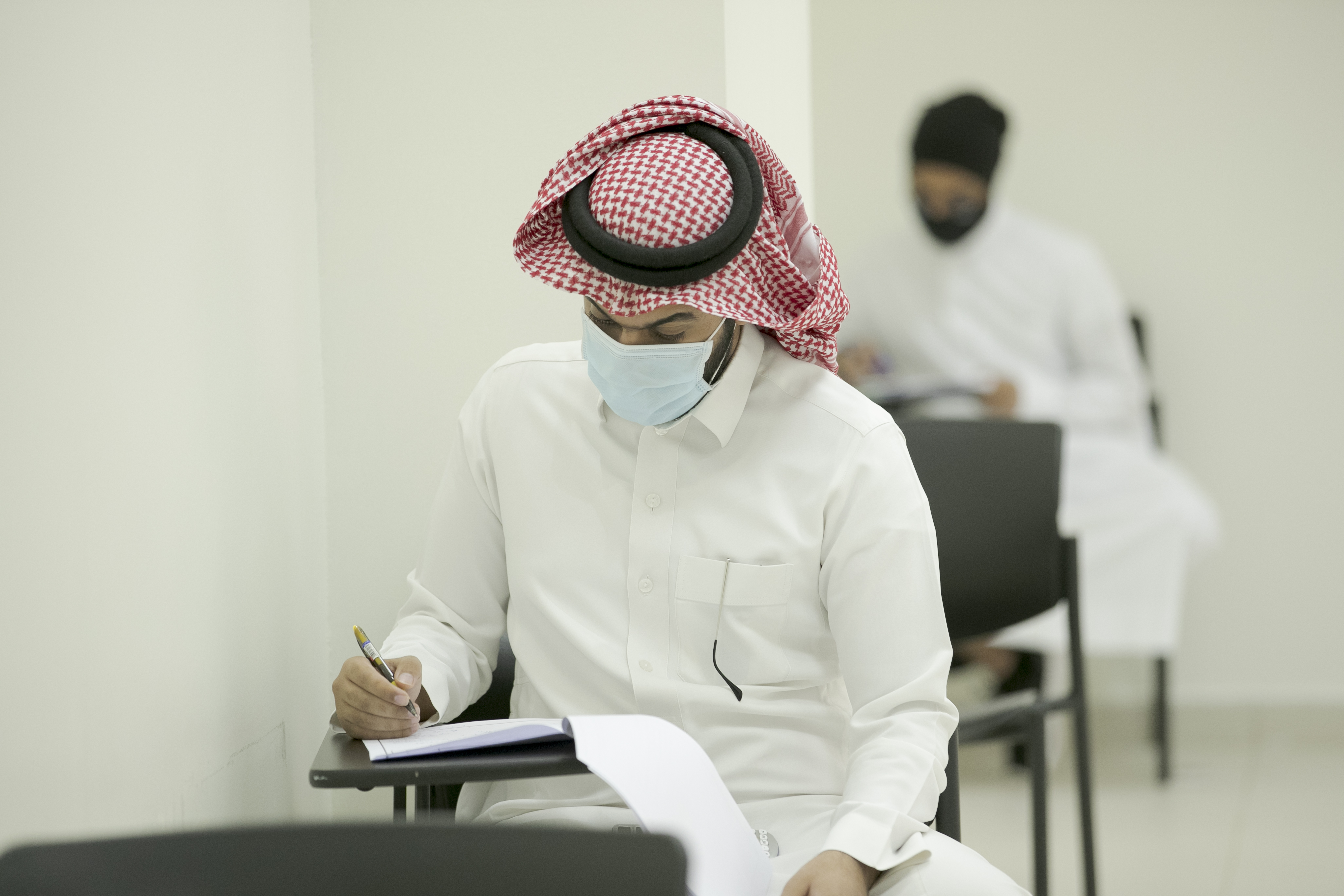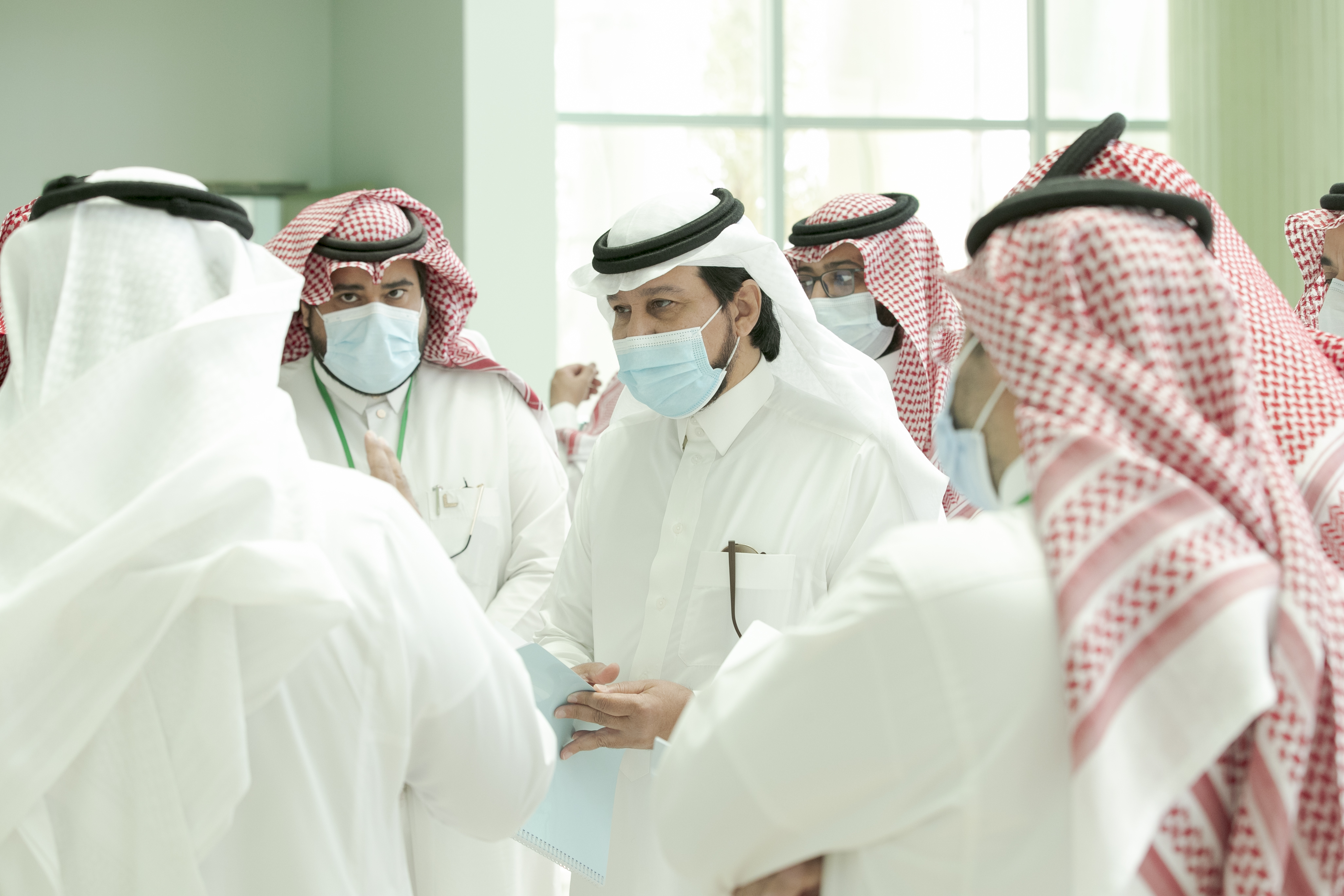 تفقد معالي رئيس الجامعة الأستاذ الدكتور عبدالعزيز بن عبدالله الحامد يرافقه سعادة وكيل الجامعة للشؤون التعليمية والأكاديمية الدكتور مشاري بن عياد العصيمي والمشرف على مكتب معاليه الدكتور عيسى بن خلف الدوسري اليوم الأحد الموافق 6 / 9 / 1442هـ مرحلة سير الاختبارات النهائية الحضورية للفصل الدراسي الثاني لكلية الهندسة بالخرج في ظل الإجراءات الوقائية والاحترازية حيث كان في استقبال معاليه والوفد المرافق له سعادة عميد الكلية الدكتور رائد بن عبدالله اليوسف و وكلاء الكلية وقد تجول معاليه في مرافق قاعات الاختبارات النهائية بالكلية والوقوف على أداء الطلبة تزامناً مع بدايتها في ظل جائحة كورونا.