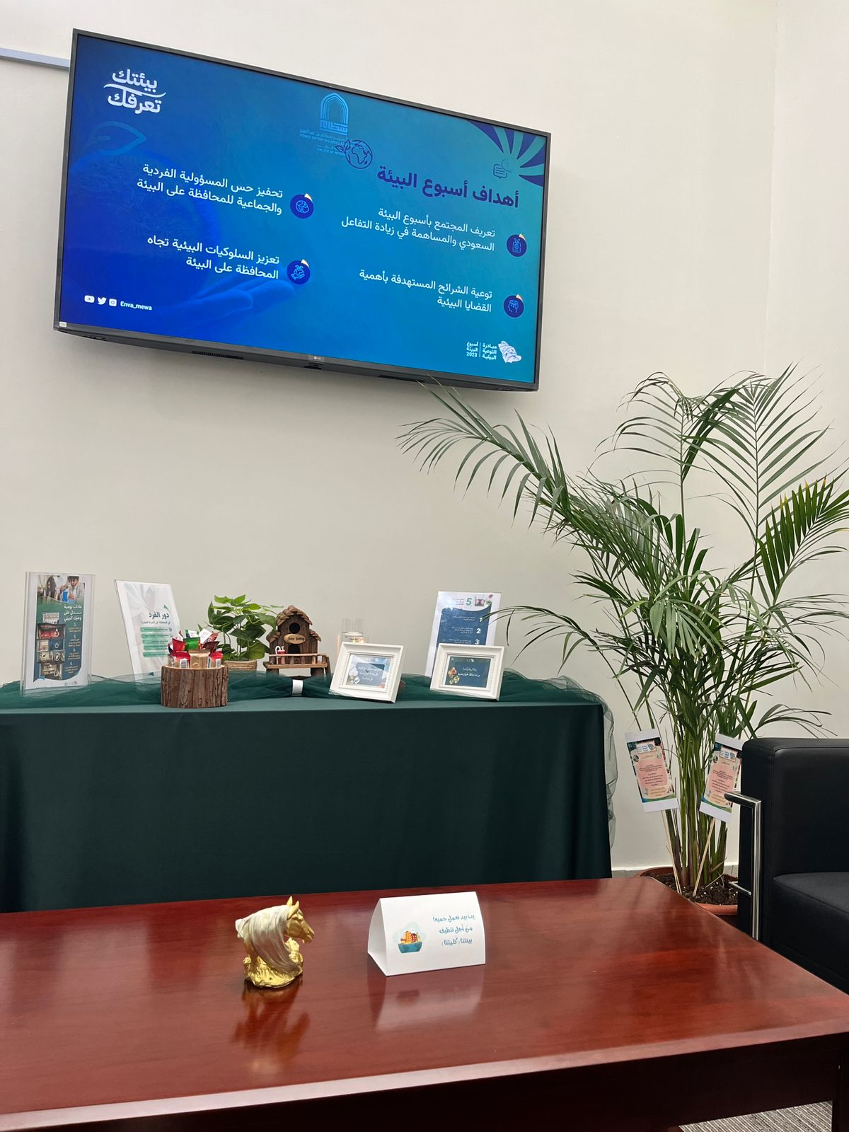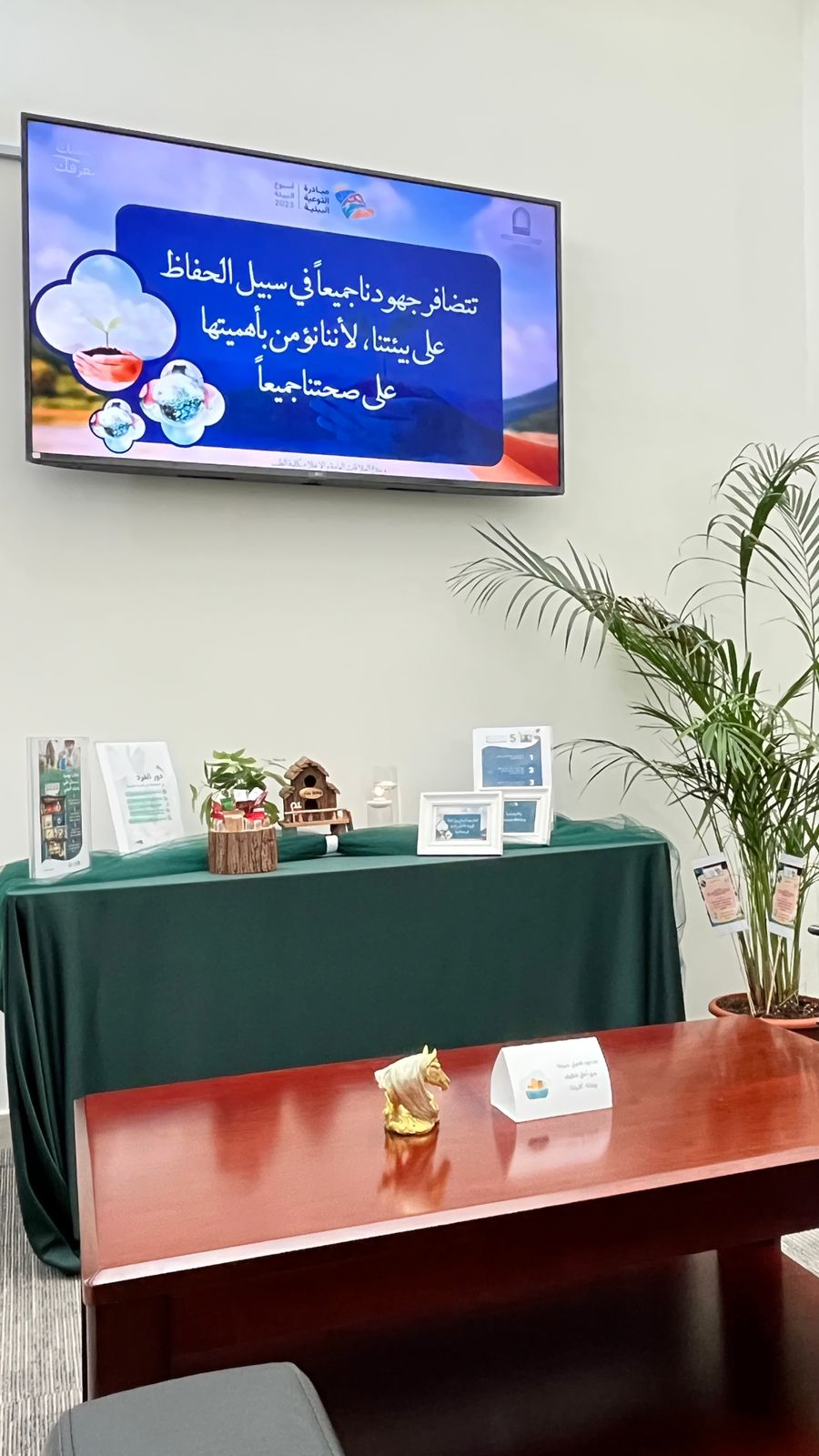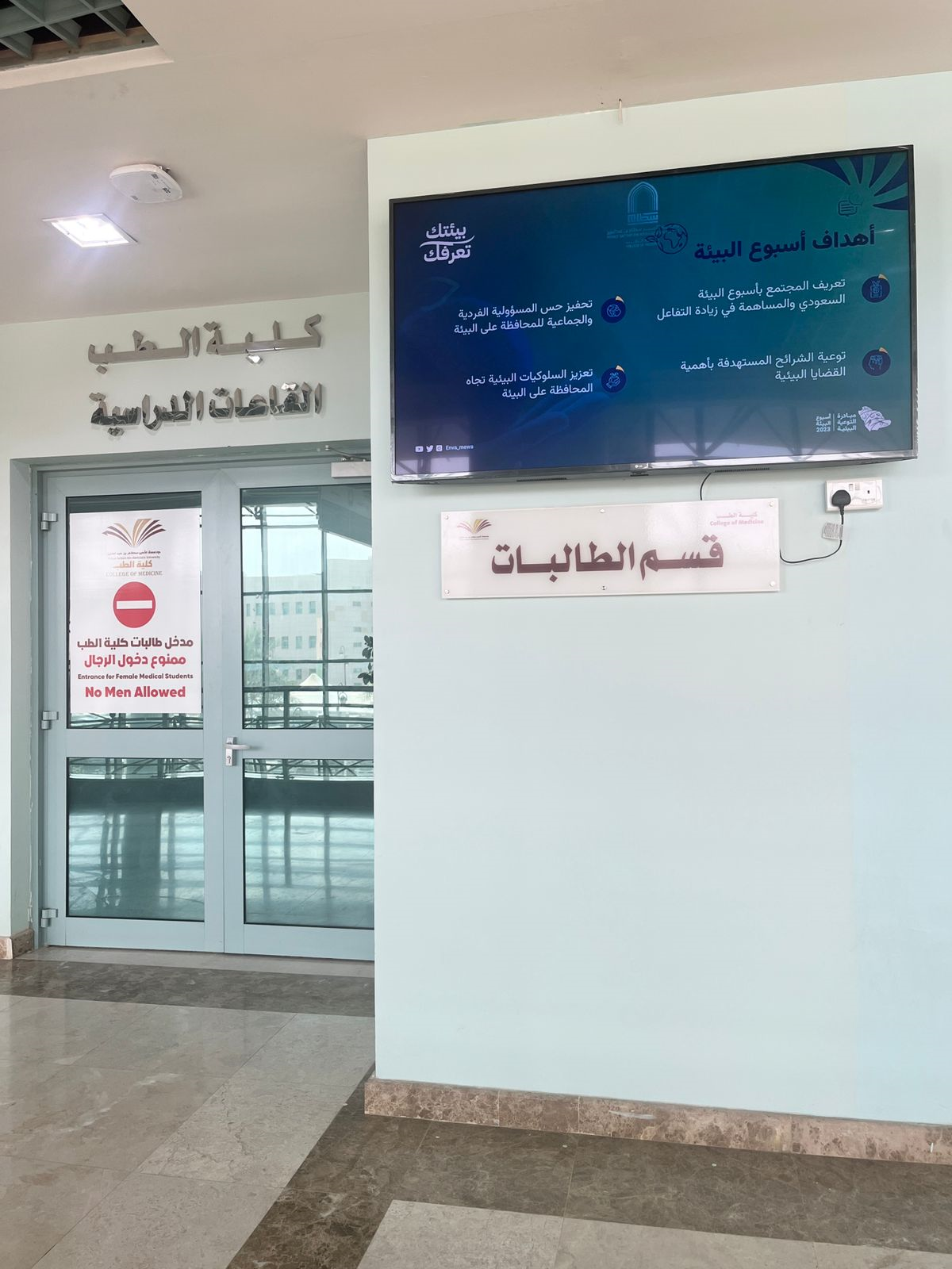 انطلاقاً من رؤية 2030 في الحفاظ على البيئة والتقليل من آثار التلوث والحفاظ على الموارد الطبيعية نظمت وحدة العلاقات العامة بكلية الطب وبالتعاون مع وحدة التشغيل والصيانة بالكلية ركن تفاعلي احتفاءً بأسبوع البيئة السعودي 2023، الذي انطلقت فعالياته يوم الثلاثاء الموافق 14 مارس وسيستمر حتى 20 مارس الجاري بشعار «بيئتك تعرفك » لغرس مبادئ ومفاهيم حماية البيئة والتوعية بأهميتها وسبل المحافظة عليها بين الطلاب والطالبات وبين أفراد المجتمع التعليمي . حيث تضمنت الفعالية عرض مرئي يحتوي على مادة تثقيفية بأهمية المحافظة على البيئة بالإضافة الى بيان دور النباتات الداخلية في تعزيز المشاعر الإيجابية وإزالة غالبية سموم الهواء الداخلي عبر بطاقات توعوية تحتوي على اسم النبات وكيفية المحافظة عليها وغرسها على أحواض النباتات وكذلك تم عمل لوحات ارشادية تحث على المحافظة والاهتمام بالبيئة.