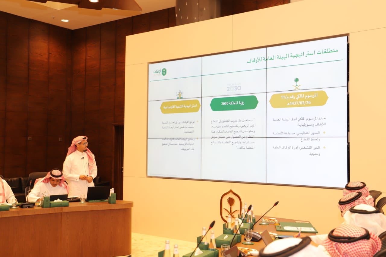 وبدأ بعد ذلك اللقاء بعرض إستراتيجية الهيئة التي تهدف إلى تعزيز دور الأوقاف في المساهمة الفاعلة في تحقيق مستهدفات رؤية المملكة 2030، وخطة التحول الوطني 2020، وذلك من خلال مجموعة من الركائز والأهداف والمبادرات التي تسهم في تطوير الخدمات والمنتجات التي تقدمها الهيئة للمجتمع وتحقق تنمية مستدامة شاملة في مختلف القطاعات، ثم استعرضرئيس اللقاء التنسيقي لأوقاف الجامعات الأمين العام لأوقاف جامعة الأمير سطام الدكتور عبدالرحمن بن عبد العزيز الجريوي استراتيجية وتقرير أمانة اللقاء التنسيقي لأوقاف الجامعات ، والذي تضمن رؤية استشرافية لمستقبل أوقاف الجامعات، كما تضمن التقرير استعراض أبرز الإنجازات في مسار تطوير أوقاف الجامعات.