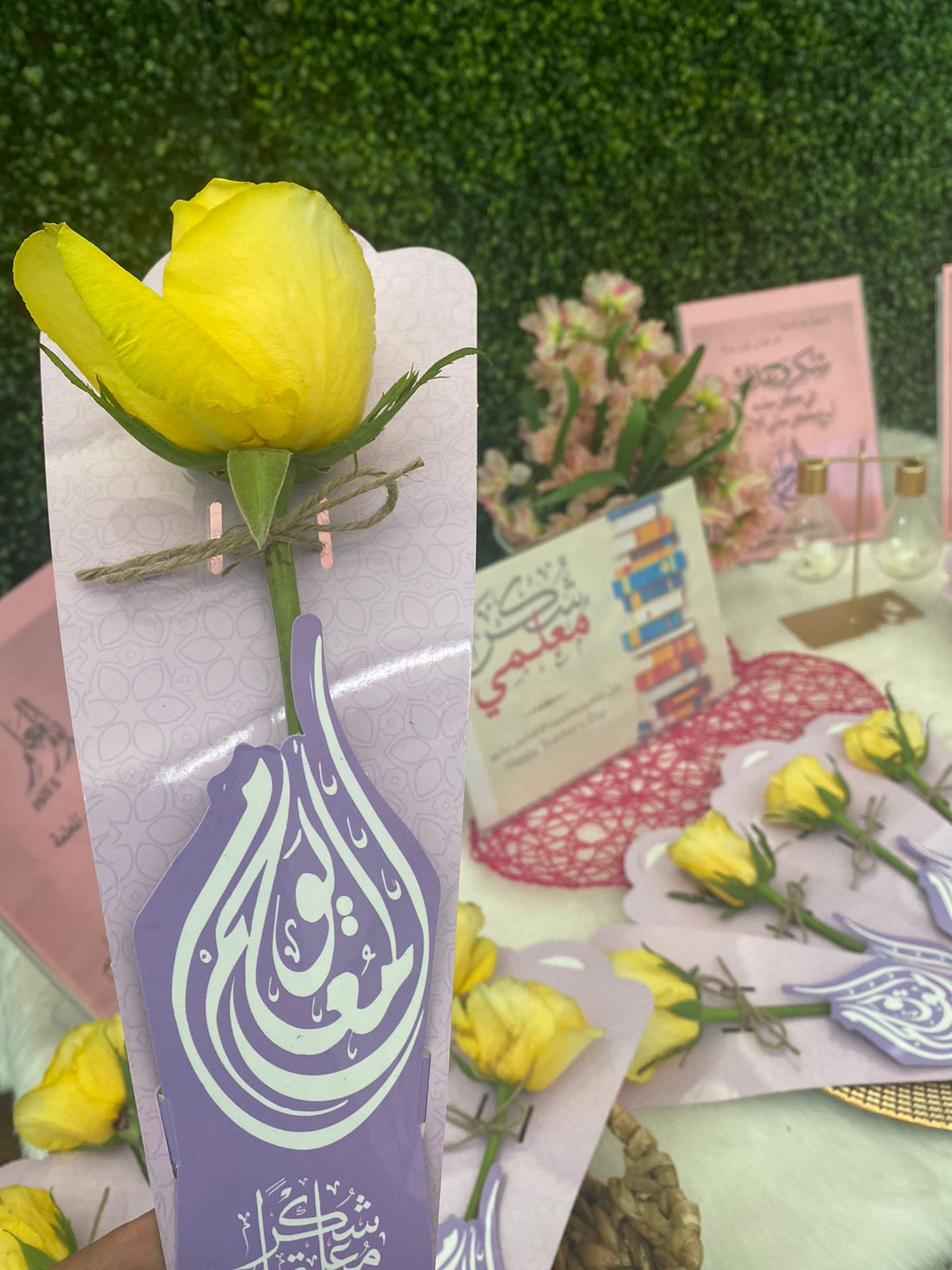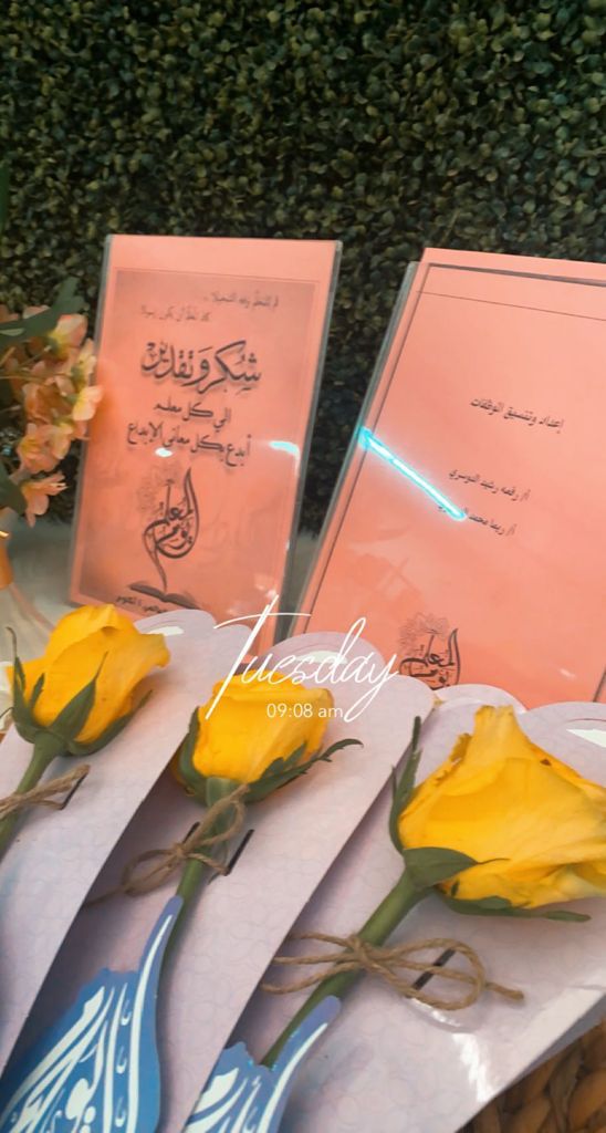 تحت قيادة كلية هندسة وعلوم الحاسب وبإشراف وكيلة كلية د. هيا بنت محمد العسكر نظمت الموظفات أ.رفعة رشيد الدوسري سكرتيرة وحدة الارشاد الأكاديمي و أ.ريما محمد الدوسري سكرتيرة قسم هندسة البرمجيات مبادرة عن اليوم العالمي للمعلم يوم الثلاثاء 28/02/1443الموافق 05-10-2021 م في تمام الساعة التاسعة صباحا، حيث قامتا بتوزيع باقة من الورد وبطاقة تهنئة لأعضاء الكلية متمنين لهم دوام التوفيق والنجاح.