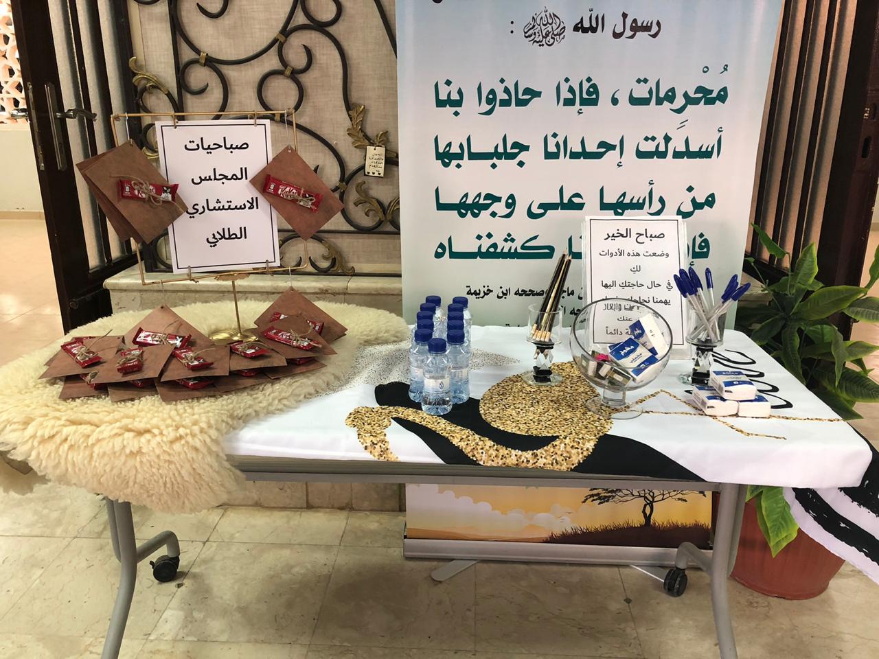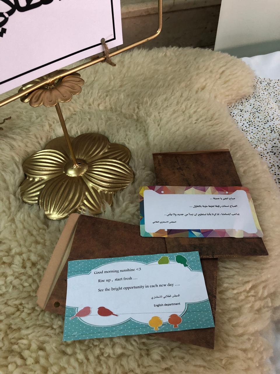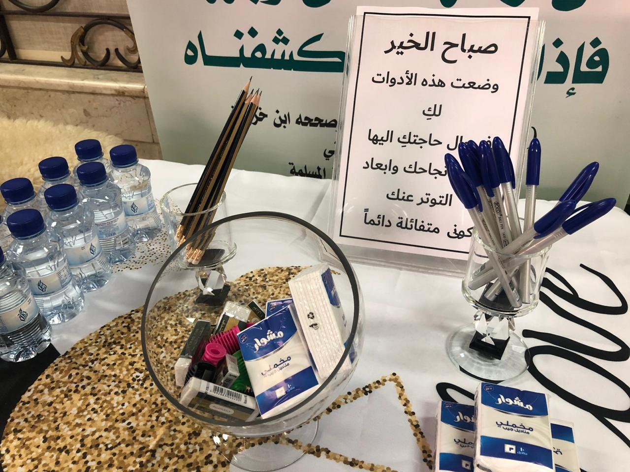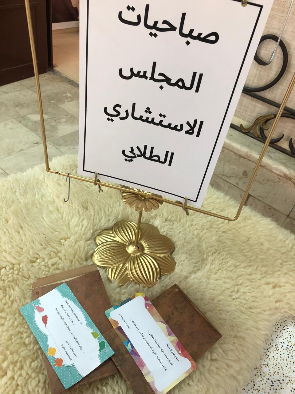 الموافق ٢ / ٤ / ١٤٤٠هـ في ساحة الكلية حيث تم وضع ركن يحتوي على رسائل صباحية مفعمة بالتفاؤل والدعم النفسي للطالبات من زميلاتهن طالبات المجلس الاستشاري الطلابي. كما احتوى الركن على الاقلام وبعض الادوات التي من الممكن ان تحتاجها الطالبة اثناء الاختبار مساعدين بذلك الطالبات على عدم التوتر والاحساس بالارتباك في حال نسيان ادواتها متمنين لهن دوام النجاح والتفوق. الجدير بالذكر ان هذه المبادرة و الركن مستمر الى نهاية الاختبارات ان شاء الله تحت اشراف وتوجيه منسقة المجلس الاستشاري الطلابي بالكلية الاستاذة لمياء آل سالم .
