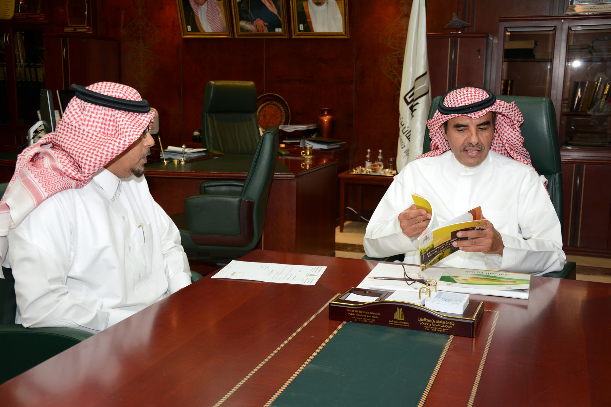 جاء ذلك أثناء استقباله لعميد كلية الصيدلة الدكتور خالد الخرفي ووكيل الكلية الدكتور عبدالله القحطاني حيث قام الدكتور الخرفي بتسليم التقرير السنوي لكلية الصيدلة لمعالي مدير الجامعة وقد تضمن التقرير معلومات عن منجزات الكلية الأكاديمية والبحثية وكذلك برامج الأنشطة الطلابية المنفذة واهم الدورات وورش العمل التي تم تنفيذها وتناول التقرير أهم منجزات كراسي البحث العلمية في الكلية كما قام الخرفي بتسليم مدير الجامعة تقريراً آخر يوضح مشاريع التخرج البحثية التي قدمها طلاب الكلية .