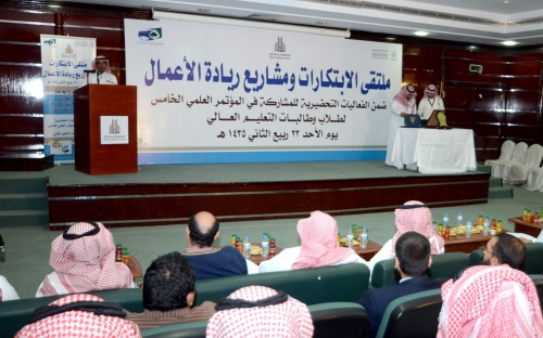 ضمن الفعاليات التحضيرية لمشاركة الجامعة في المؤتمر العلمي الخامس لطلاب وطالبات التعليم العالي دشّن مدير جامعة سلمان بن عبدالعزيز الدكتور عبدالرحمن بن محمد العاصمي ملتقى الابتكارات ومشاريع ريادة الأعمال في مسرح مبنى الهداية بالخرج.