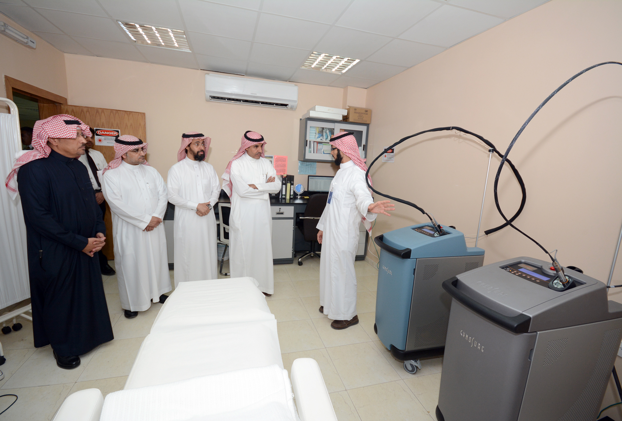 وافتتح معاليه عيادة العلاج الضوئي والجراحات البسيطة، واستمع لشرح عن جهاز Narrow band لتقديم الخدمات العلاجية لمرضى البهاق والصدفية وبعض الأمراض الأخرى وجهازي Electro Cautery وCryo Cautery لعلاج الثأليل الجدلية وبعض الأمراض الأخرى وكذلك إجراء بعض الجراحات الجلدية البسيطة.
