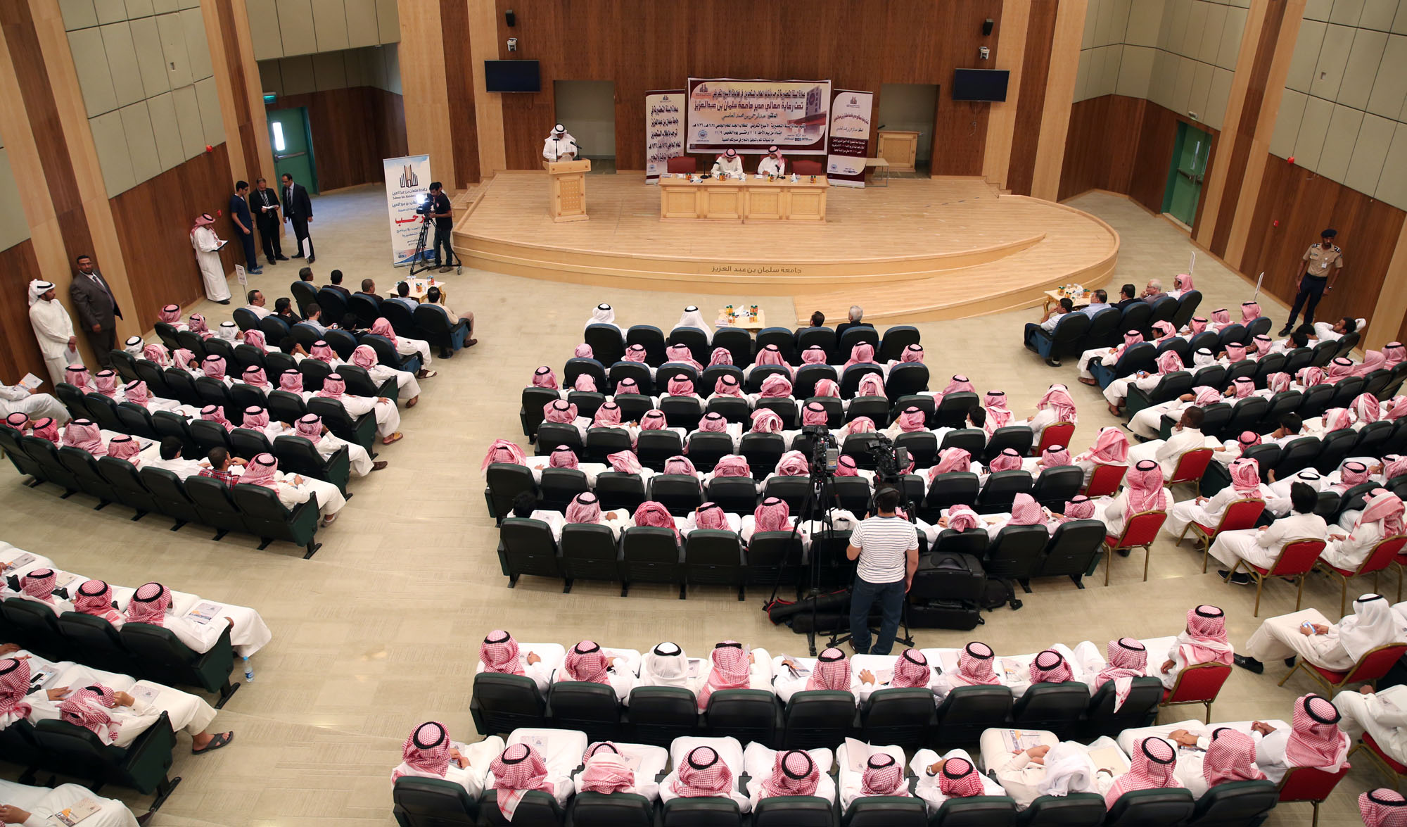 العلاقات العامة والإعلام : رعى معالي مدير جامعة سلمان بن عبدالعزيز الدكتور عبدالرحمن بن محمد العاصمي انطلاق اللقاء التعريفي لطلاب السنة التحضيرية المقبولين للعام الجامعي 1435-1436هـ، الذي نظمته عمادة السنة التحضيرية ويستمر لمدة خمسة أيام لجميع المسارات، صباح اليوم الأحد 5-11-1435هـ في مسرح المدينة الجامعية بحضور وكيل الجامعة للشؤون التعليمية والأكاديمية الدكتور عبدالرحمن الخضيري وعميد عمادة السنة التحضيرية الدكتور مشاري العصيمي.