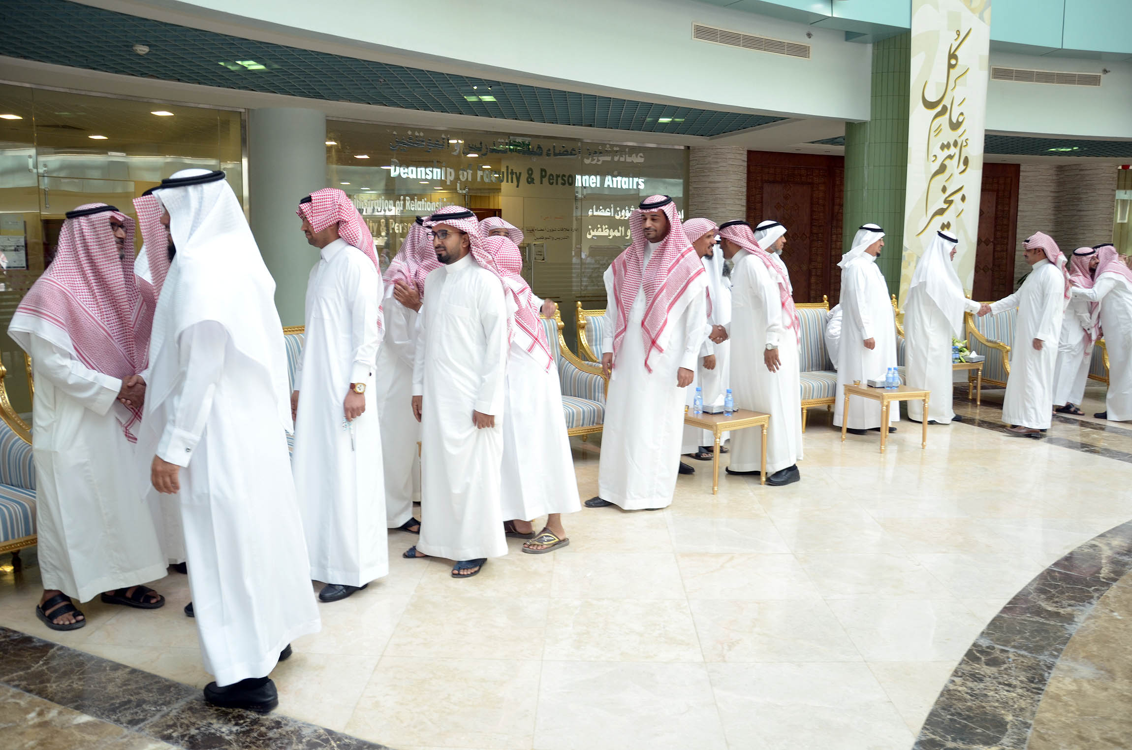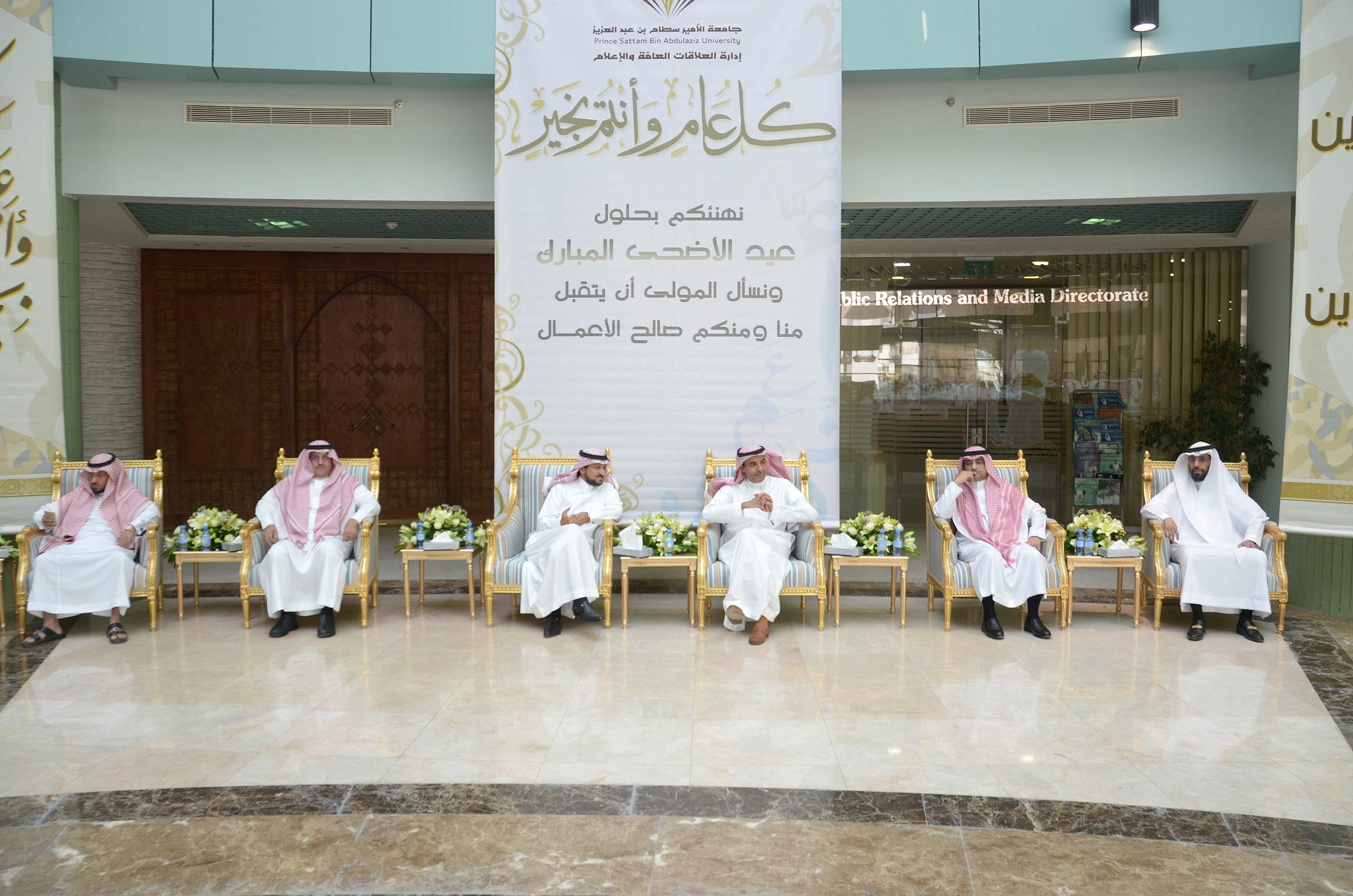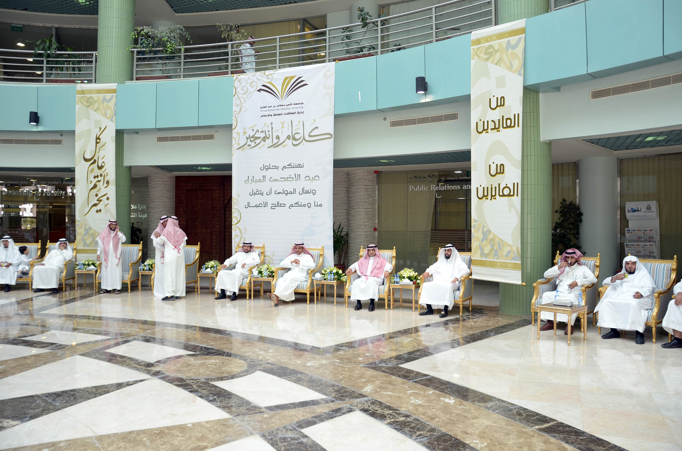 أقامت جامعة الأمير سطام بن عبدالعزيز بمبنى الإدارة بالمدينة الجامعية بالخرج صباح يوم الأحد السابع عشر من شهر ذي الحجة احتفالاً بعيد الأضحى المبارك برعاية معالي مدير الجامعة الدكتور عبدالرحمن بن محمد العاصمي وحضور وكلاء الجامعة وعمداء الكليات والعمادات المساندة ، بالإضافة إلى عدد كبير من أعضاء هيئة التدريس والموظفين , حيث ألقاء معالي مدير الجامعة كلمة بهذه المناسبة قدم فيها تهنئته لمقام خادم الحرمين الشريفين الملك سلمان بن عبدالعزيز ولولي عهده وولي ولي العهد بمناسبة عيد الأضحى المبارك , مباركً لهم نجاح موسم حج هذا العام 1437هـ , كما قدم معاليه تهنئته للحضور حاثاً لهم مع بداية العام الدراسي الجديد بتذليل كافة الصعاب أمام الطلاب والطالبات لتهيئة جواً دراسياً مناسباً وملائماً لهم .