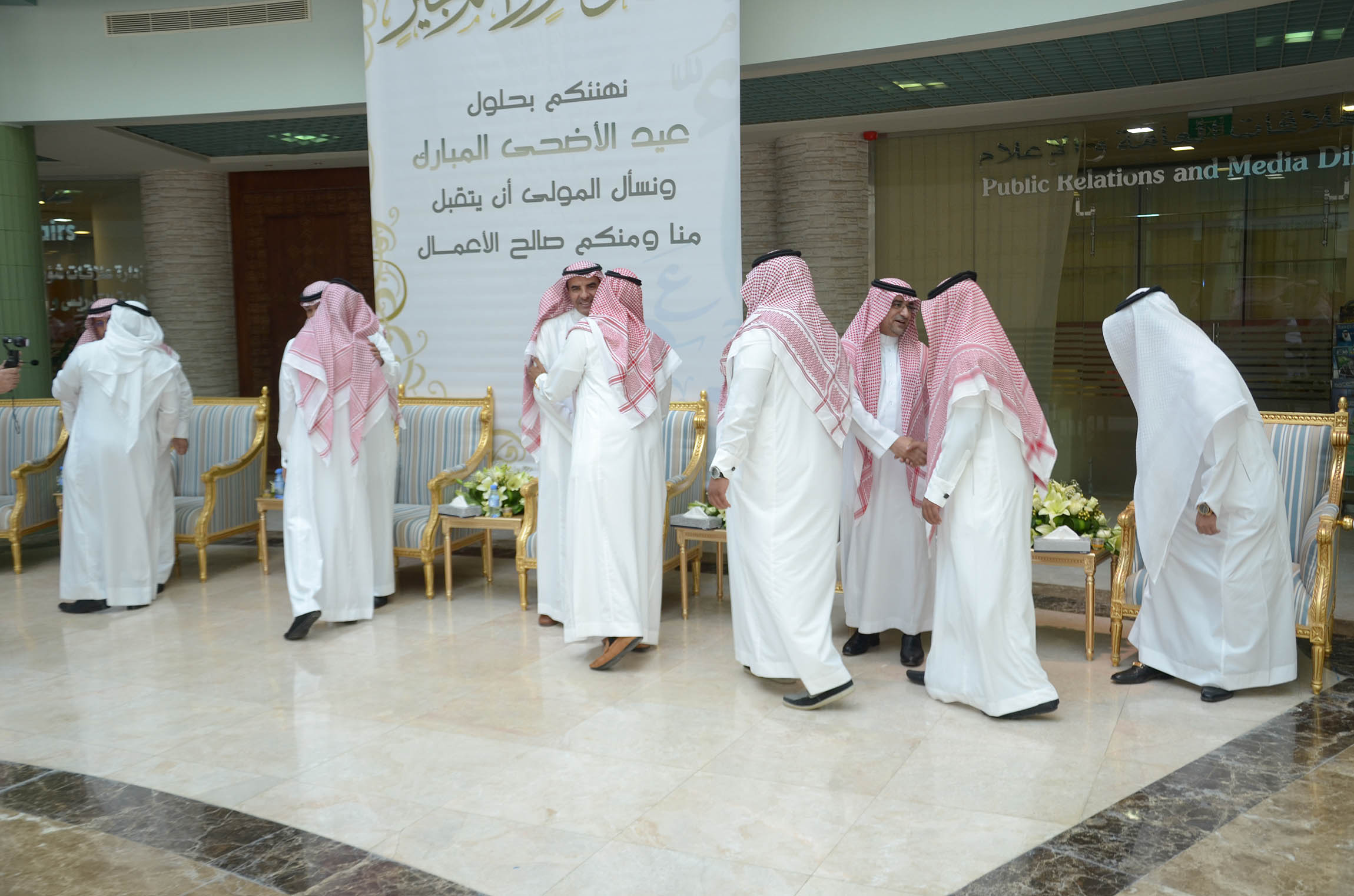 من جهته أوضح المشرف العام على العلاقات العامة والإعلام أن الجامعة تحرص على إقامة هذا الحفل كل عام ليتسنى لكافة الموظفين تبادل التهاني بعيد الأضحى المبارك وتقديم التبريكات لكل من أدى فريضة الحج لهذا العام ، وفي ختام الاحتفال تناول الجميع طعام الإفطار المعد لهذه المناسبة.