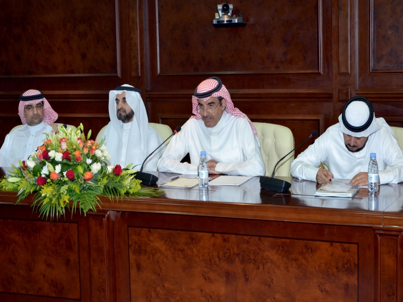 استقبل معالي مدير الجامعة الدكتور عبد الرحمن بن محمد العاصمي في مكتبه بالمدينة الجامعية في محافظة الخرج وفداً من اتحاد الجامعات العربية برئاسة الأمين العام المساعد لاتحاد الجامعات العربية وممثل الأمانة العامة الأستاذ الدكتور مصطفى إدريس البشير يرافقه معالي مدير جامعة القصيم الأستاذ الدكتور خالد بن عبد الرحمن الحمودي ورئس جامعة الخرطوم الأستاذ الدكتور الصديق أحمد المصطفى حياتي وفي بداية اللقاء عبر الدكتور العاصمي عن سعادته ومنسوبي الجامعة بزيارة وفد اتحاد الجامعات العربية. ثم شاهد الوفد الزائر عرضاً مرئياً يُعَرف بالجامعة ونشأتها. تلا ذلك عقد اجتماع بين الجانبين بحضور وكلاء الجامعة، وعدد من العمداء أعضاء مجلس الجامعة، وجرى خلال الاجتماع بحث انضمام الجامعة لاتحاد الجامعات العربية، والشروط التي يجب توافرها لقبول العضوية، و مناقشة إنجازات الجامعة، وعدد من الموضوعات المتعلقة بالشأن الأكاديمي، والتعليمي ، والإداري في الجامعة عقب ذلك اصطحب معالي مدير الجامعة أعضاء الوفد في جولة على بعض مرافق الجامعة المختلفة، شملت زيارة المكتبة المركزية، وعمادة تقنية المعلومات، ومركز البيانات، وكلية الطب، والمعامل البحثية في كلية الصيدلة، والكراسي البحثية في كلية العلوم والدراسات الإنسانية في الخرج، بالإضافة إلى الاطلاع على مجسمات مباني المدينة الجامعية والكليات .