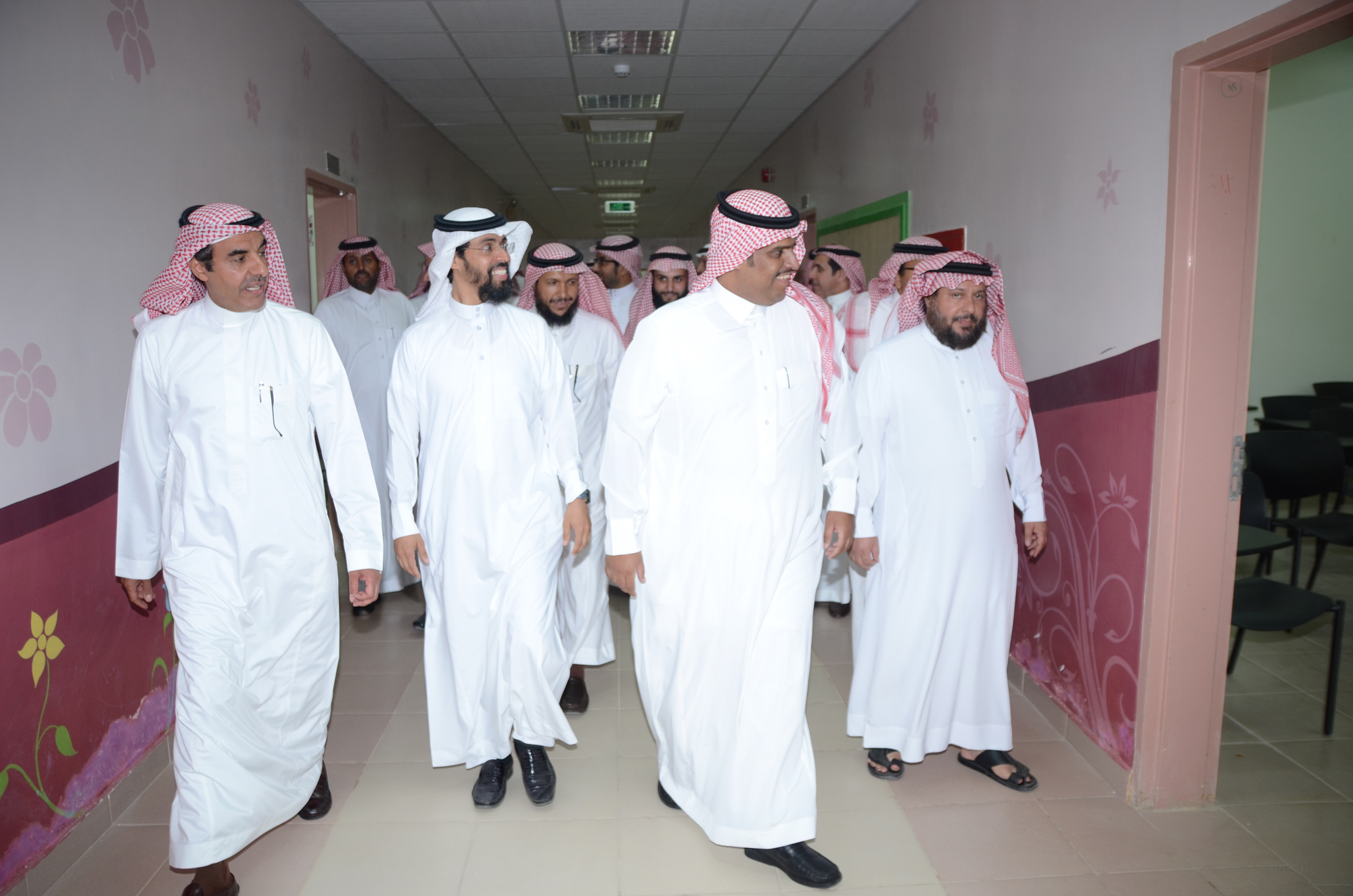 وتجول معاليه ومرافقوه في أروقة المباني والتي شملت قاعات الدراسة ومعامل الحاسب الآلي والمعامل العلمية ومرافق الخدمات والمكاتب الإدارية كما تم خلال الجولة طرح و مناقشة بعض المعوقات وسبل حلها، وذلك بالتعاون مع كافة إدارات الجامعة ذات العلاقة .