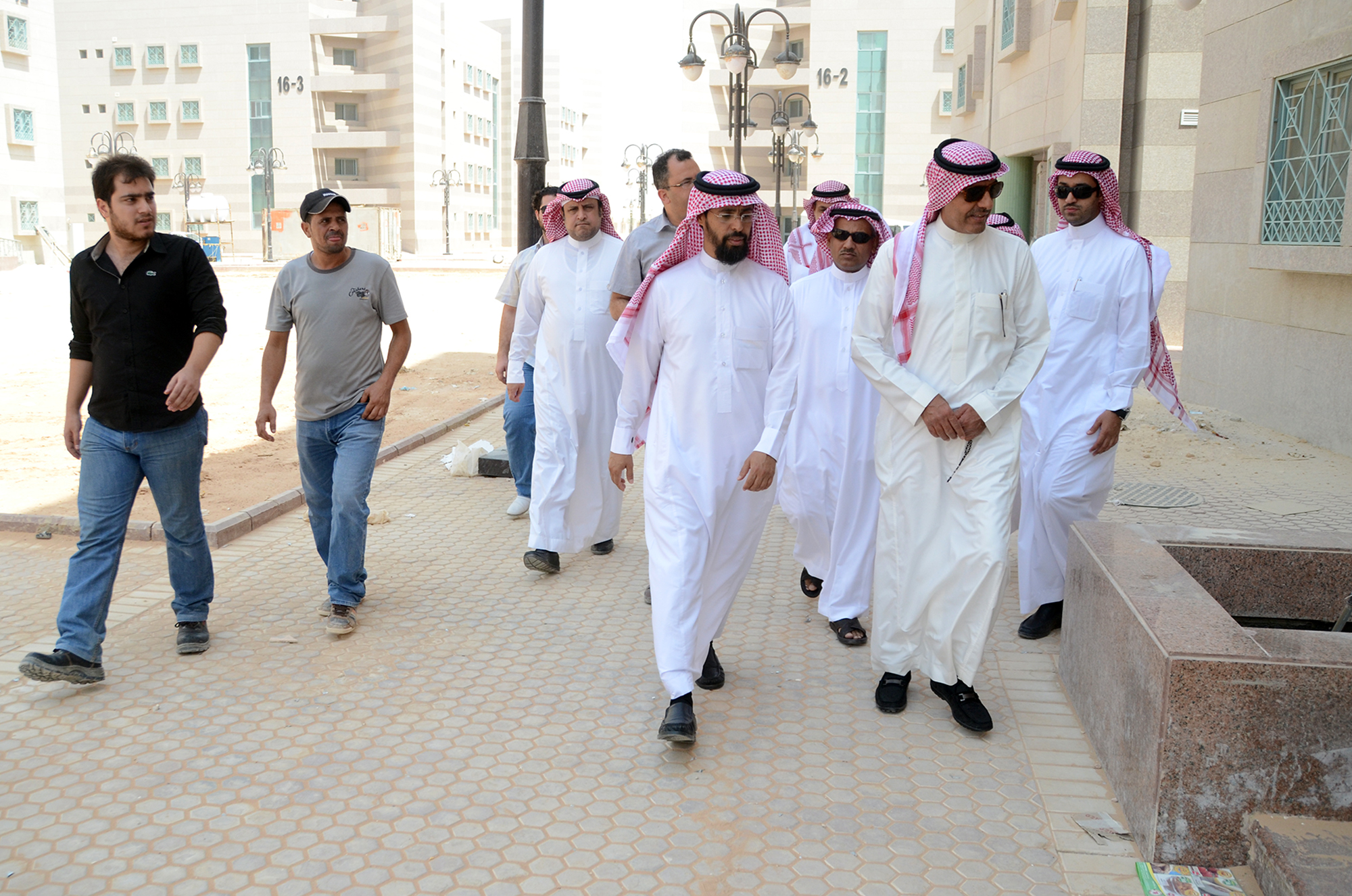 تفقد معالي مدير جامعة سلمان بن عبدالعزيز الدكتور عبدالرحمن بن محمد العاصمي المراحل النهائية لاستلام مشروع إسكان أعضاء هيئة التدريس بالمدينة الجامعية في محافظة الخرج، يرافقه في جولته وكيل الجامعة الدكتور عبدالله الجمعة وعدد من أعضاء لجنة الإسكان.