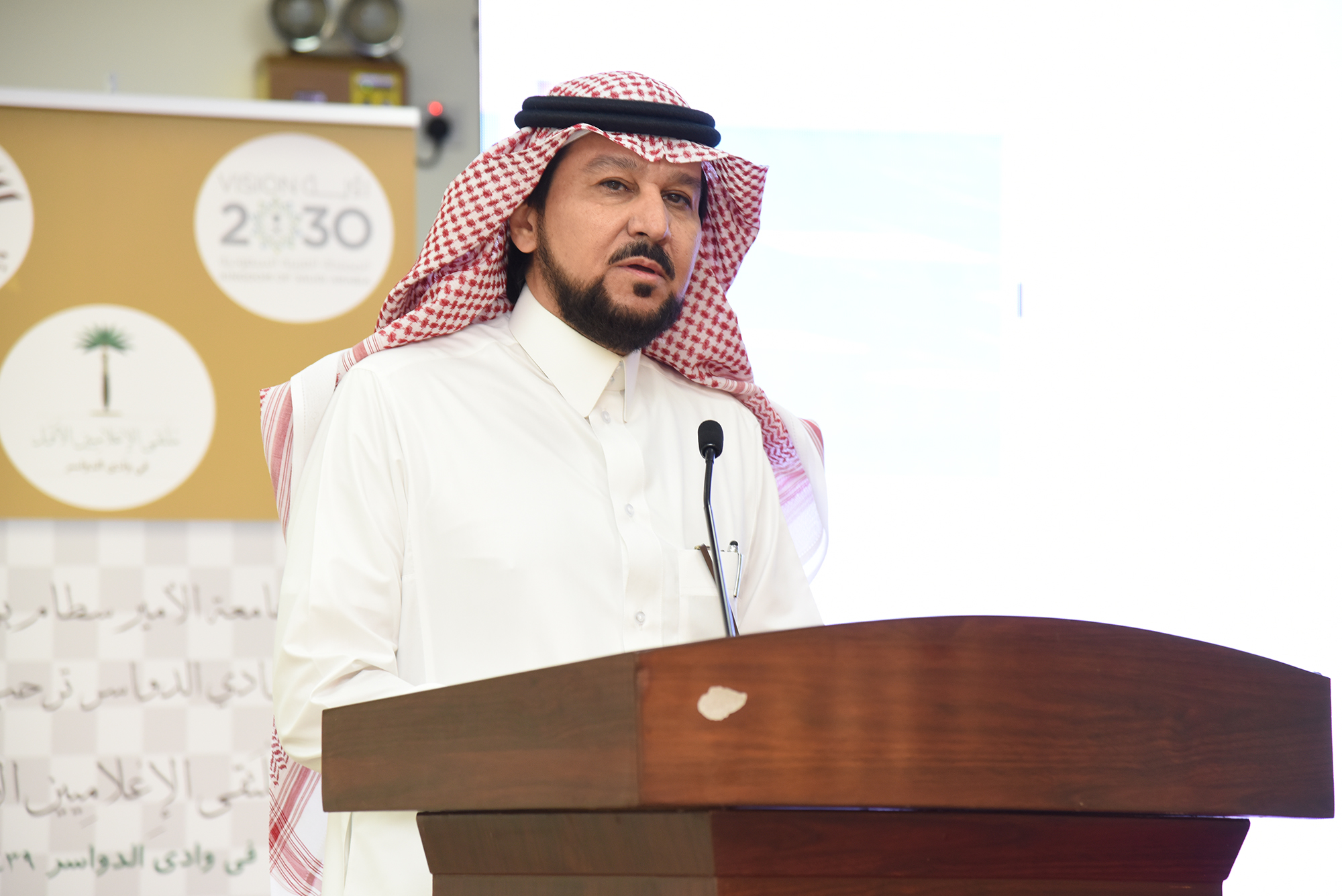 رعى معالي مدير جامعة الأمير سطام بن عبدالعزيز الأستاذ الدكتور عبدالعزيز بن عبدالله الحامد، ملتقى الإعلاميين الأول بمحافظتي وادي الدواسر والسليل والذي نظمته وكالة الجامعة للفروع، على مسرح كلية التربية بوادي الدواسر، بحضور محافظ وادي الدواسر الأستاذ عبدالله المبارك، ووكيل الجامعة الدكتور عبد الله الجمعة، ووكيل الجامعة للفروع الدكتور عبدالله الصقر، وعدد من قيادات الجامعة، ومديري الدوائر الحكومية وإعلاميي المحافظتين، وعدد من المهتمين في المجال الإعلامي.