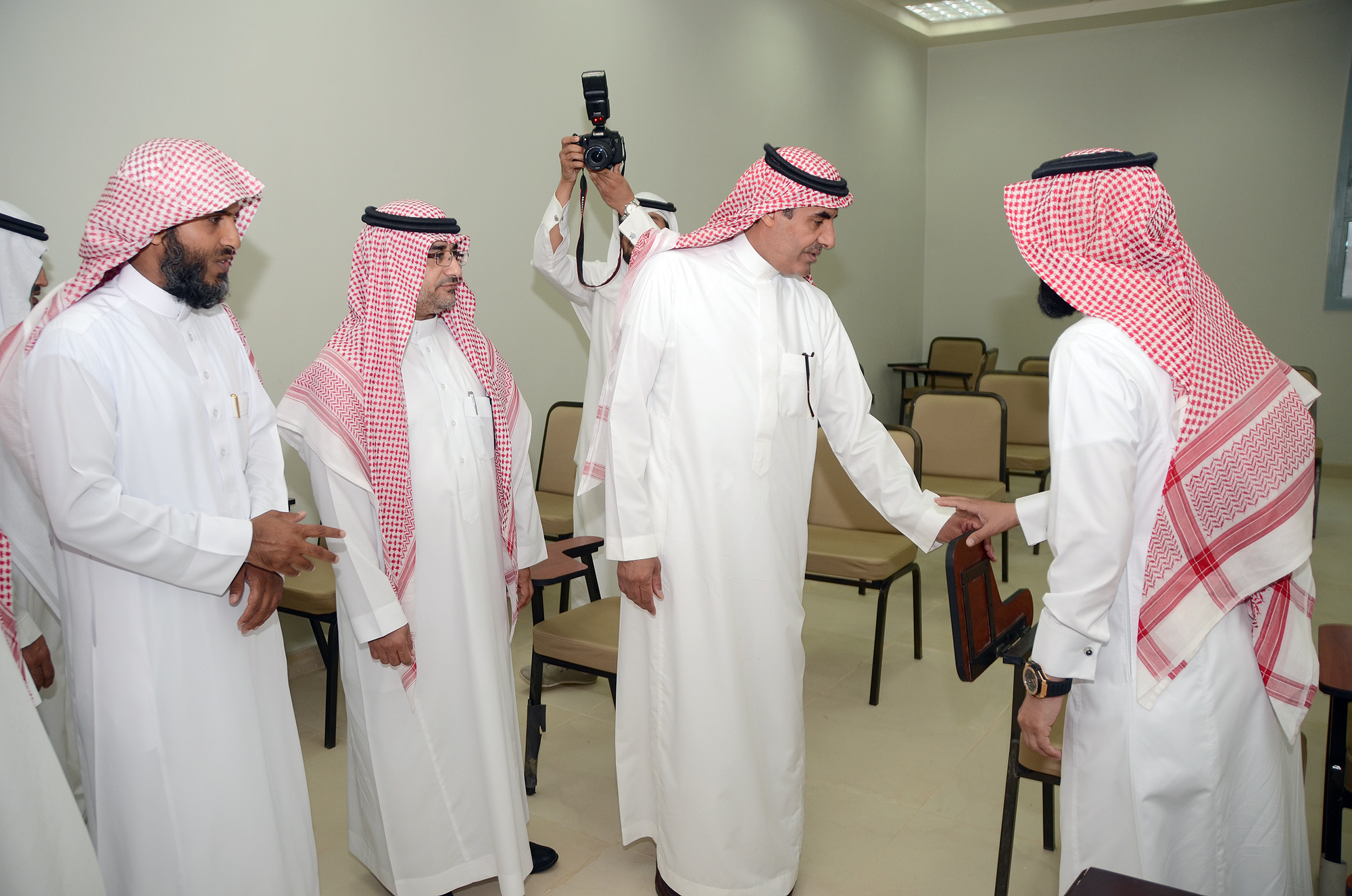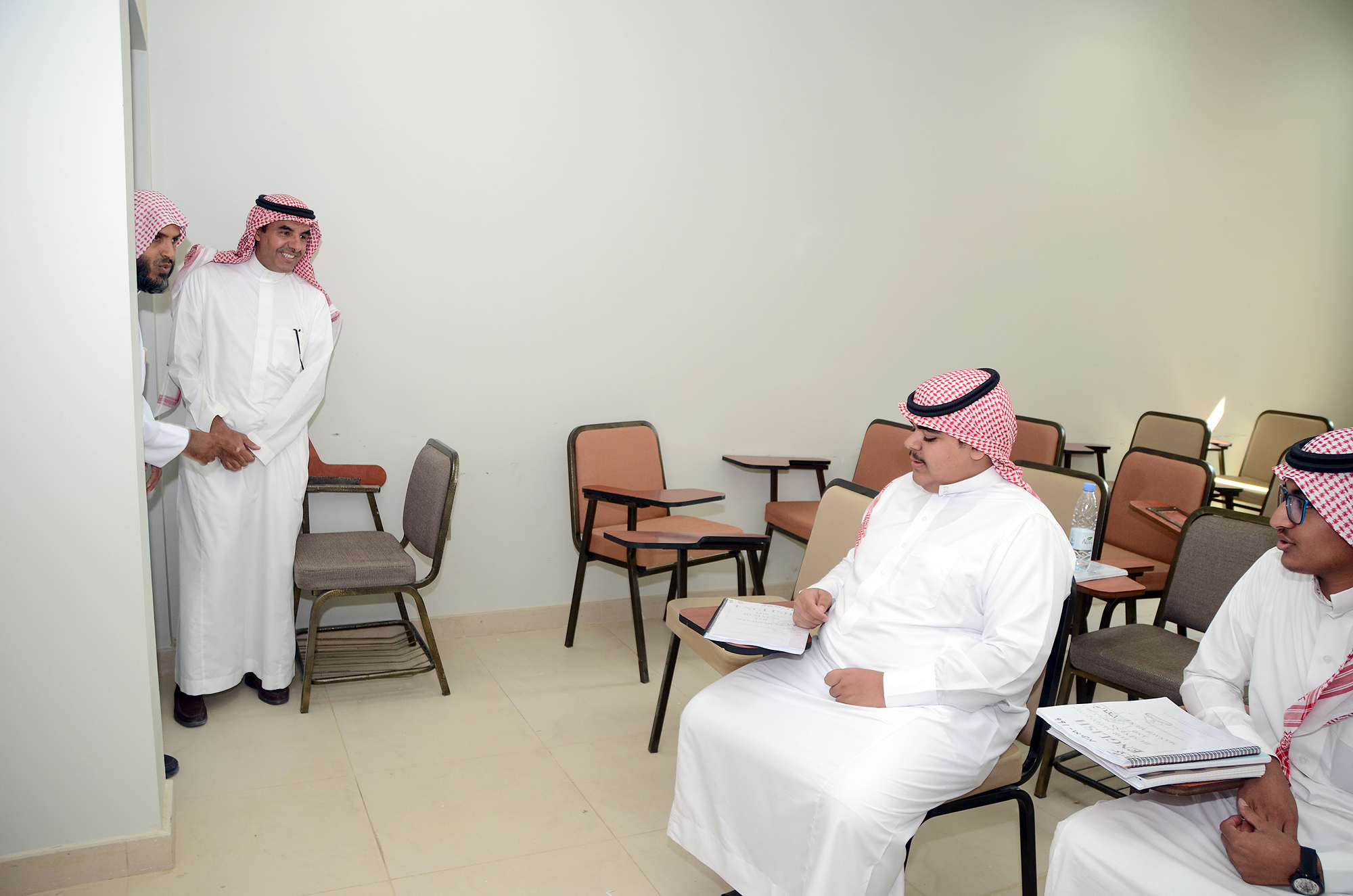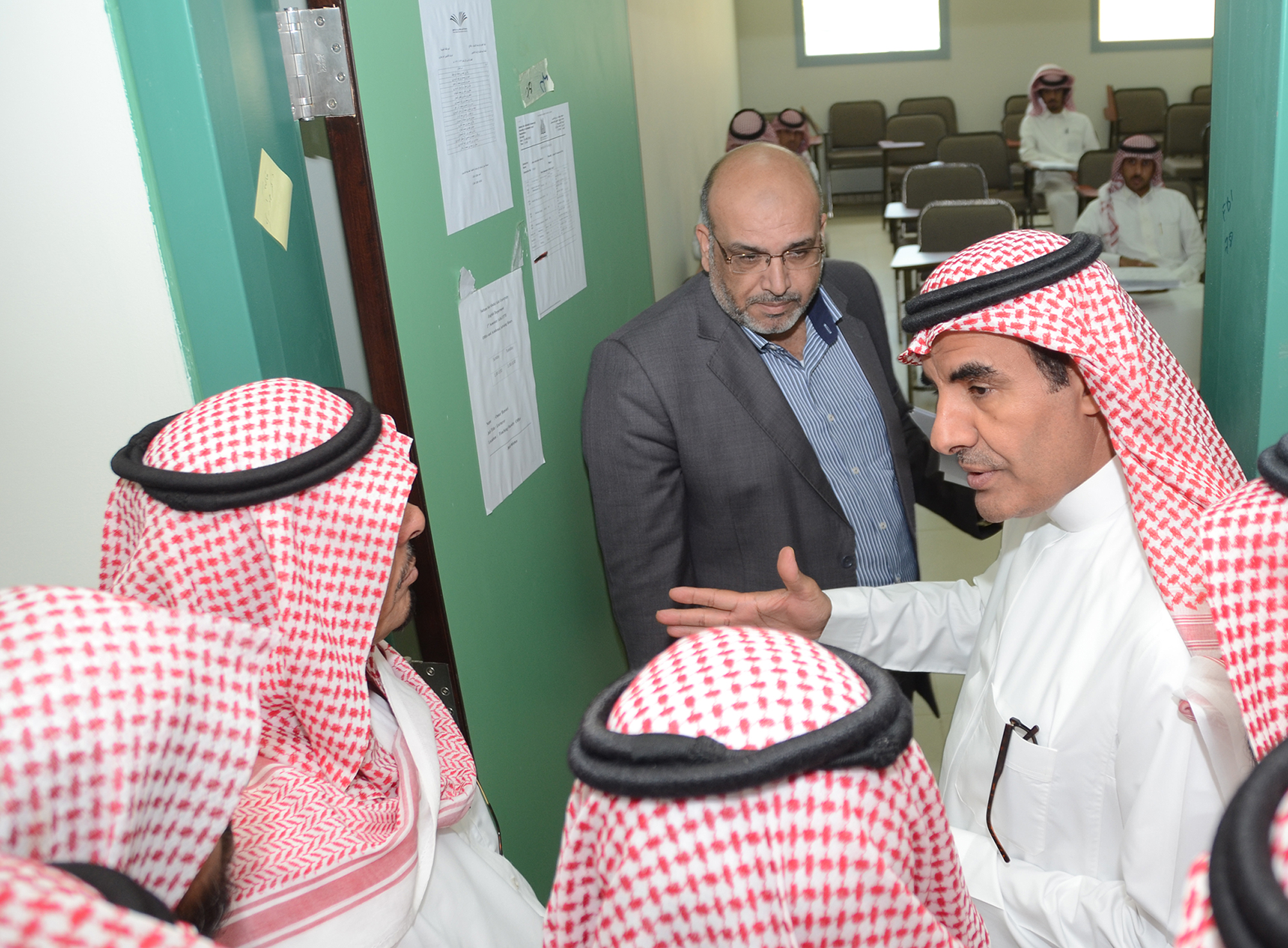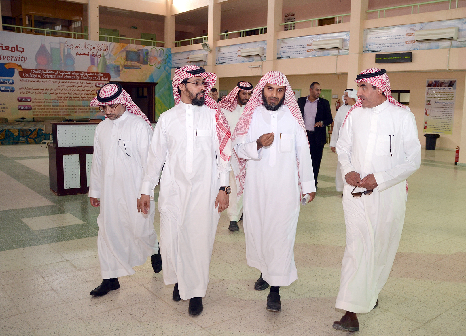 واستمع خلال الجولة لشرح مفصل من المشرف على الكليات عن التجهيزات التي تم توفيرها للطلاب كما تعرف على متطلبات الكلية واحتياجاتها التي تساعد على تجويد العمل وتطويره.