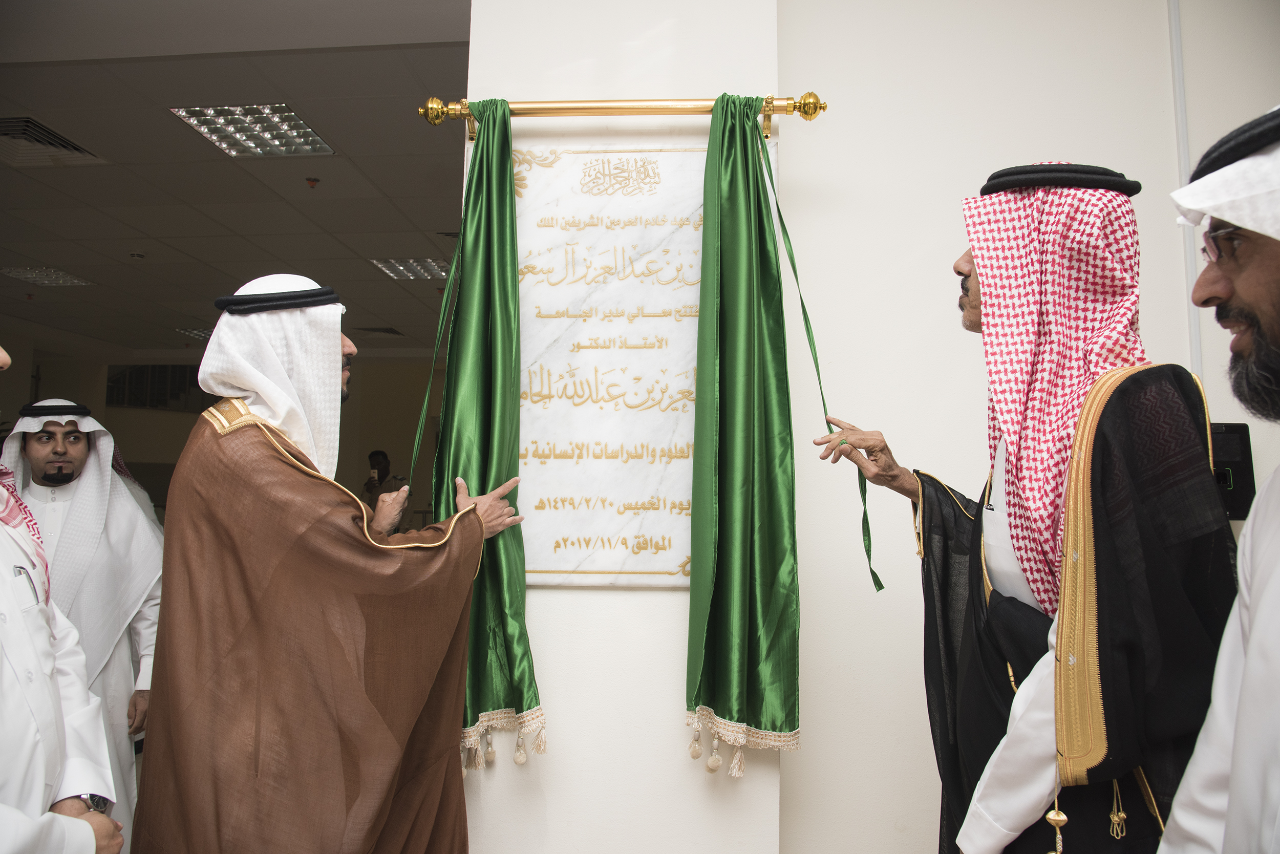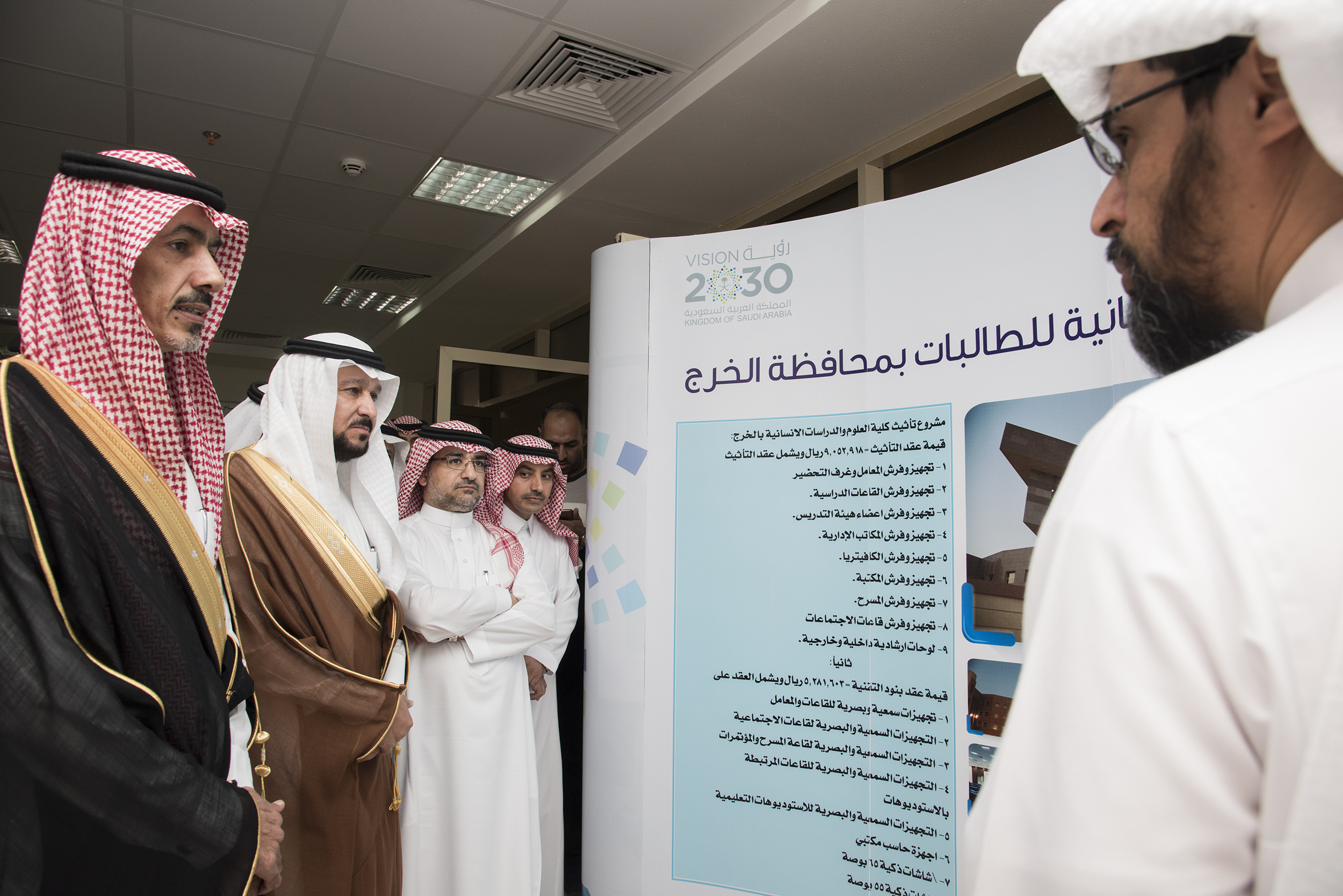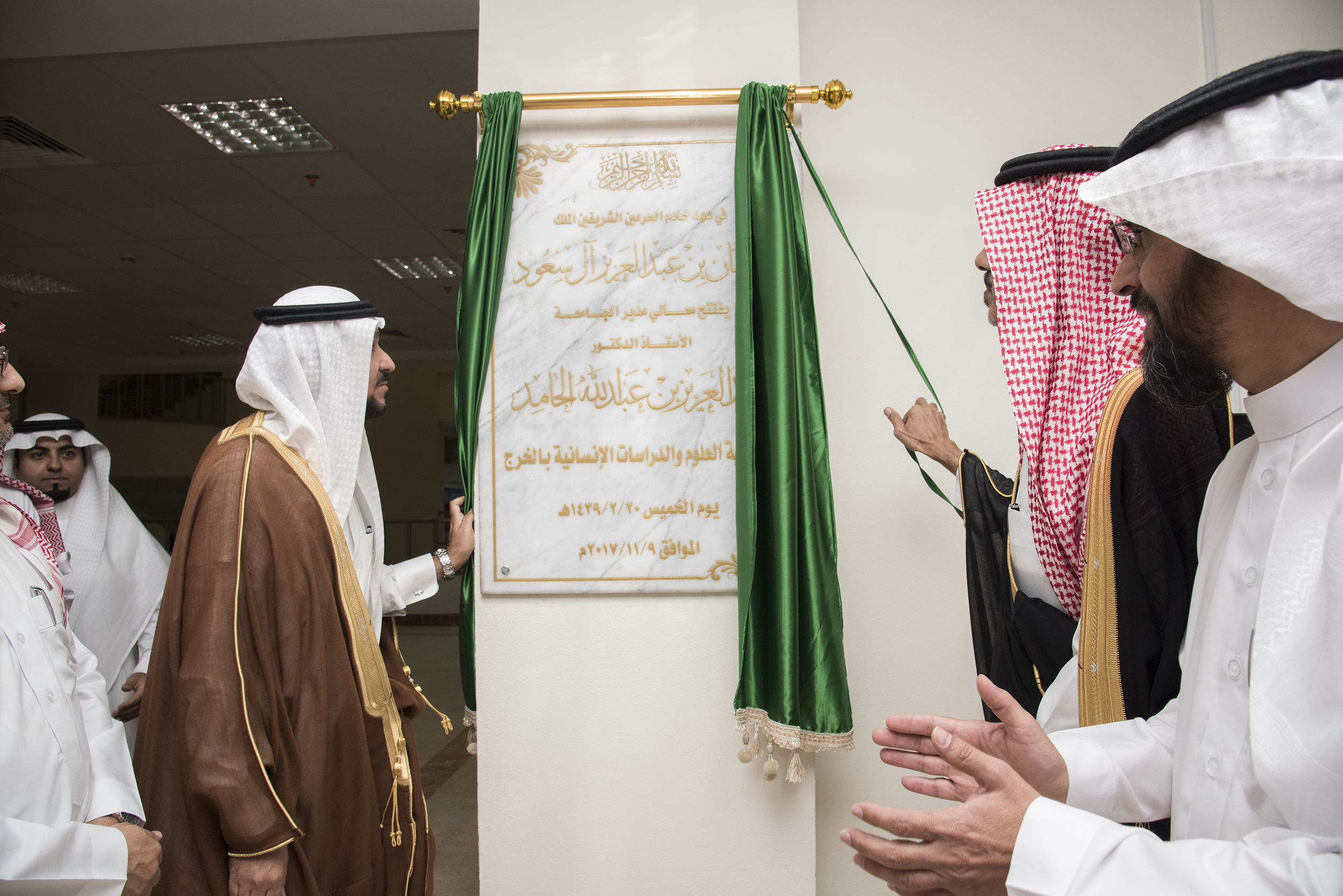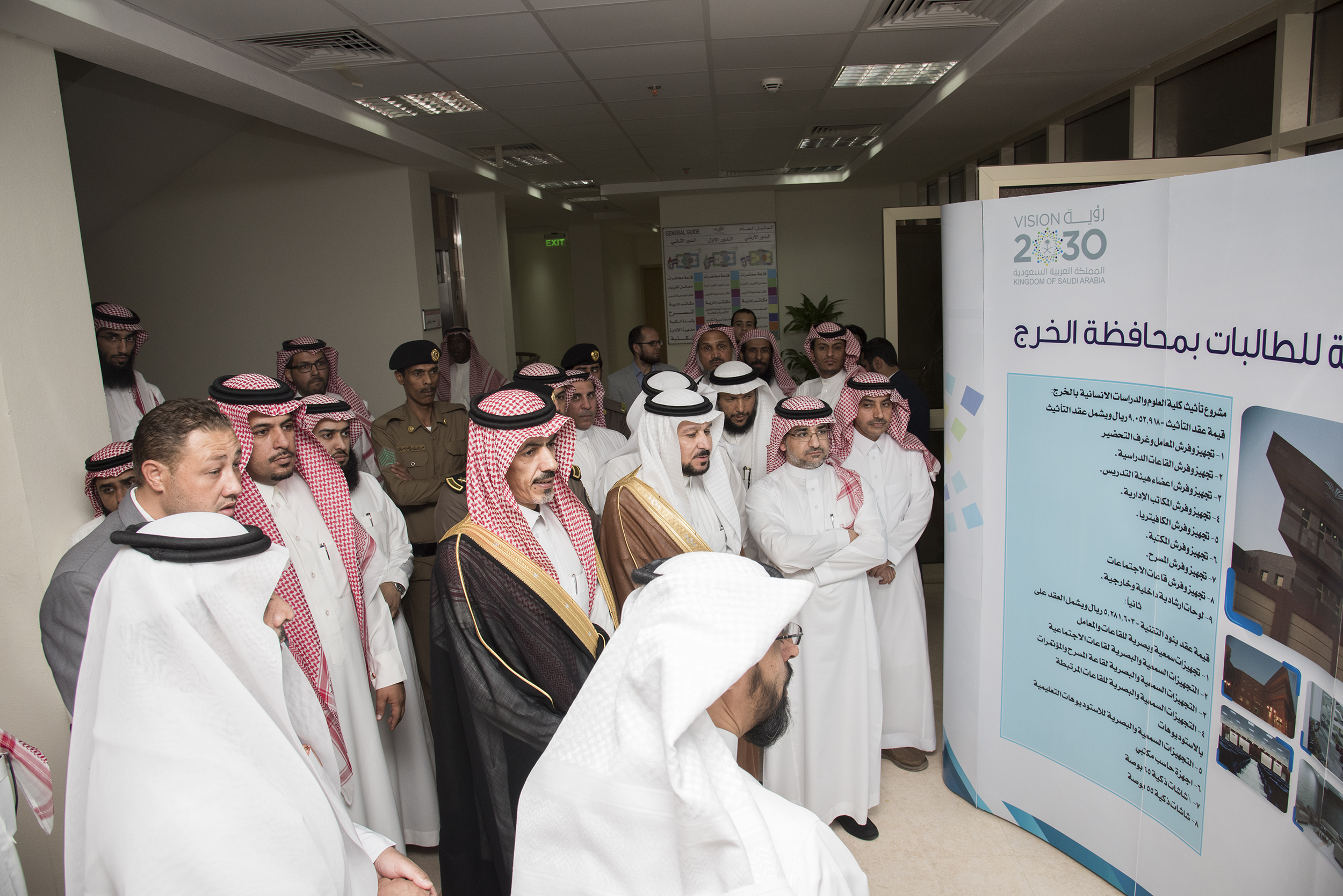 افتتح معالي مدير جامعة الأمير سطام بن عبدالعزيز الأستاذ الدكتور عبد العزيز بن عبدالله الحامد بحضور محافظ الخرج الأستاذ مساعد بن عبدالله الماضي ووكيل الجامعة للشؤون التعليمية والأكاديمية الدكتور عبد الرحمن بن إبراهيم الخضيري، ووكيل الجامعة الدكتور عبد الله الجمعة، ووكيل الجامعة للتطوير والجودة الدكتور ناصر بن سعد القحطاني، ووكيل الجامعة للفروع الدكتور عبد الله آل صقر، وعدد من قيادات الجامعة؛ كلية العلوم والدراسات الإنسانية بالخرج - طالبات، واستهل معاليه حفل الافتتاح بقص شريط افتتاح الكلية، ثم استمع الجميع لشرح مفصل من وكيل الجامعة الدكتور عبدالله الجمعة عن الكلية ومرافقها حيث ذكر الجمعة أن التكلفة الإجمالية للكلية بلغت 71259136 ريال، بعد ذلك أزاح الدكتور الحامد الستار عن اللوح التذكاري ثم تجول معاليه ومحافظ الخرج في مرافق الكلية واطلعوا خلال هذه الجولة على القاعات الدراسية والتي بلغت44 قاعة محاضرات ومسرحا ومكتبة ومصلى و166مكتبًا إداريًّا وكافتيريا و4 قاعات اجتماعات وعيادة طبية، وأبرز التجهيزات التقنية والمعامل، حيث تضم الكلية 16 معملا للفيزياء والكيمياء والأحياء والأبحاث.