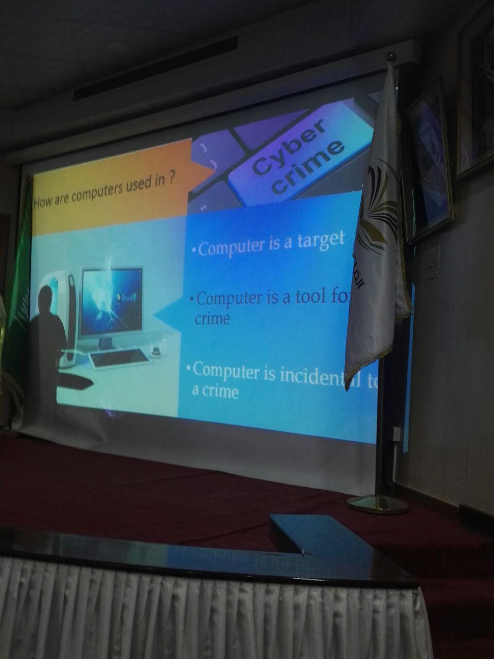 نظمت وحدة تقنية المعلومات بكلية العلوم والدراسات الانسانية بحوطة بني تميم بالتعاون مع عمادة تقنية المعلومات والتعليم عن بعد ووحدة العمل الطلابي وخدمة المجتمع بقسم نظم المعلومات وفي ظل رعاية عميدة الكلية سعادة الدكتورة حصة الهزاني محاضرة بعنوان ( (Cyber Crime قدمتها أ.شهيناز إقبال و أ.نازرين حسين و تطبيق لبرنامج إنشاء الفيديو Cute Cut) ) قدمتها خريجات قسم نظم المعلومات.