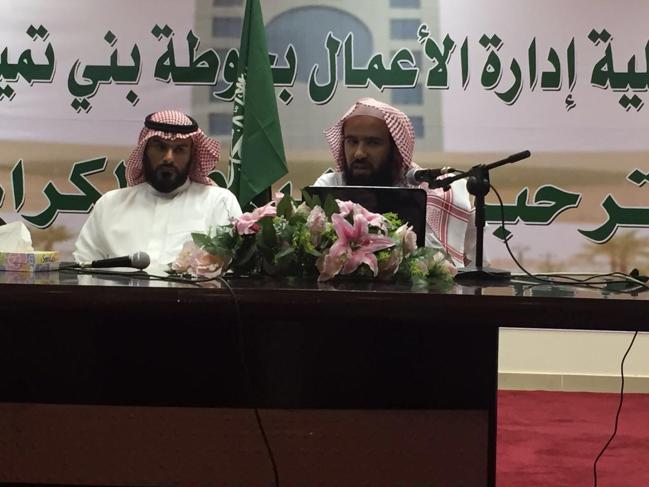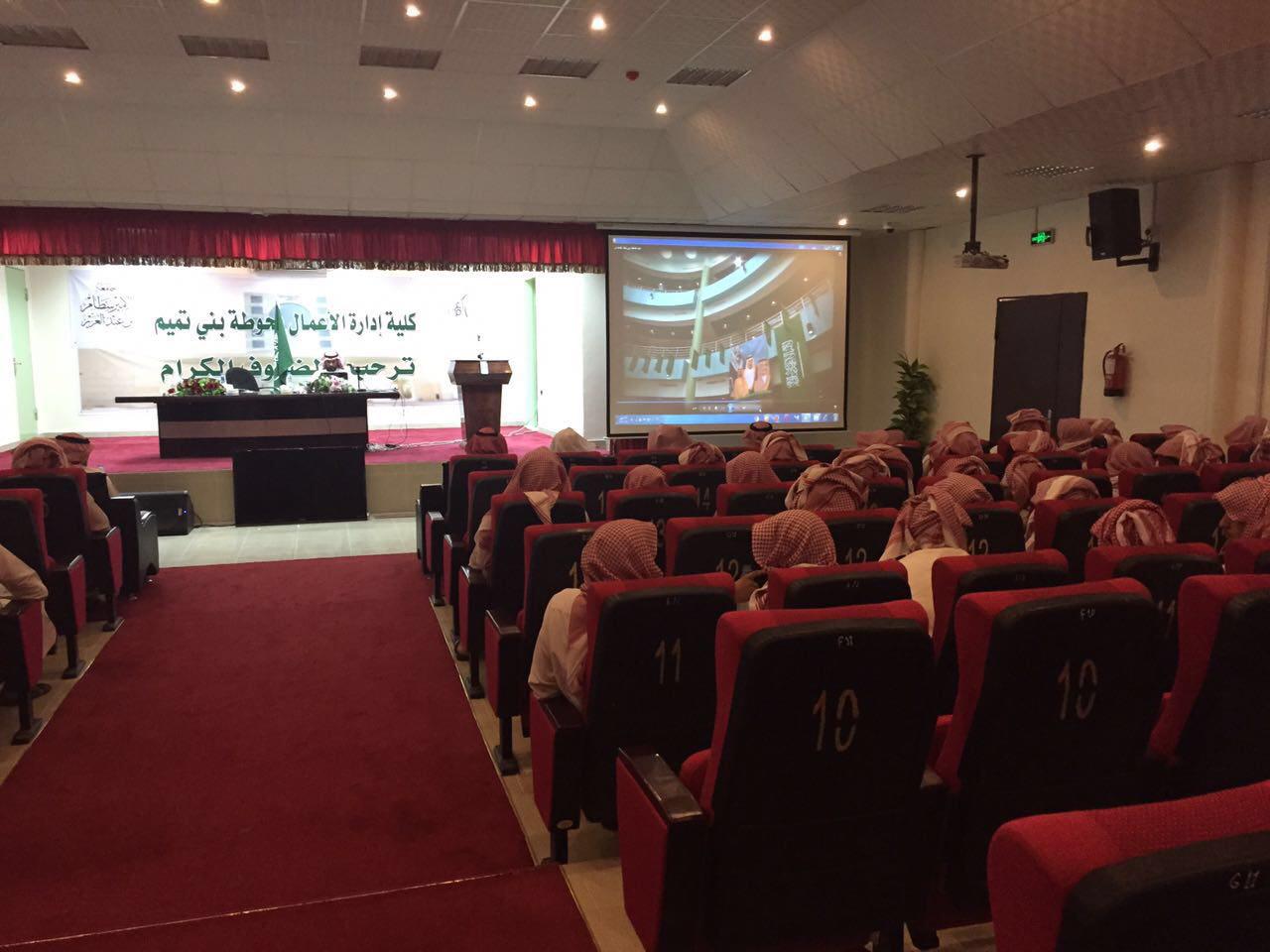 نظمت كلية إدارة الأعمال في حوطة بني تميم بالتعاون مع عمادة القبول والتسجيل في الجامعة محاضرة تحت عنوان: (آليات القبول الموحد الجديدة على مستوى جامعات المنطقة الوسطى)، قدمها عميد القبول والتسجيل د. عبدالعزيز بن محمد الصقر، وذلك في يوم الأربعاء ١٤٣٧/٧/٢٧.