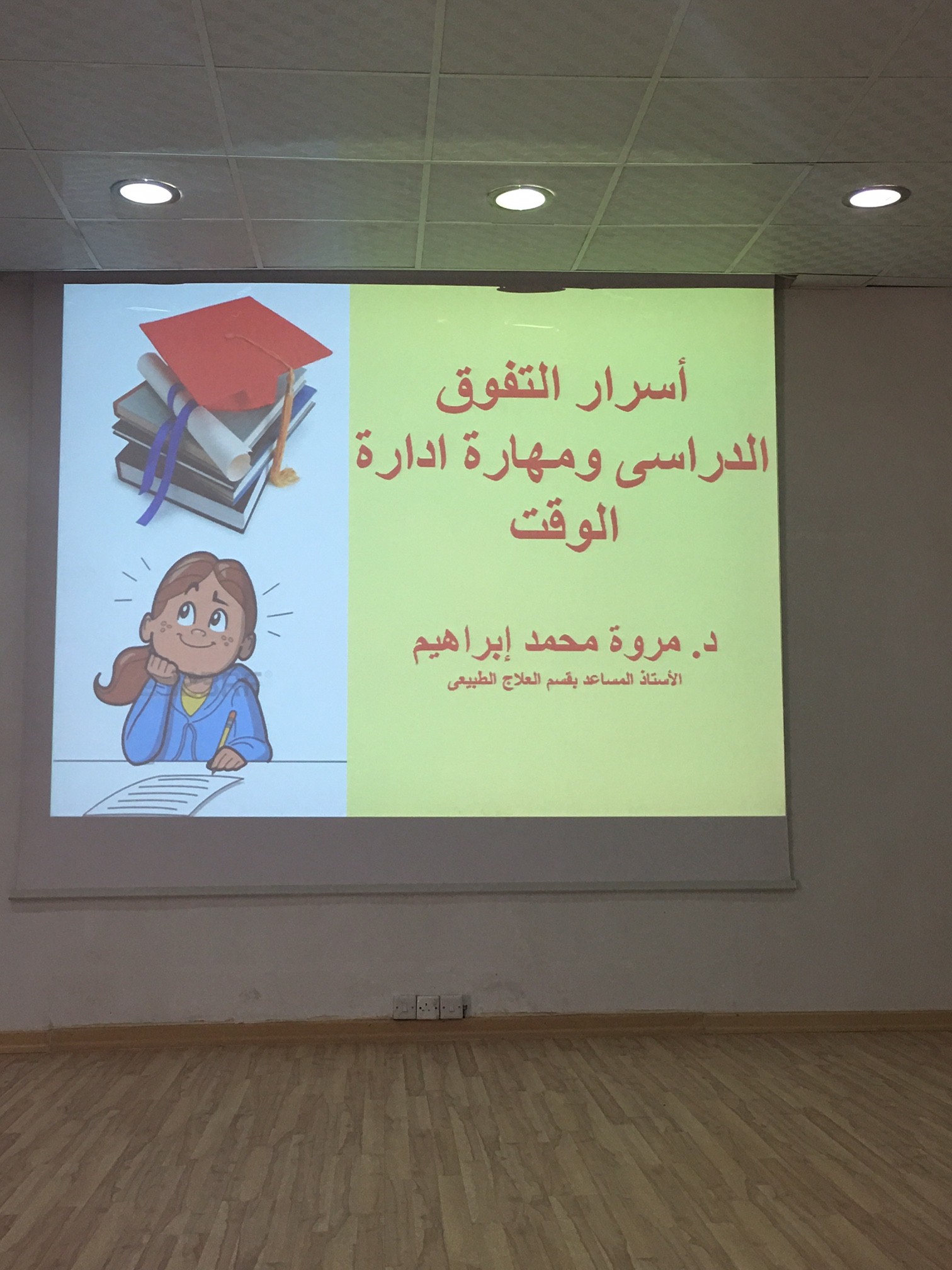 المحاضرة كانت من إلقاء د/مروة محمد إبراهيم (منسقة وحدة الإرشاد الأكاديمي بقسم العلاج الطبيعي)