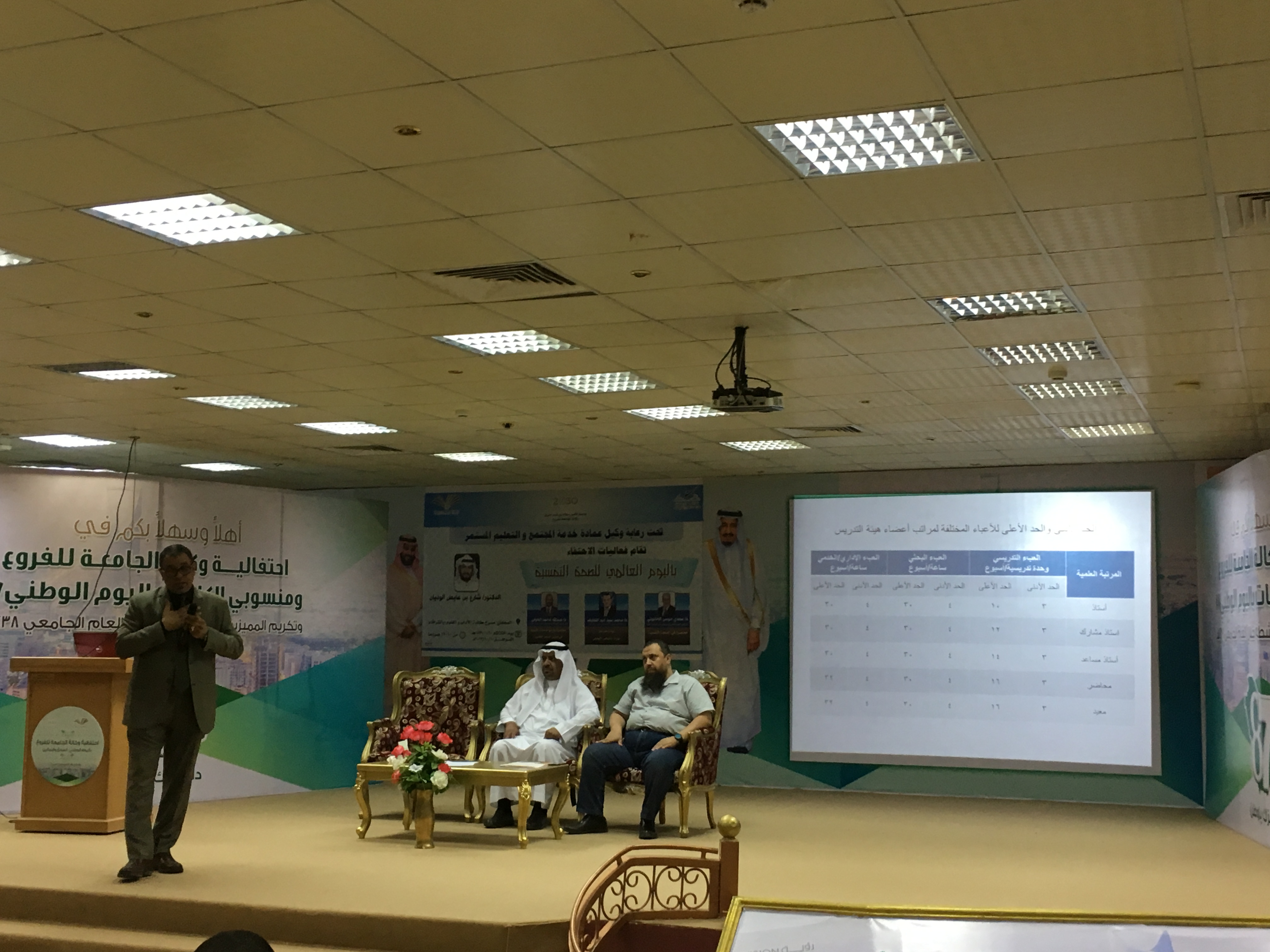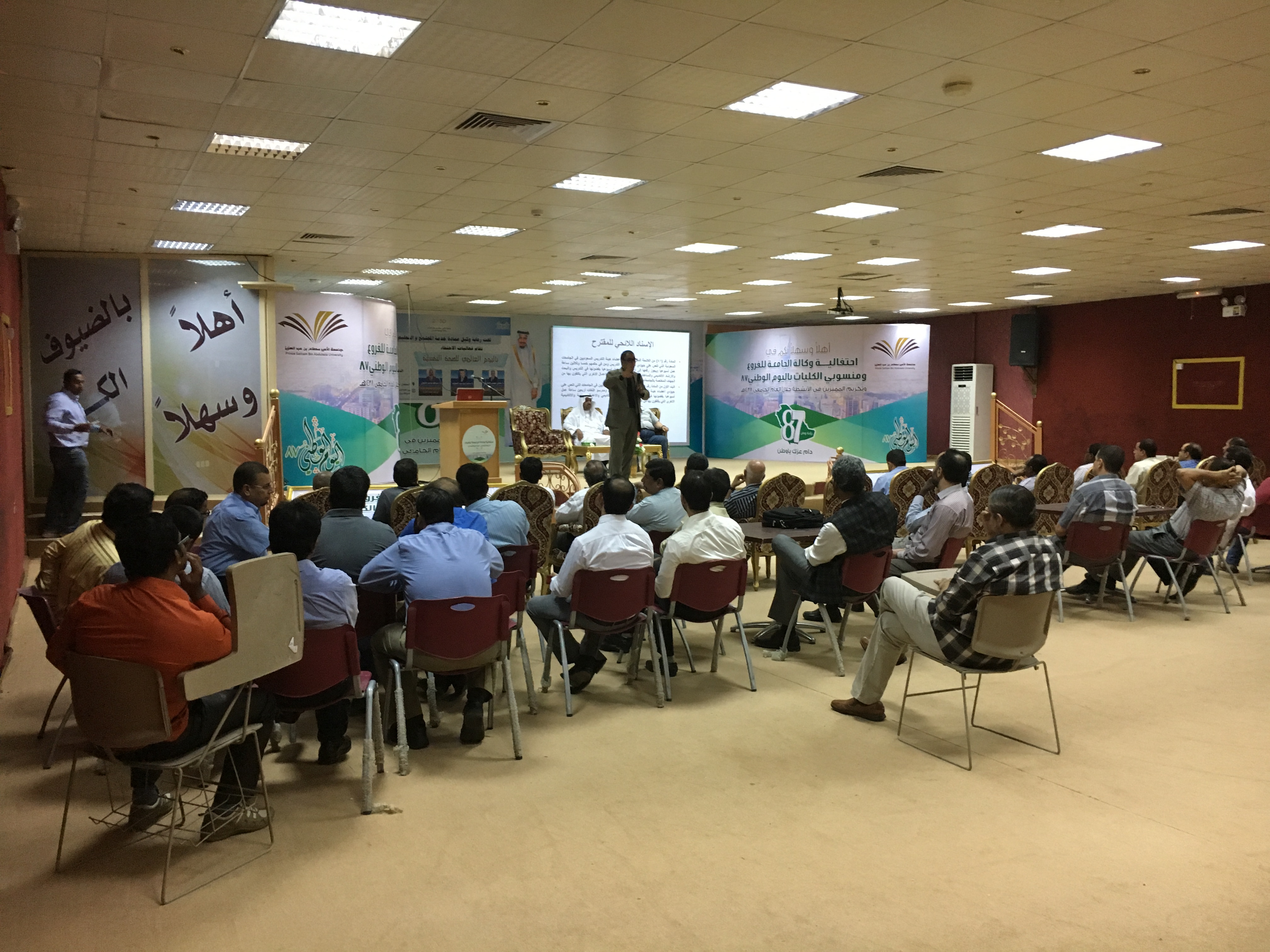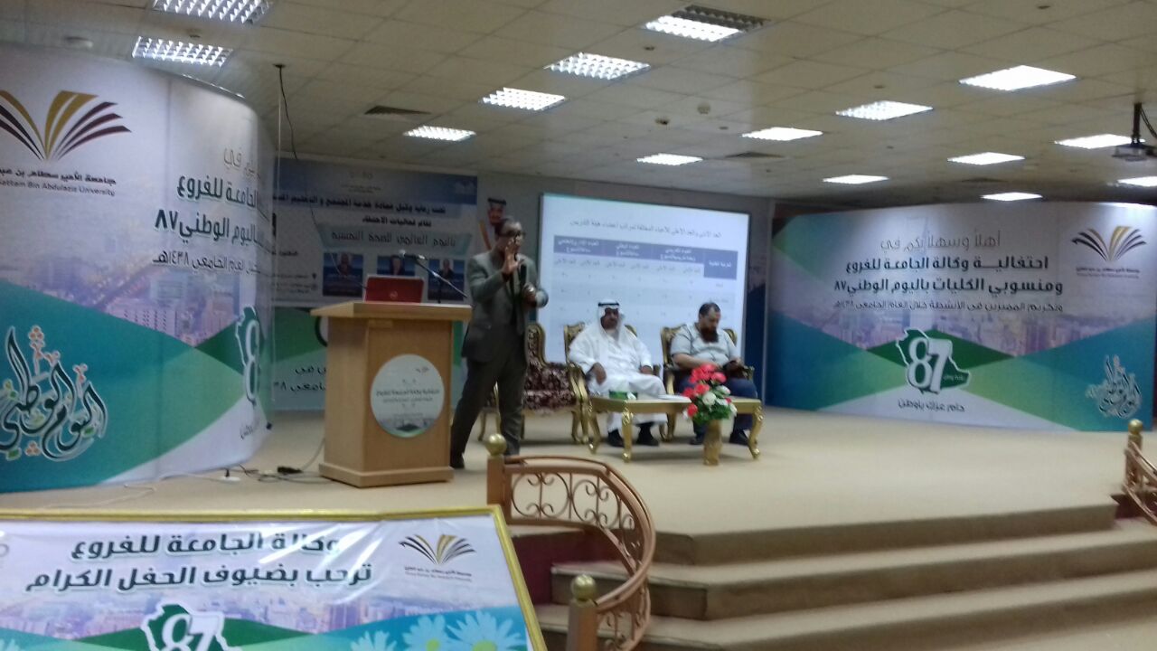 بحضور عميد كلية الآداب والعلوم بوادي الدواسر الدكتور سفر بن بخيت المدرع أقامت الكلية محاضرة بعنوان ( العبء الوظيفي لعضو هيئة التدريس وأهميته) بمسرح الكلية .