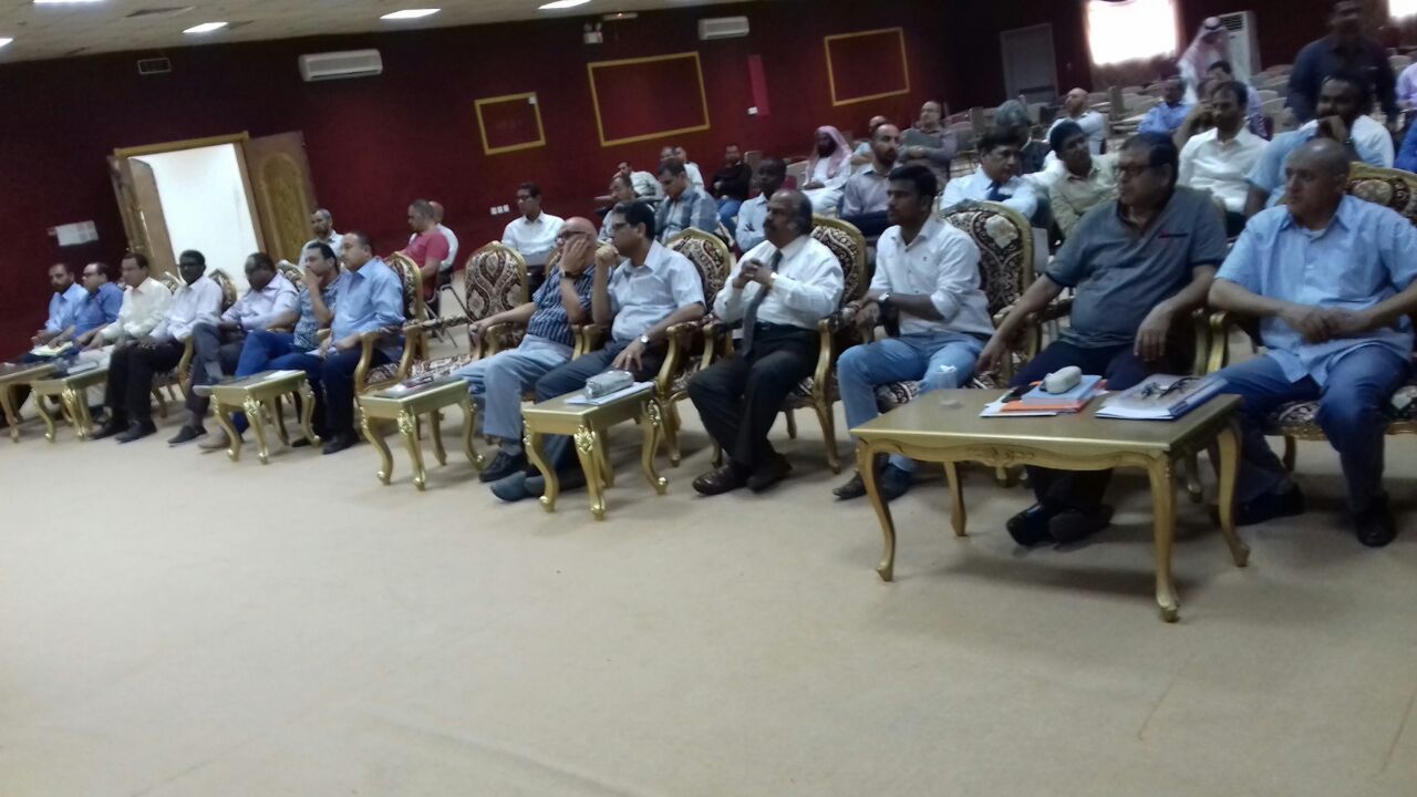وقد حضر المحاضرة جميع أعضاء هيئة التدريس بالكلية من رؤساء أقسام ومنسوبي الأقسام .