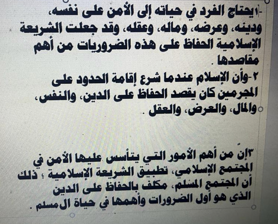 الأمن في المجتمعات الإسلامية ما يتحقق الا بتطبيق شرع الله -