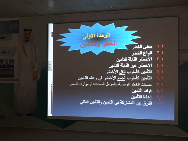 أقامت كلية الآداب والعلوم بوادي الدواسر ممثلة بوحدة الخريجين بمسرح الكلية محاضرة لطلابها بعنوان ( التعريف بشهادة أساسيات التأمين ( IFCE ) قدمها الدكتور أسامة ربيع سليمان عضو هيئة التدريس بالكلية .