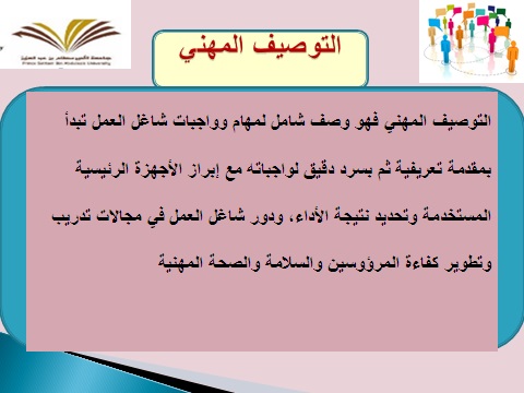 قدمت وحدة الخريجات ممثلة في لجنة الإرشاد المهني بكلية العلوم والدراسات الإنسانية (طالبات) يوم الاثنين الموافق 20/6/1440هـ محاضرة (التوصيف المهني) وذلك بقاعة التدريب في تمام الساعة العاشرة صباحًا.