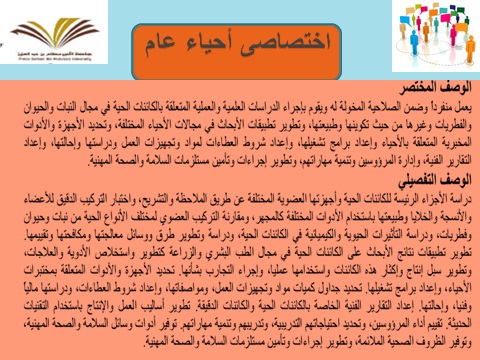 فقد اعدت وقدمت المحاضرة الدكتورة إحسان أحمد حسن منسقة اللجنة وهدفت المحاضرة إلى إرشاد الطالبات لمعرفة التصنيف المهني للتخصصات المختلفة والتوصيف المهني لها.