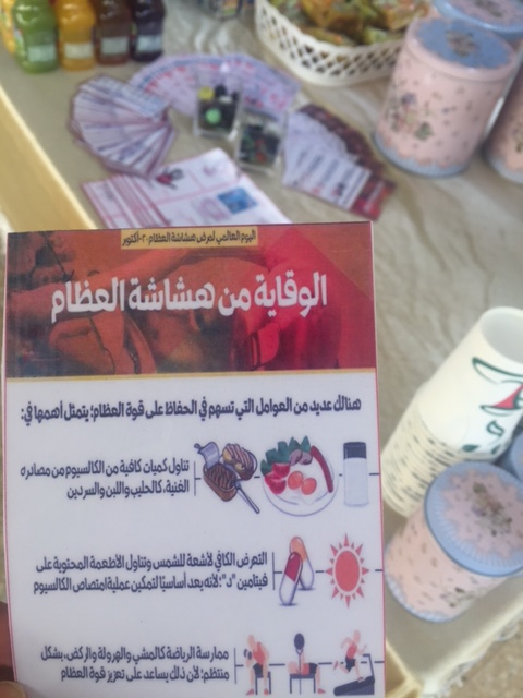 نظم النشاط الطلابي بكلية العلوم والدراسات الإنسانية بالأفلاج مع المركز الصحي بالمحافظة , محاضرة بعنوان ( الوقاية من هشاشة العظام ) , اليوم الأثنين 1438/2/7 هـ في تمام الساعة التاسعة والربع ببهو الكلية , قدمتها الممرضة : ابتسام محمد عفيفي , تحدثت فيها عن هشاشة العظام والفرق بينها وبين الليونه , و من هم أكثر عرضة للهشاشة , و أسبابها , و كيفية الوقاية منها , و ضرورة رفع معدل فيتامين ( د ) في الجسم لوجود علاقة طرديه بينه وبين امتصاص العظام للكالسيوم , و شددت على الإلتزام بالتغذية السليمة للوقاية من هشاشة العظام ( فدرهم وقاية خير من قنطار علاج ) , كما نبهت على إقامة قافلة لمدة شهر للكشف العام و للهشاشة خاصة , دعت إلى الحضور إليها و عدم تفويت هذه الفرصة , استهدفت جميع شرائح المجتمع , حيث تهدف إلى تثقيفهم وتنبيههم للاهتمام بصحتهم وحمايتها مما يضرها .