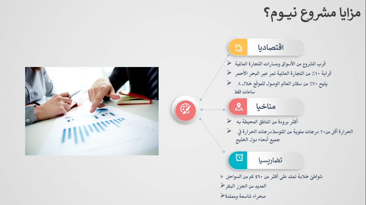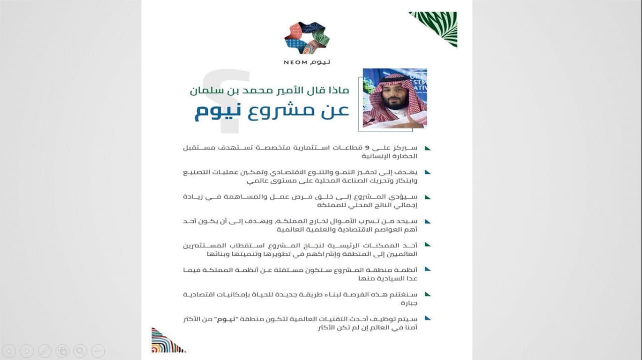 حيث اشتملت المحاضرة تعريفاً عاماً عن مدينة المستقبل (نيوم)،ثم التحدث عن موقع المدينة والهدف من إنشائها ،وتناول العرض أيضاً مزايا مشاريعها الاقتصادية والمناخية، اعقبها تقديم عرض مرئي شيق عن المدينة ومزاياها، كما تم عرض شعار المدينة وبعض الصور واختتم بعرض ما قاله ولي العهد الأمير محمد بن سلمان عن مدينة المستقبل الجديدة وفي ختام المحاضرة تقدمت أ. زهراء علي بكلمة شكرت فيها الحضور والطالبات على جهودهن المتميزة وأثنت على مجهودهن الرائع في إعداد العرض وطريقة تقديمه.
