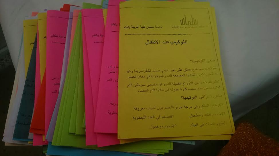 نظمت وحدة العمل الطلابي يوم الاحد 1436/4/26هـ الساعة الحادية عشرة بقاعة الخنساء محاضرة بعنوان ( اليوم العالمي لسرطان الأطفال ) ألقتها أ.ندي السعران مساعدة مساعدة العميدة للشؤون التعليمية والأكاديمية بالمبني الإضافي .