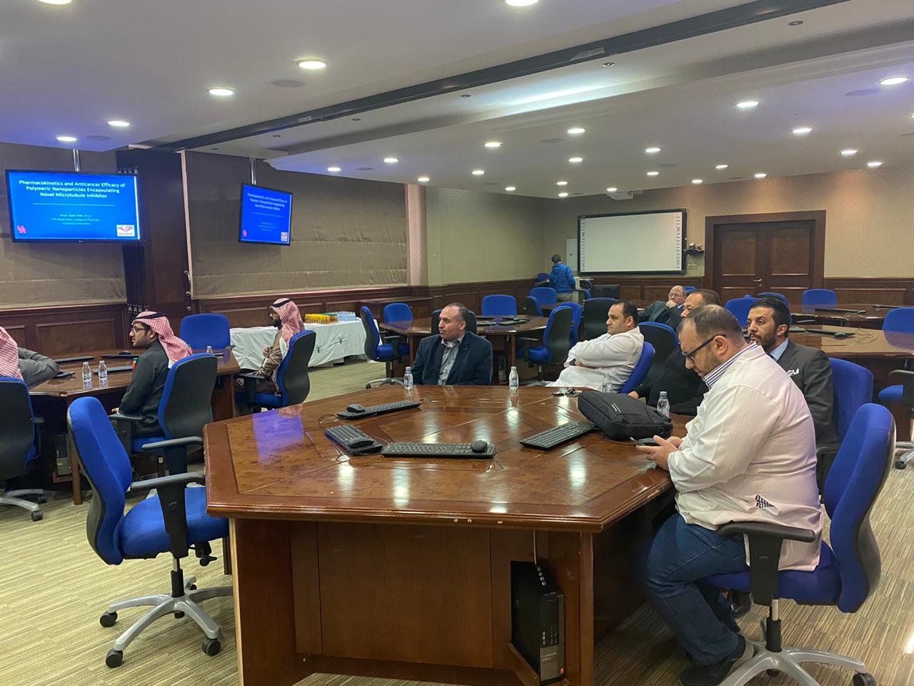 حضر المحاضرة سعادة وكيل الكلية للشؤون التعليمية والأكاديمية الدكتور سعد الشهراني وعدد من أعضاء هيئة التدريس حيثُ قدم الدكتور محاضرة عن تحضير جزيئات النانو ودورها في تحسين الفعالية العلاجية لأدوية سرطان الثدي. تناولت المحاضرة طريقة تحضير جزئيات النانو وكذلك فعاليتها في تحسين الحركية الدوائية والفعالية العلاجية لأدوية السرطان. جزيئات النانو الحاملة لأدوية السرطان أثبتت فعاليتها في علاج سرطان الثدي على الحيوانات المخبرية وهو ما يفتح بابًا جديدًا من الأمل لمرضى السرطان، وفي نهاية المحاضرة قام سعادة وكيل الكلية للشؤون التعليمية والأكاديمية ورئيس لجنة خدمة المجتمع والتعليم المستمر بتكريم سعادة الدكتور وشكره على المحاضرة الرائعة