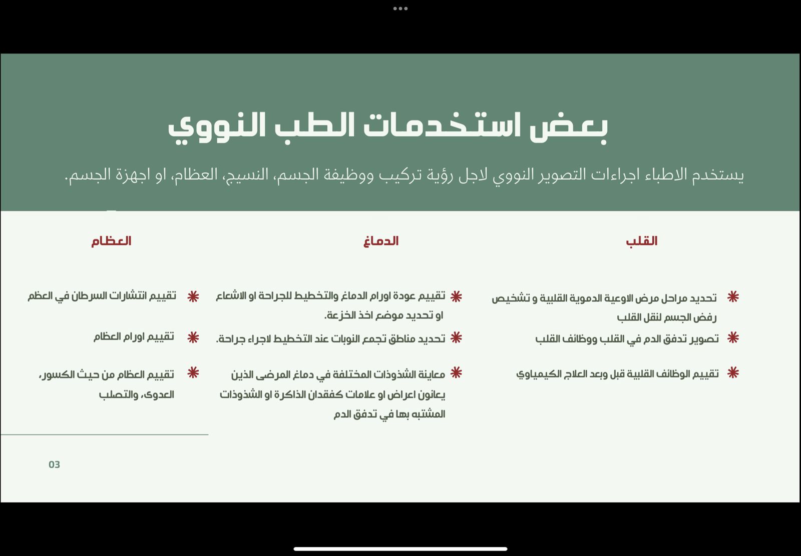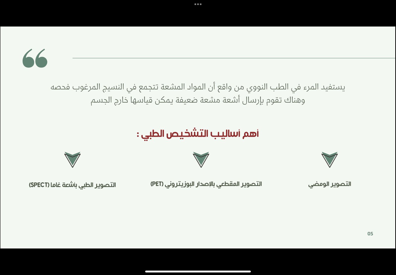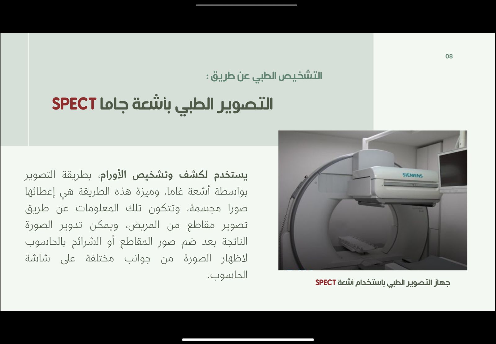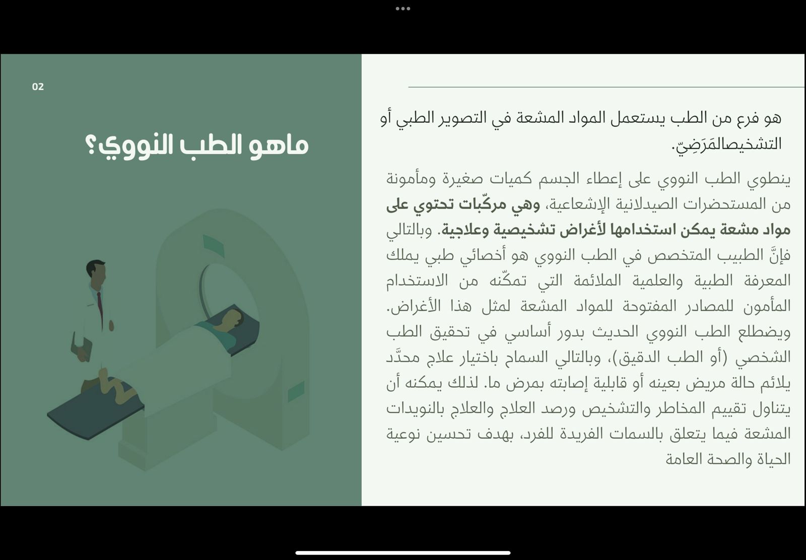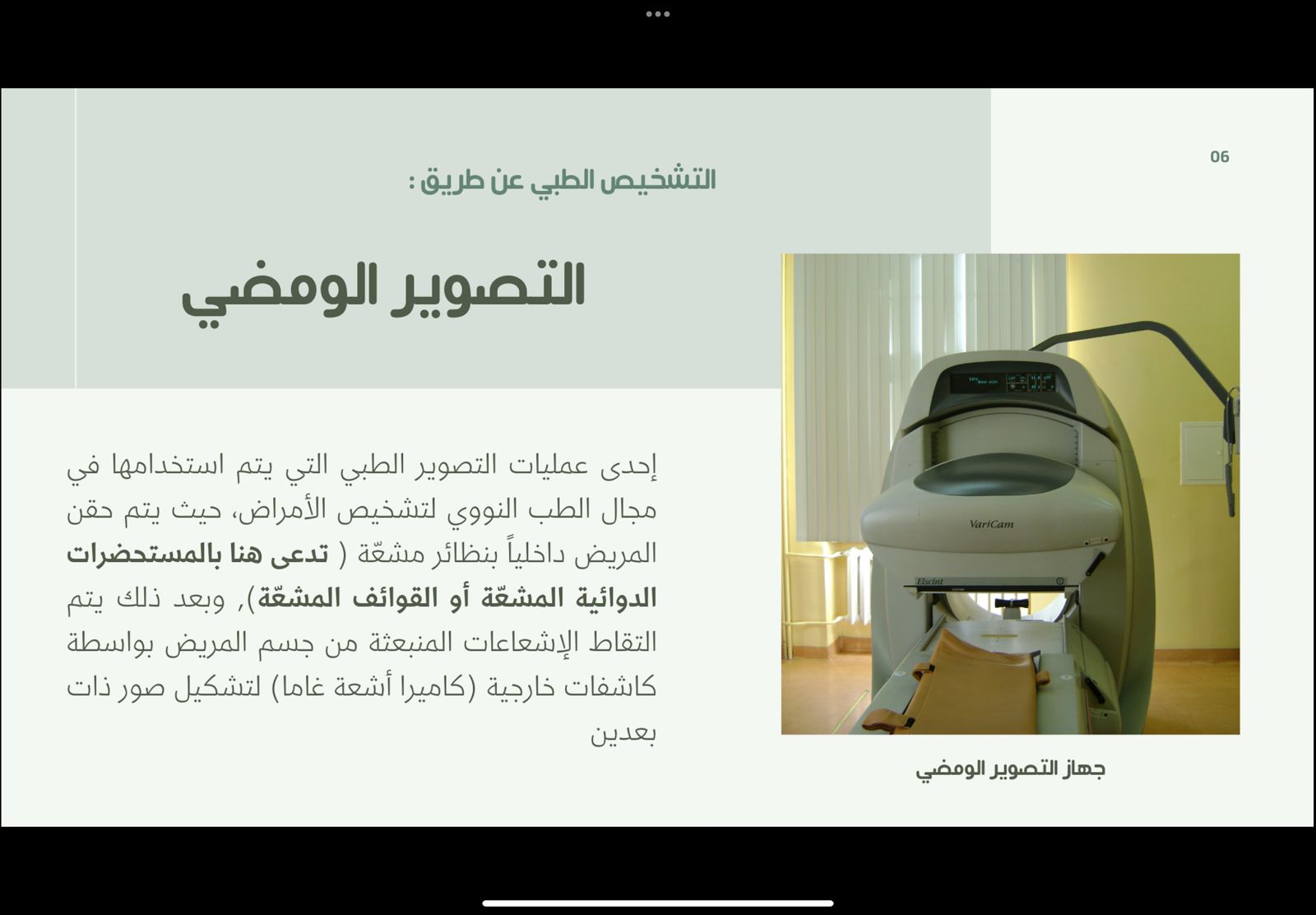 يهتم نادي العلوم الأساسية بعمادة السنة التحضيرية -قسم الطالبات بما هو جديد من تقنيات حديثة في كل المجالات والتعرف على مزاياها، لذا نظم محاضرة بعنوان "تقنيات العلاج النووي" يوم الأربعاء الموافق 1443/07/29هـ وذلك تحت إشراف وتنظيم أ. زهراء علي عبد الله، وبحضور منسوبات العمادة وطالباتها. قدمت الطالبات عرض لبعض الأجهزة المستخدمة في التصوير والعلاج النووي وهدفت هذه الفعالية الى: معرفة استخدامات الطب النووي لرؤية وتركيب ووظيفة الجسم والأنسجة والعظام و معرفة الأساليب الطبية التي يتم تطبيقها في الطب النووي،و التعرف على الأجهزة وطريقة عملها كما تم عرض طرق العلاج النووي المختلفة. وقد تضمن العرض بعض الفيديوهات والصور الشيقة التي تشرح هذه التقنية وصور لمدينة الملك عبد الله للطاقة الذرية والمتجددة التي تختص في هذا المجال والمسئولة عن إنشاء أقسام الطب النووي بكل أنحاء المملكة، وختاماً تمت الإشادة من الحضور من منسوبات العمادة بالمعلومات المفيدة التي تم عرضها وشكرن الطالبات على التقديم الرائع.