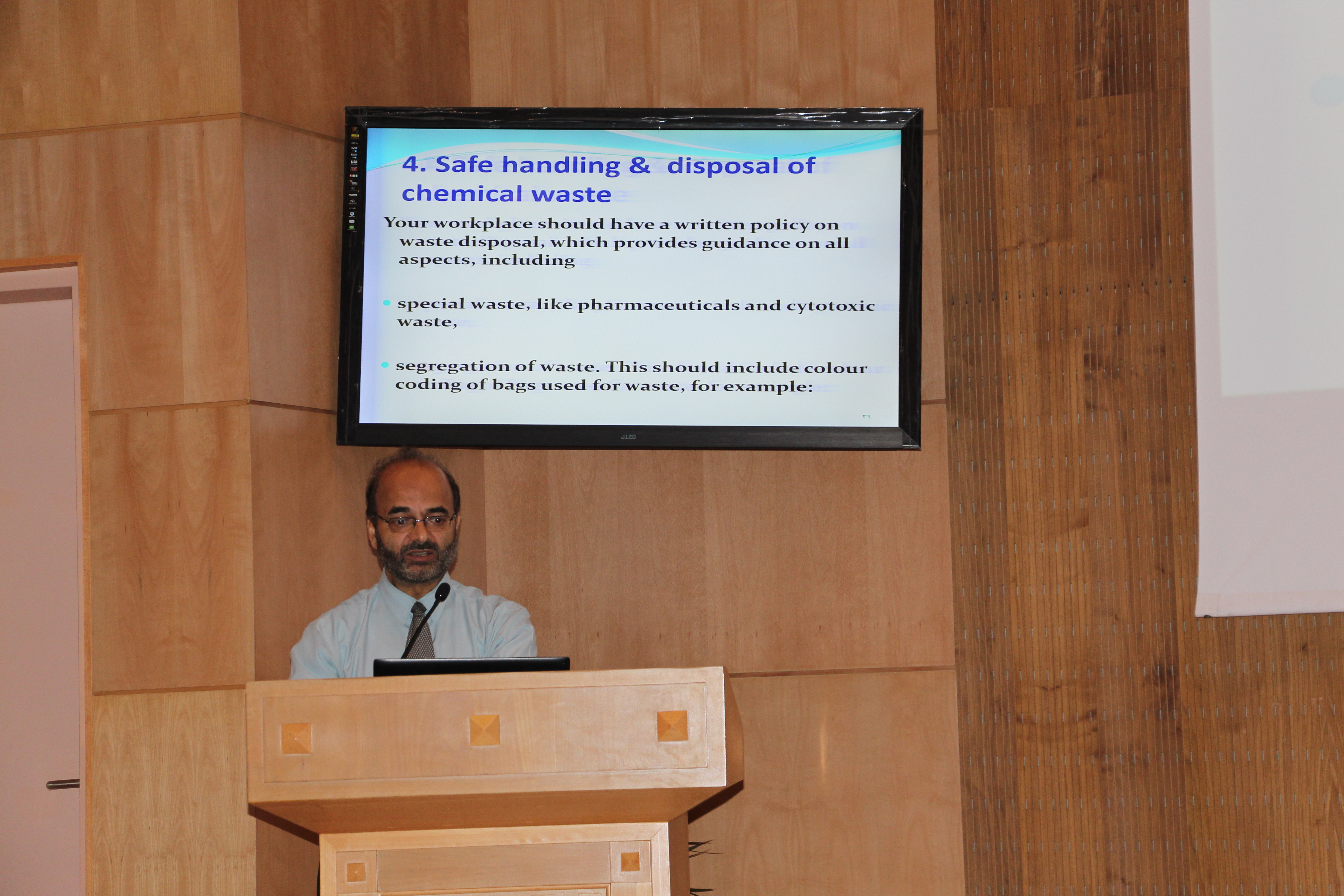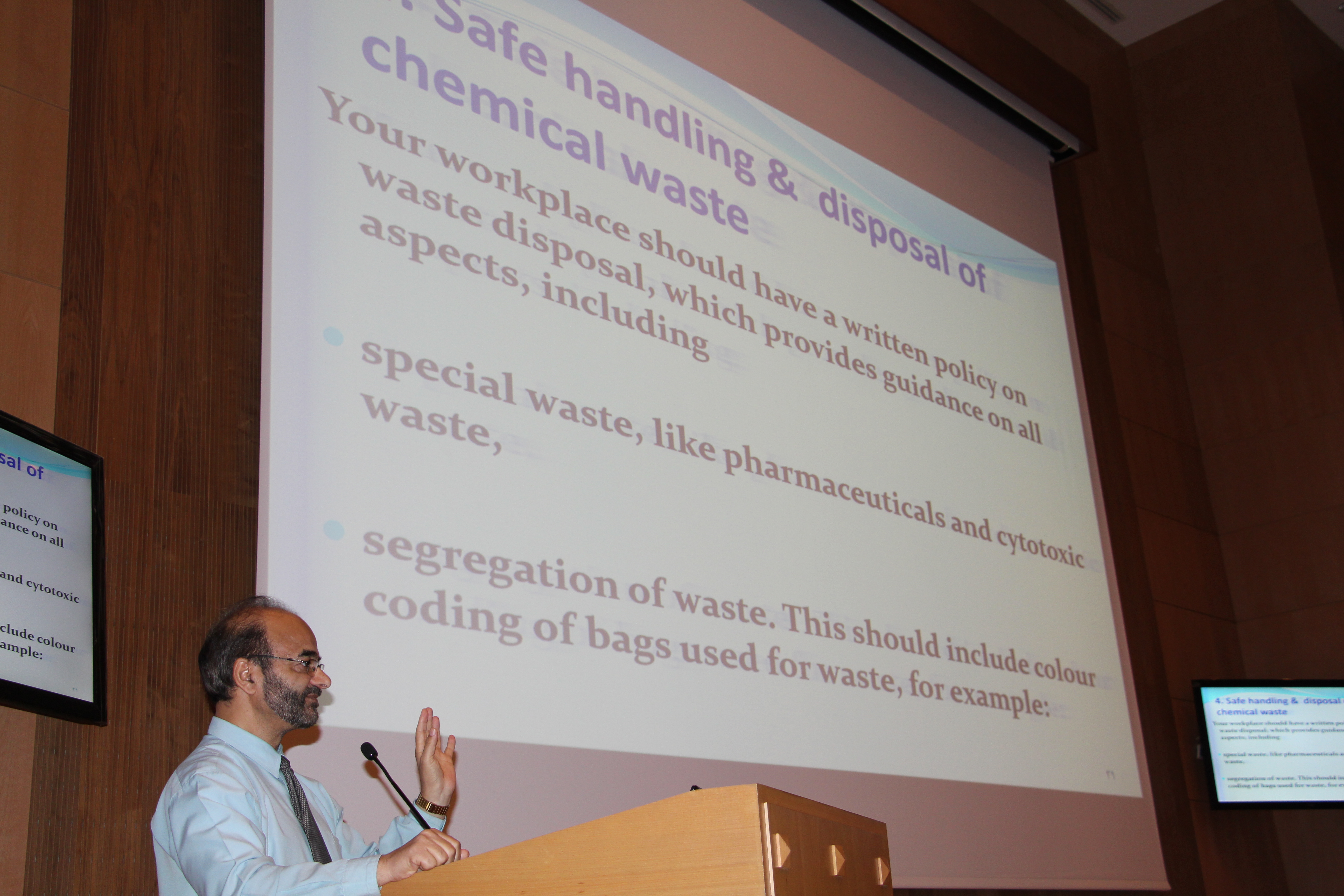 ثم بين المحاضر طرق انتشار العدوى بين العاملين بالمجال الصحي و مدى خطورته. ثم استفاض المحاضر في شرح الوسائل المتبعة للوقاية من حدة انتشار العدوى في المنتجعات الصحية المختلفة.
