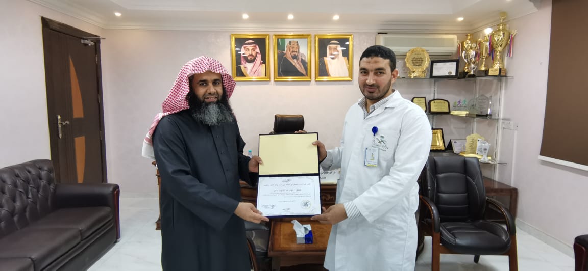 بعد ذلك كرّم عميد الكلية د. إبراهيم الداود د. إيهاب إسماعيل، مقدّمًا شكره وتقديره له، ومشيدًا بجهود التعاون بين مستشفى حوطة بني تميم العام والكلية.