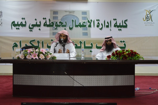 ضمن برامج مشروع (نحو جامعة واعية -١-) نظمت كلية إدارة الأعمال في حوطة بني تميم بالتعاون مع وحدة التوعية الفكرية في الجامعة محاضرة تحت عنوان: (كيف تكون عضوًا صالحًا في المجتمع؟)، قدمها الدكتور نايف بن عمار الدوسري الأستاذ المشارك في كلية العلوم والدراسات الإنسانية بالأفلاج، وذلك في يوم الثلاثاء ١٤٣٨/٣/٧، في مسرح الكلية.
