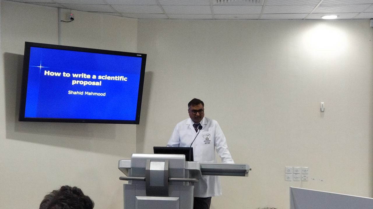 أقامت كلية طب الأسنان ظهر الإثنين الموافق ١٩/١/١٤٣٩ بالقاعة الكبرى بالكلية ممثله في وحدة البحث العلمي و التعليم المستمر و أطباء الامتياز بتنظيم من وحدة الأنشطة الطلابية بالكلية محاضرة علمية بعنوان / آلية كتابة المقترح البحثي " How TO WRITE RESARCH PROPSAL "