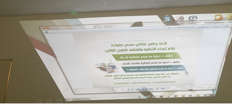 استضافت كلية إدارة الأعمال-قسم الطالبات أخصائية التغذية في مركز التعاون الصحي الدكتورة / رحيق الفاضل. قدمت الدكتورة محاضرة علمية عن التغذية الصحيحة و أهميتها من خلال شرحها عن الهرم الغذائي كما أوضحت ضرورة العناية بصحة الجسم والخضوع للتحاليل بشكل دوري و مستمر. كما أجابت الدكتورة في نهاية اللقاء على العديد من الأسئلة من قبل الطالبات وبعض الموظفات. كان تفاعل الجميع مشجعًا و مؤشرًا على أهمية المحاضرة و التي احتوت على الكثير من المعلومات الصحية الأساسية و المهمة.
