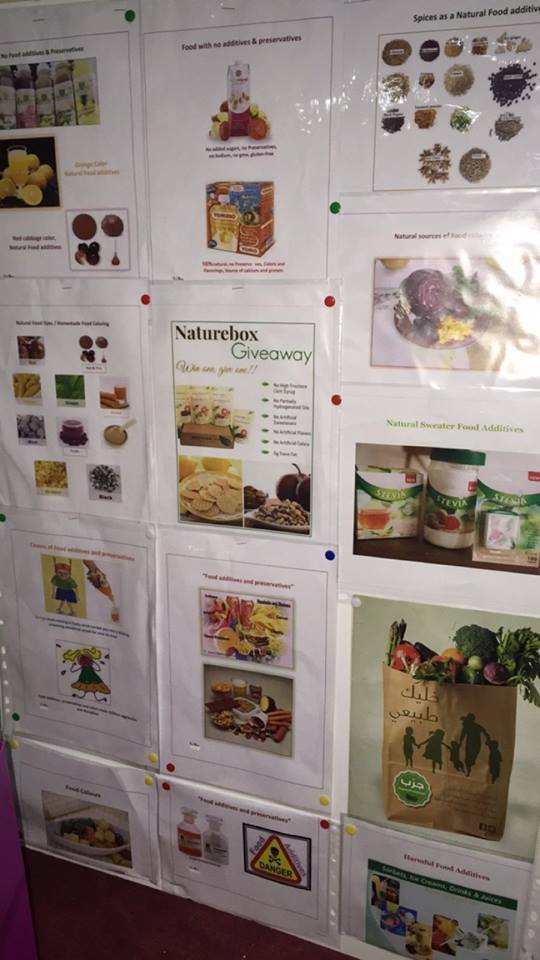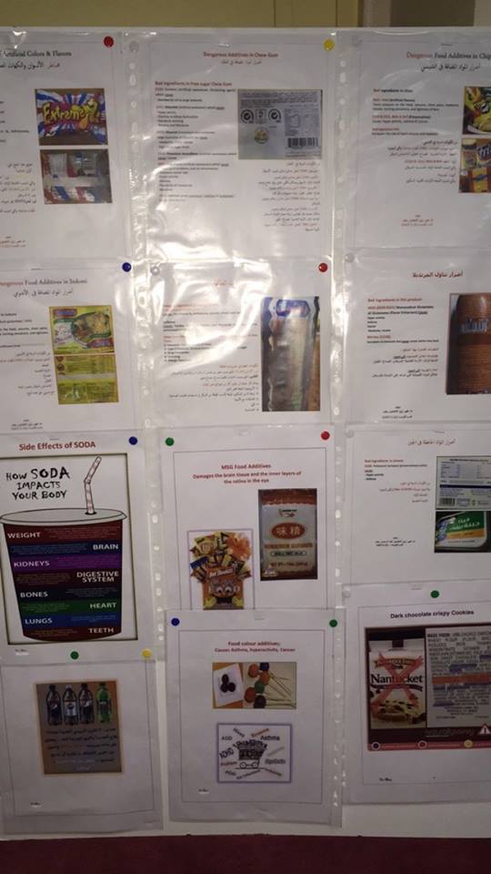 حيث تم من خلالها عرض للبروجيكتر يوضيح المخاطر التي يتعرض لها الانسان من جراء تناوله للمواد الغير عضوية وإمكانية استبدالها بمواد عضوية أكثر فائدة وذكرت بعض المواد السامة في بعض المنتجات الغذائية وطالبت الحضور الاستعاضة عنها بمنتجات أقل خطورة . وتم توزيع منشورات توعوية على الحضور .
