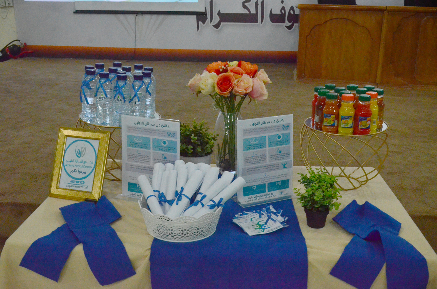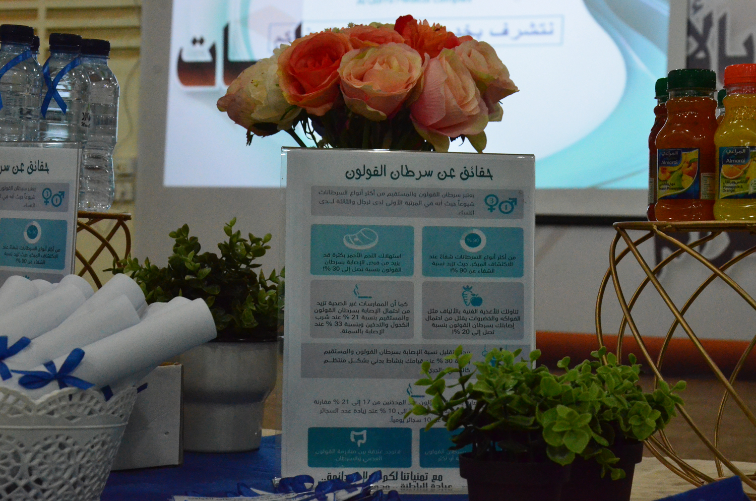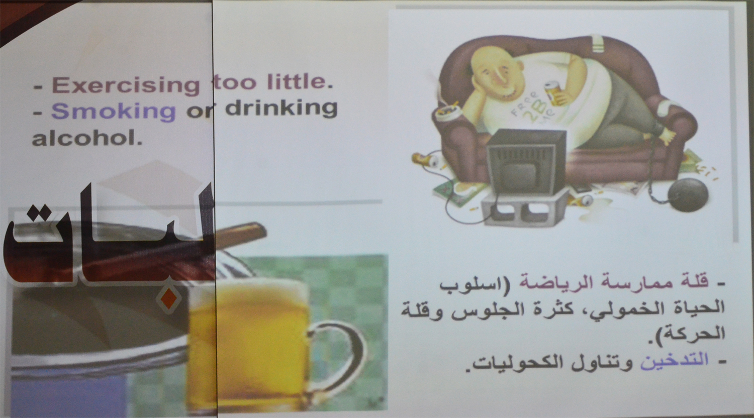 نظمت وحدة العمل الطلابي متمثلة في البرامج الثقافية و الاجتماعية بكلية العلوم والدراسات الإنسانية بالأفلاج ( شطر الطالبات ) يوم الأربعاء 1440/7/20 هـ الساعة العاشرة صباحاً في مسرح الكلية بالشراكة المجتمعية مع مجمع القارة الطبي محاضرة توعوية عن ( سرطان القولون ) قدمتها الدكتورة هناء عبدالله , افتتحتها بالتعريف بالمرض ومسبباته و من هم الأكثر عرضة للإصابة به , بعدها ذكرت العوامل التي تؤدي إلى تكوّن هذا المرض و العلامات التحذيرية للإصابة به , تلاها الخطوات التي يتم إتباعها للكشف المبكر عنه , ثم ذكرت طريقة علاجه و طرق الوقاية منه , حيث تهدف المحاضرة إلى رفع الوعي الثقافي بهذا المرض للوقاية منه - بإذن الله - .