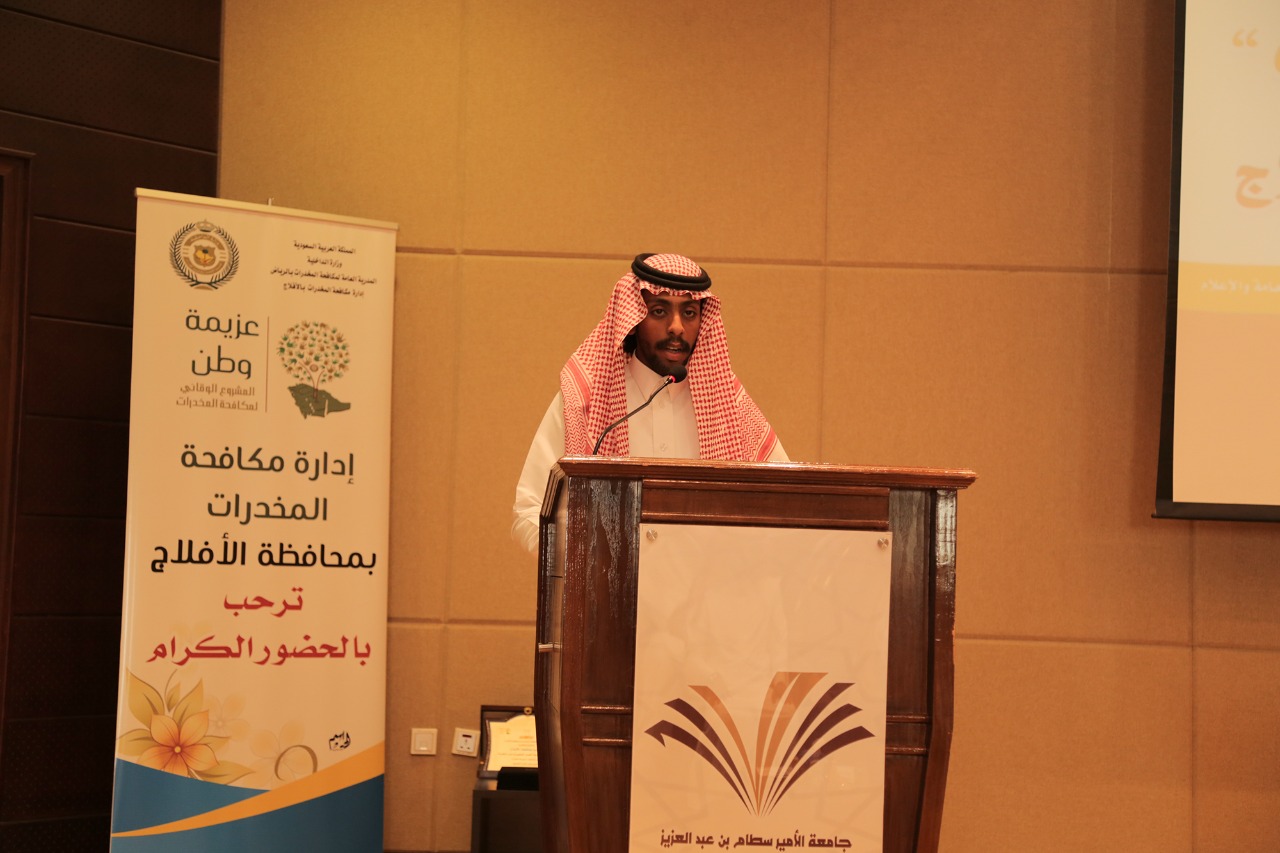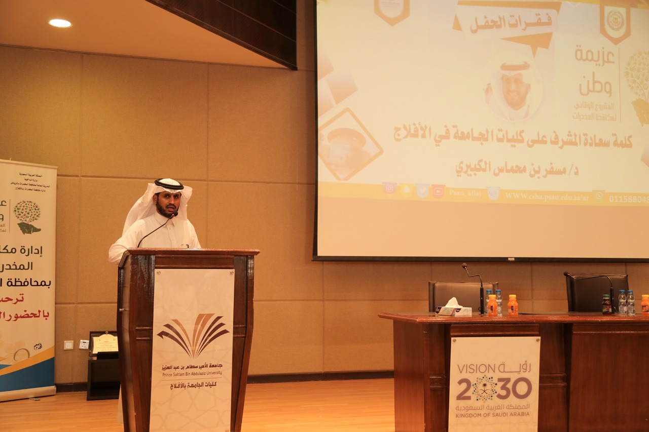 كما رحب مشرف كليات الأفلاج في كلمته بالحضور وأن جامعة الأمير سطام بن عبدالعزيز بشكل عام وكليات الأفلاج بشكل خاص سباقة لخدمة المجتمع، وأن الجامعة سخْرت جميع امكانياتها لخدمة المجتمع.