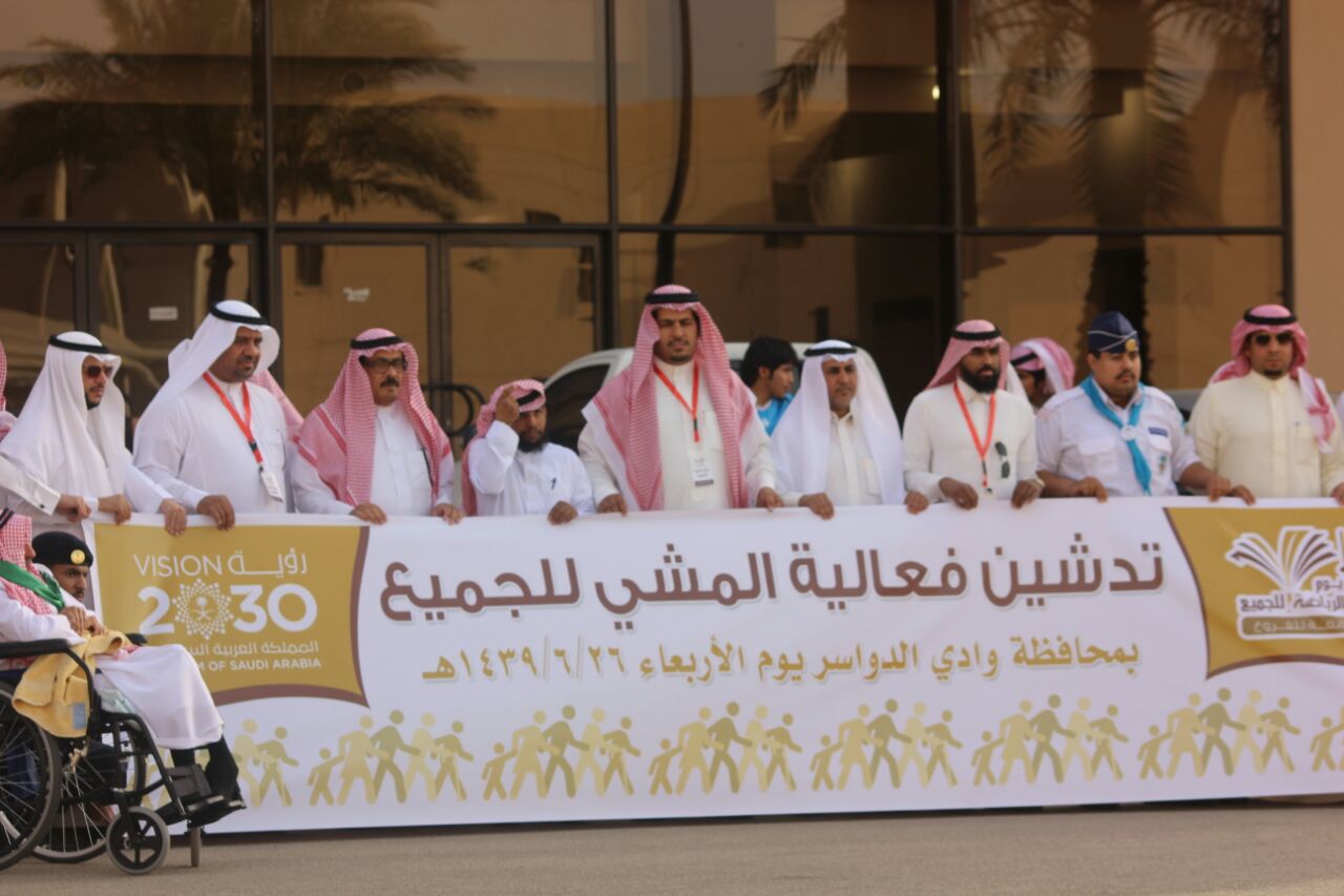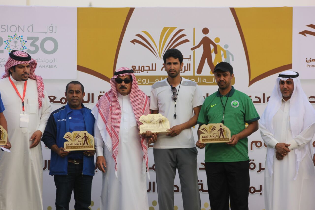 وانطلقت فعاليات يوم الرياضة للجميع بالعديد من الأنشطة الرياضية أبرزها " المشي" بمشاركة محافظ وادي الدواسر والعديد من مسؤولين المحافظة وأعضاء هيئة التدريس والموظفين وطلاب .