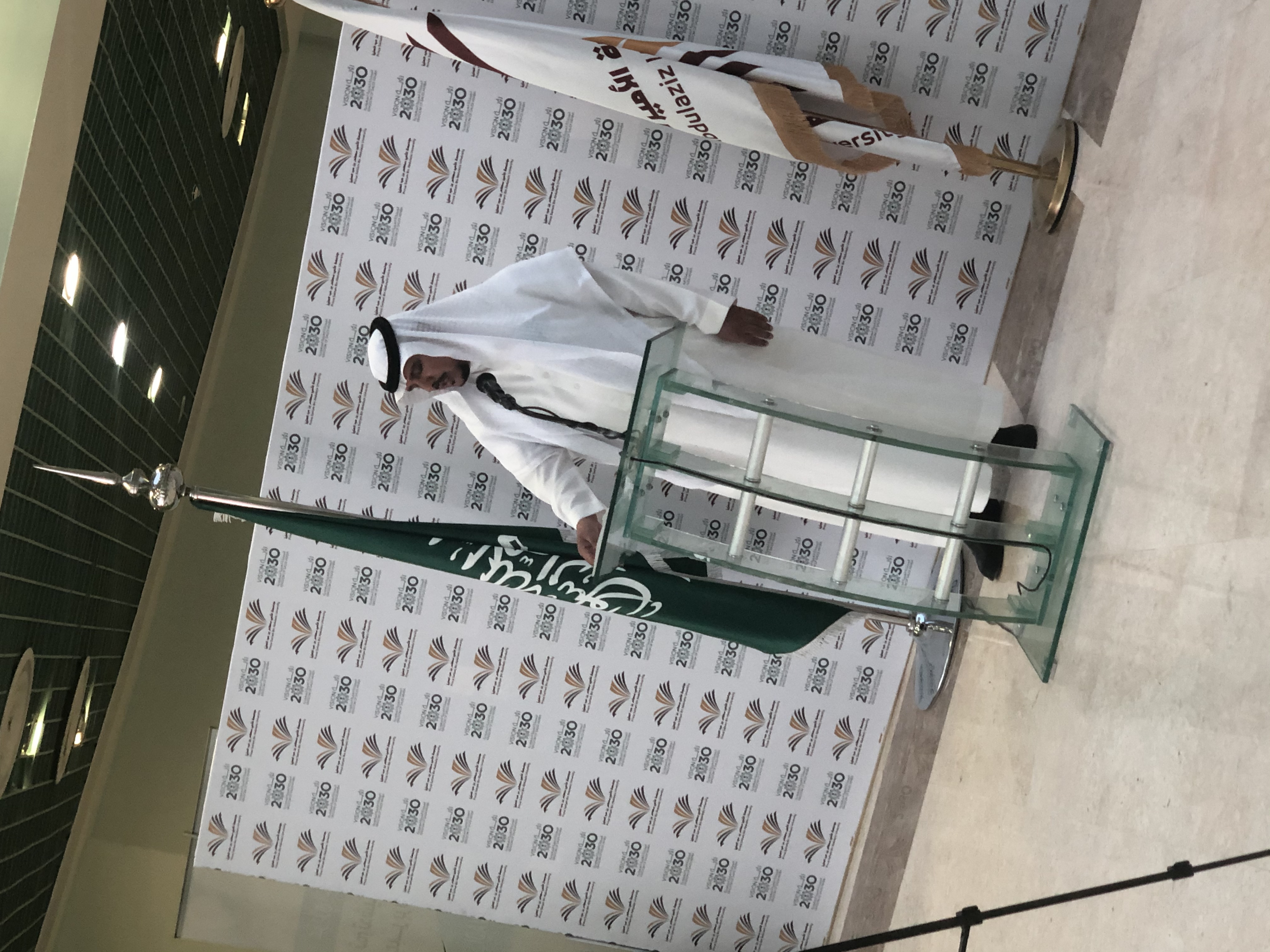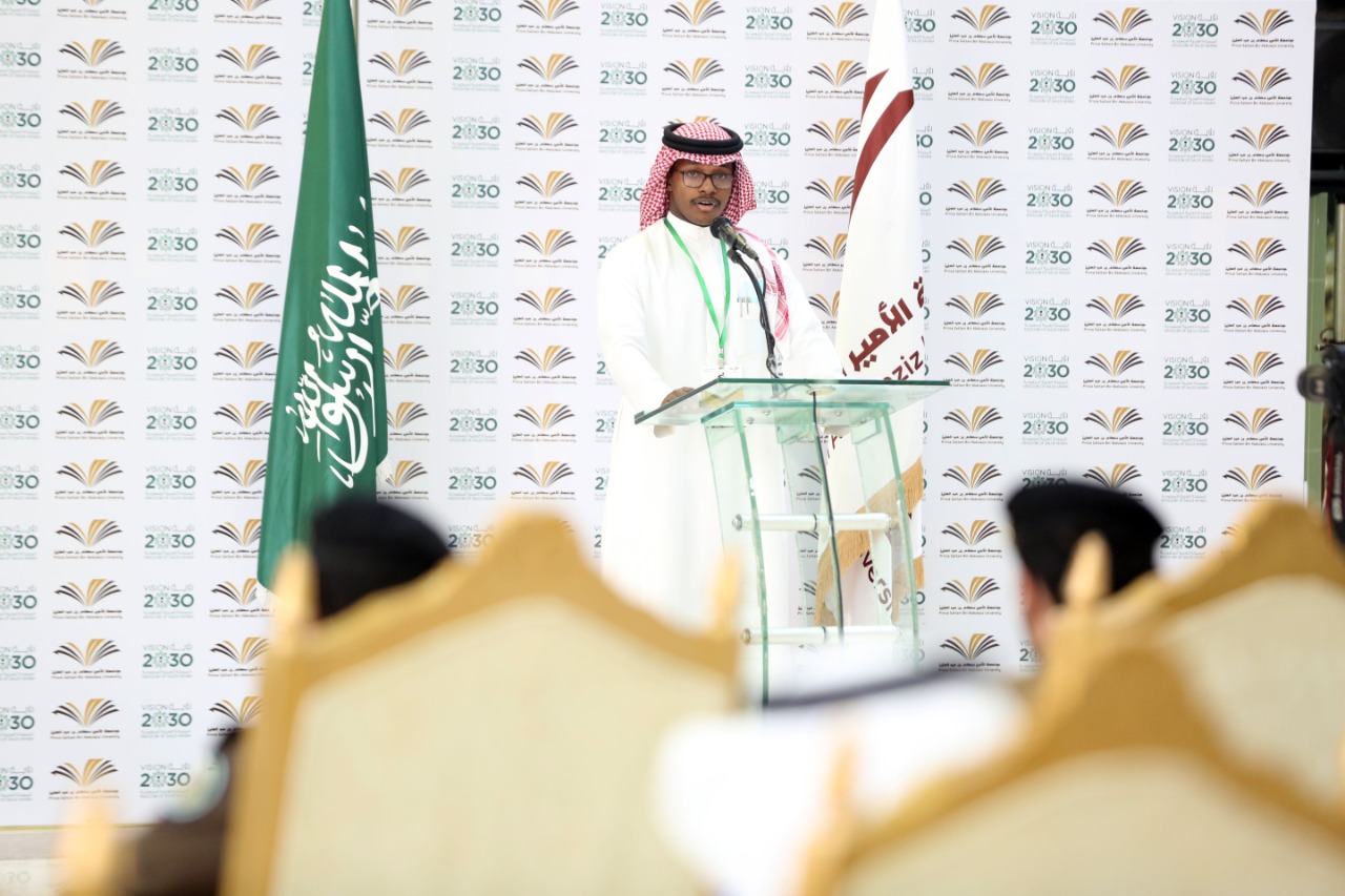 وبدأ الحفل المُعد بهذه المناسبة بالسلام الملكي ثم تلاوة آيات من القرآن الكريم ، ثم كلمة عميد كلية الآداب والعلوم الدكتور عمر بن نوح المطيري قال فيها إن مثل هذه الفعاليات تزرع في نفوس الجيل حب الوطن وتنمية المواطنة الحقة التي تتمثل في المحافظة على مقدرات الوطن وحمايتها من كل عابث أو مفسد .